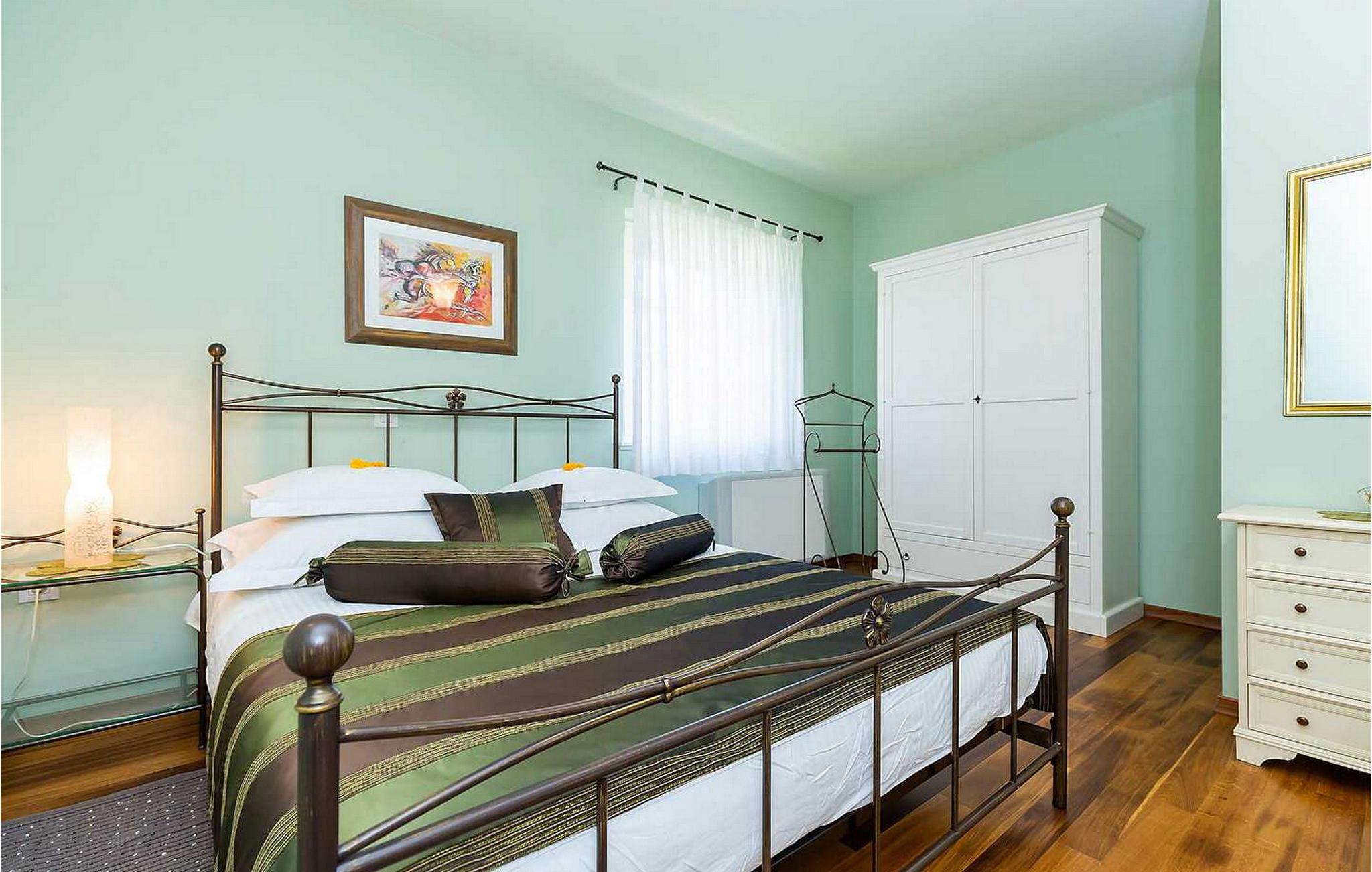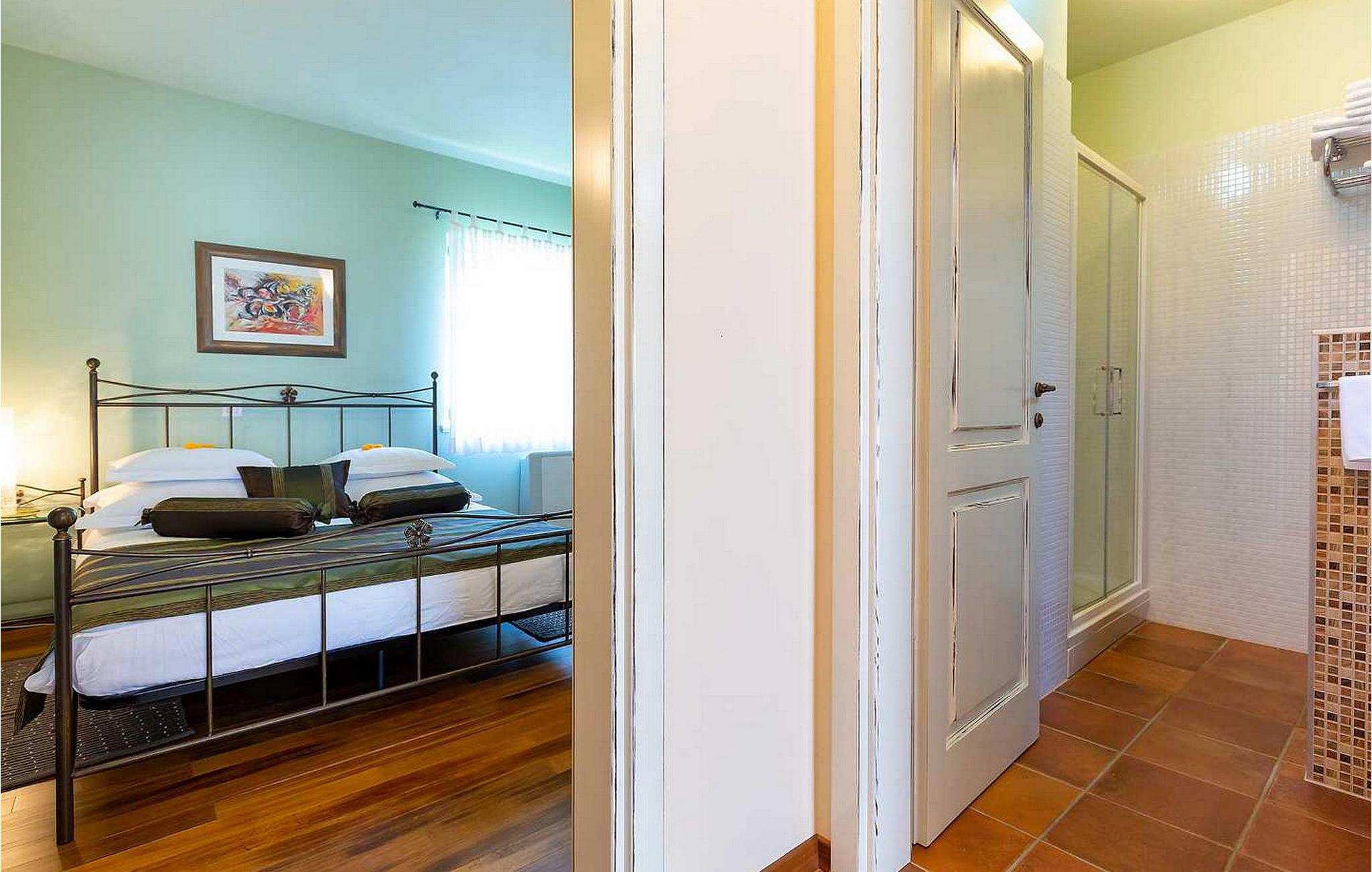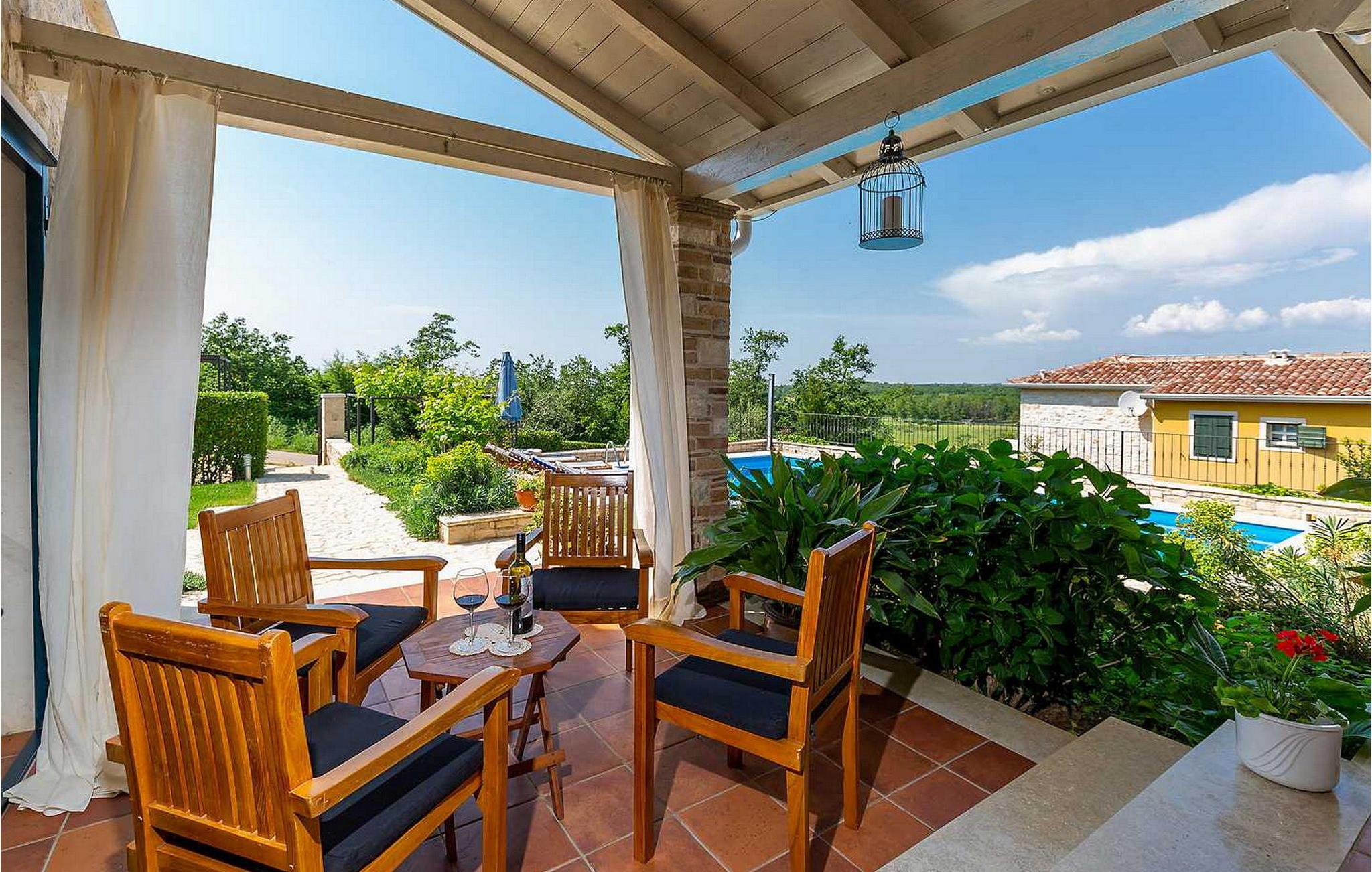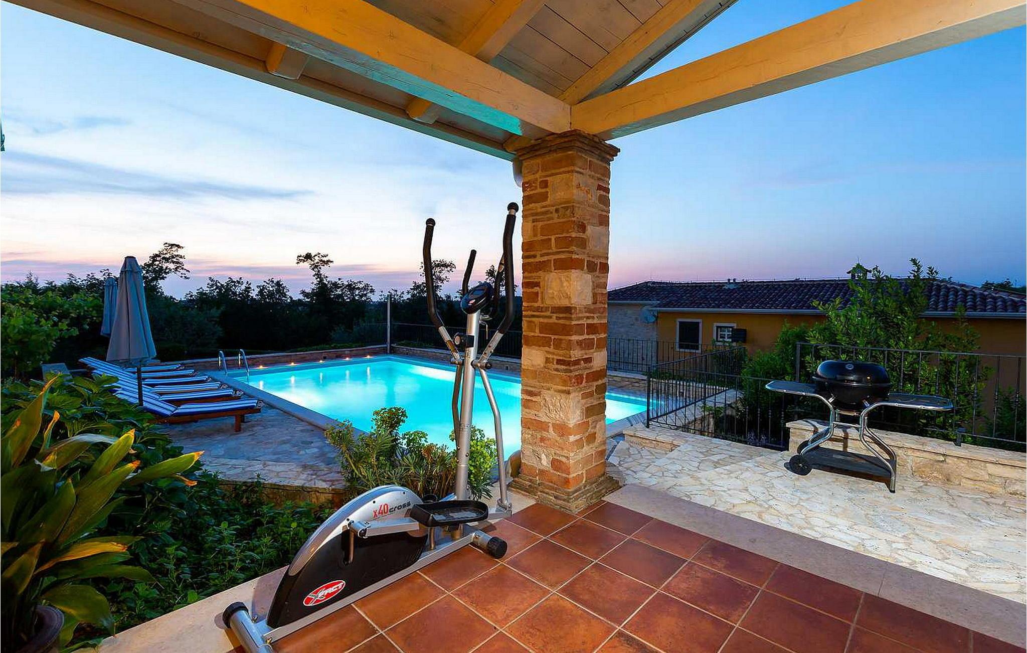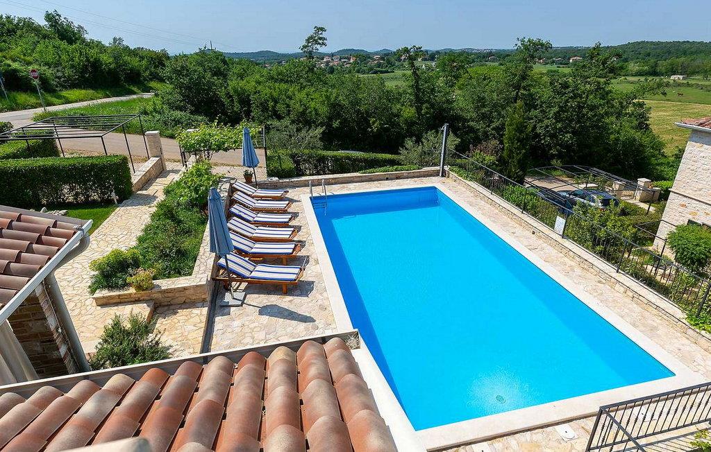 Villa Salvea er en nybygget luksuriøs rustik villa beliggende i udkanten af landsbyen Montizana med en dejlig panoramaudsigt over markerne og havet. Landsbyen ligger 10 km fra Porec og dens strande. Huset blev bygget i år 2014, det er fuldt airconditioneret og indrettet med attraktive rustikke møbler. På den lukkede grund på 1.000 kvm er der en udendørs swimmingpool på 50 kvm, et spabad, overdækket terrasse med spisefaciliteter og grill, velholdt græsplæne og to parkeringspladser. Villaen har et boligareal på 197 kvm. I stueetagen er der en dejlig stue med pejs med to masser af terrassedøre, der fører til terrassen, et fuldt udstyret køkken med spisebord og udgang til terrassen og haven, et soveværelse for to med dobbeltseng og en-suite bruser /toilet. På 1. sal er der tre soveværelser til to, to af dem med dobbeltseng og terrasse, og et med to enkeltsenge. Bemærk venligst, at denne ejendom ikke accepterer ungdomsgrupper eller polterabends. En ungdomsgruppe på denne ejendom er en gruppe bestående af personer på 26 år eller derunder. Book ikke denne ejendom, hvis du er en ungdomsgruppe eller et polterabend, da din reservation vil blive afvist efter booking, hvilket kan omfatte ved ankomst til ejendommen eller under dit ophold, og du vil ikke blive refunderet.