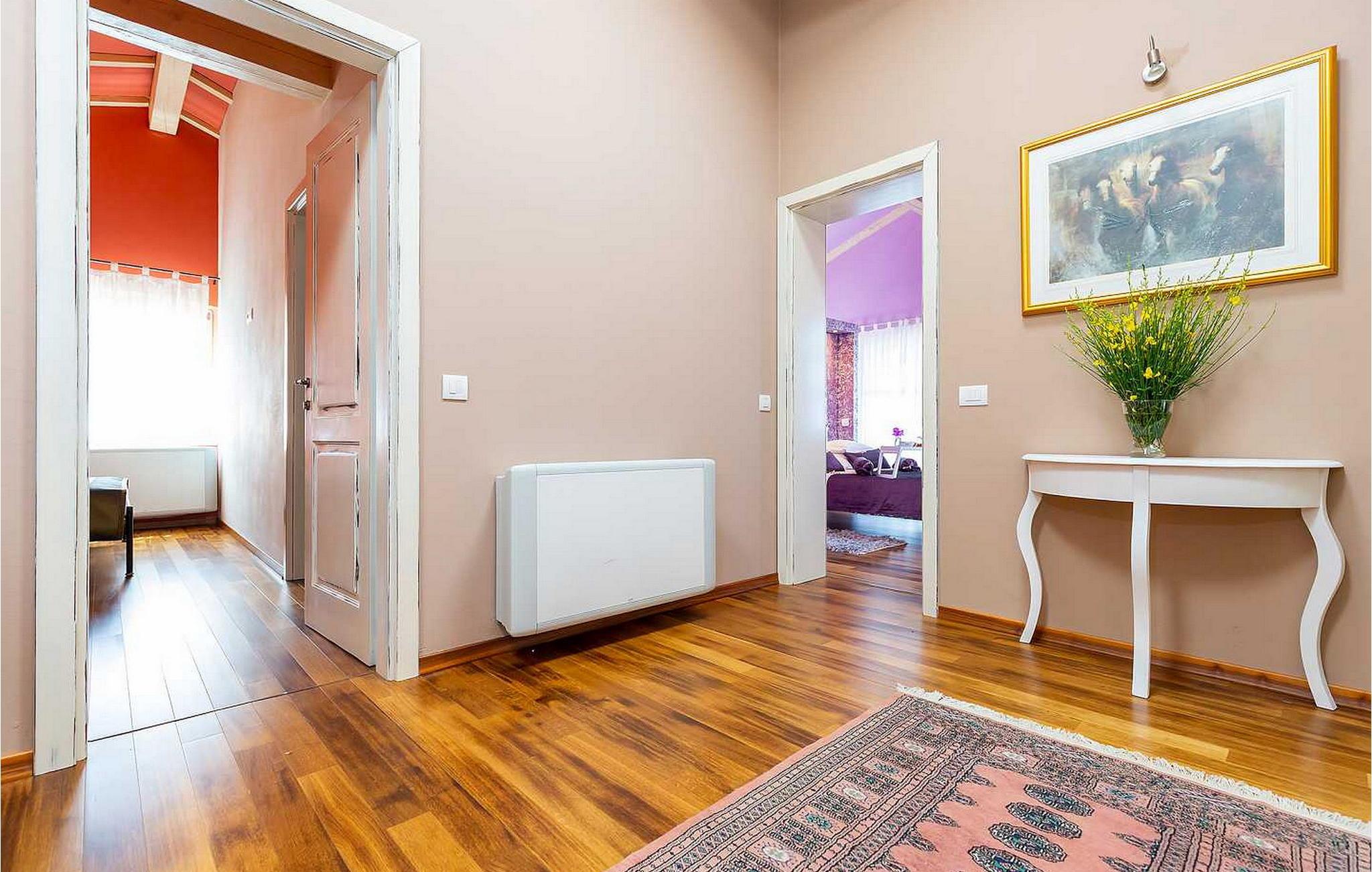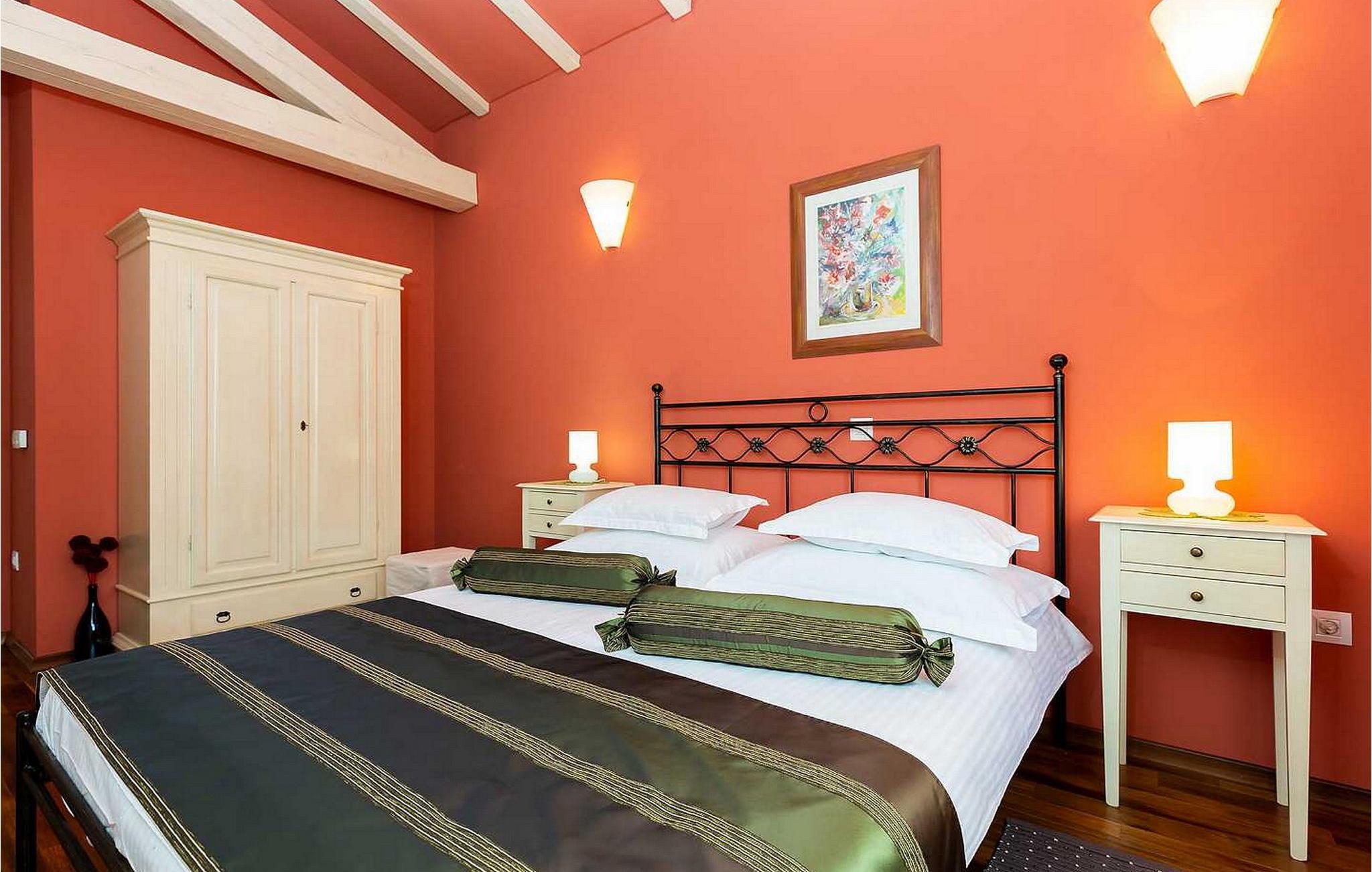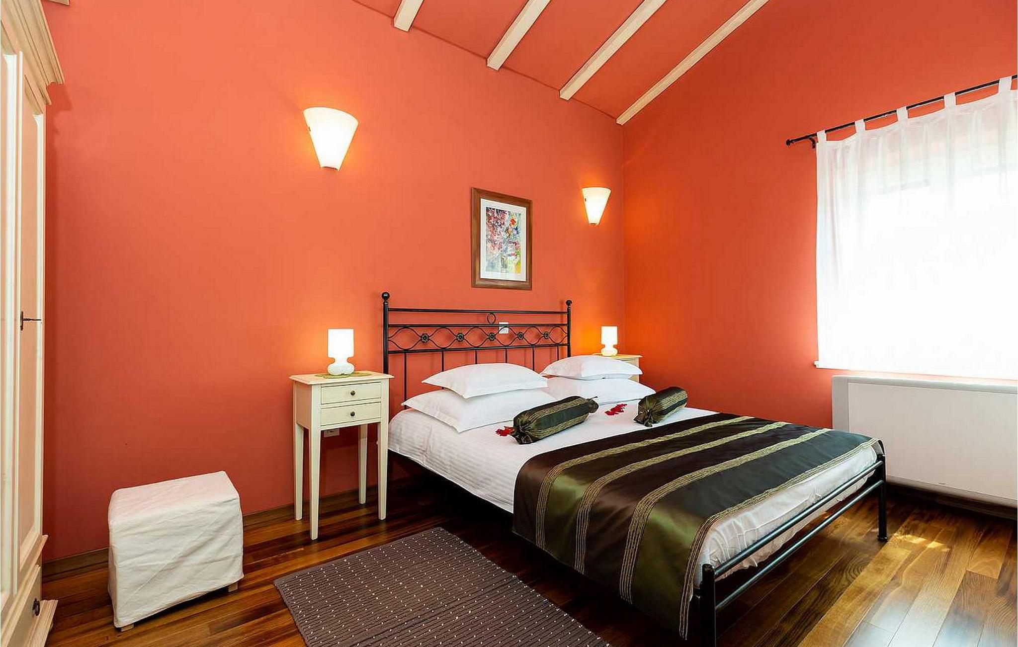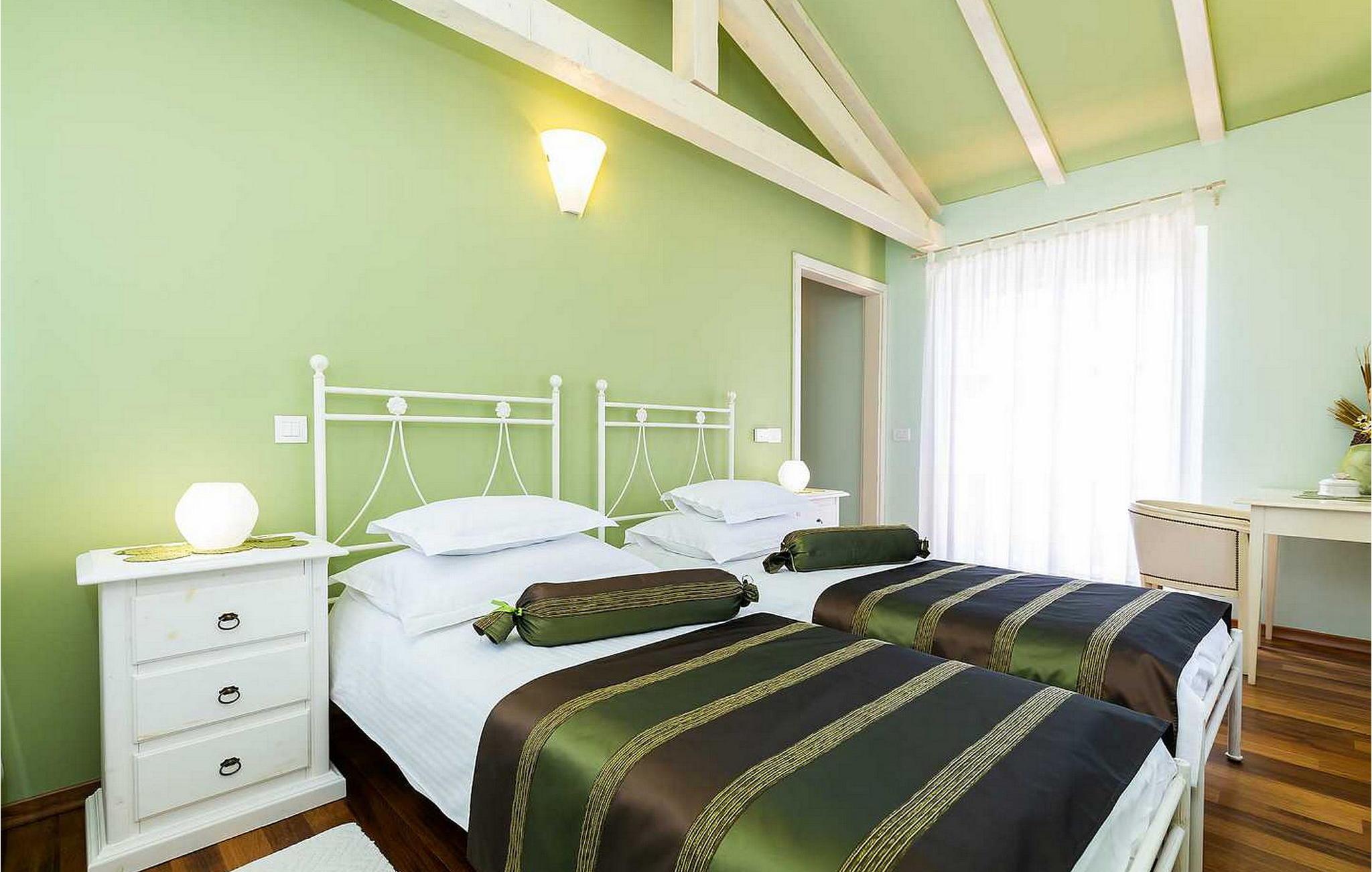 Villa Salvea er en nybygget luksuriøs rustik villa beliggende i udkanten af landsbyen Montizana med en dejlig panoramaudsigt over markerne og havet. Landsbyen ligger 10 km fra Porec og dens strande. Huset blev bygget i år 2014, det er fuldt airconditioneret og indrettet med attraktive rustikke møbler. På den lukkede grund på 1.000 kvm er der en udendørs swimmingpool på 50 kvm, et spabad, overdækket terrasse med spisefaciliteter og grill, velholdt græsplæne og to parkeringspladser. Villaen har et boligareal på 197 kvm. I stueetagen er der en dejlig stue med pejs med to masser af terrassedøre, der fører til terrassen, et fuldt udstyret køkken med spisebord og udgang til terrassen og haven, et soveværelse for to med dobbeltseng og en-suite bruser /toilet. På 1. sal er der tre soveværelser til to, to af dem med dobbeltseng og terrasse, og et med to enkeltsenge. Bemærk venligst, at denne ejendom ikke accepterer ungdomsgrupper eller polterabends. En ungdomsgruppe på denne ejendom er en gruppe bestående af personer på 26 år eller derunder. Book ikke denne ejendom, hvis du er en ungdomsgruppe eller et polterabend, da din reservation vil blive afvist efter booking, hvilket kan omfatte ved ankomst til ejendommen eller under dit ophold, og du vil ikke blive refunderet.