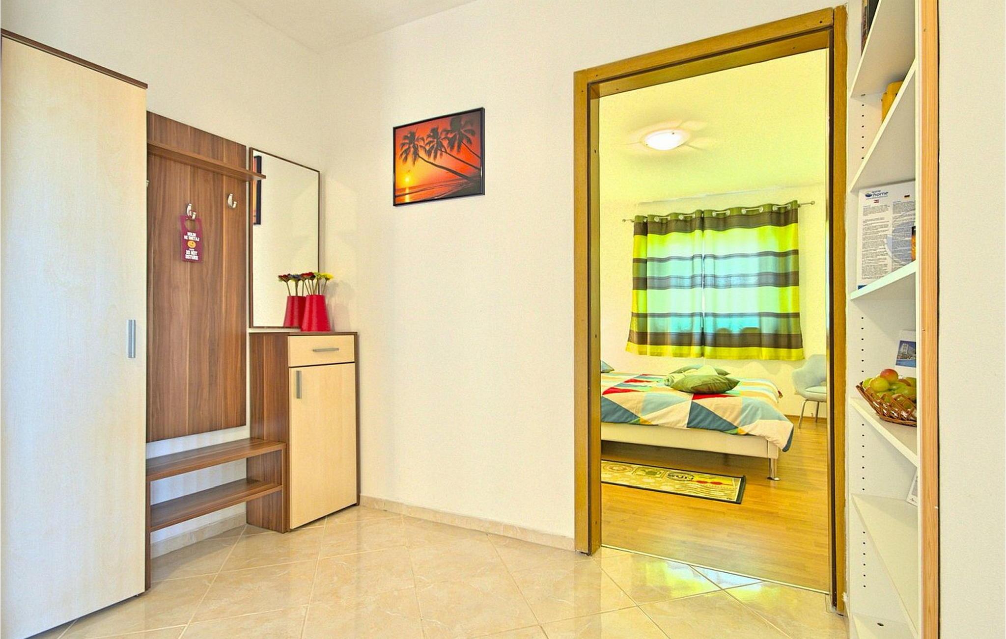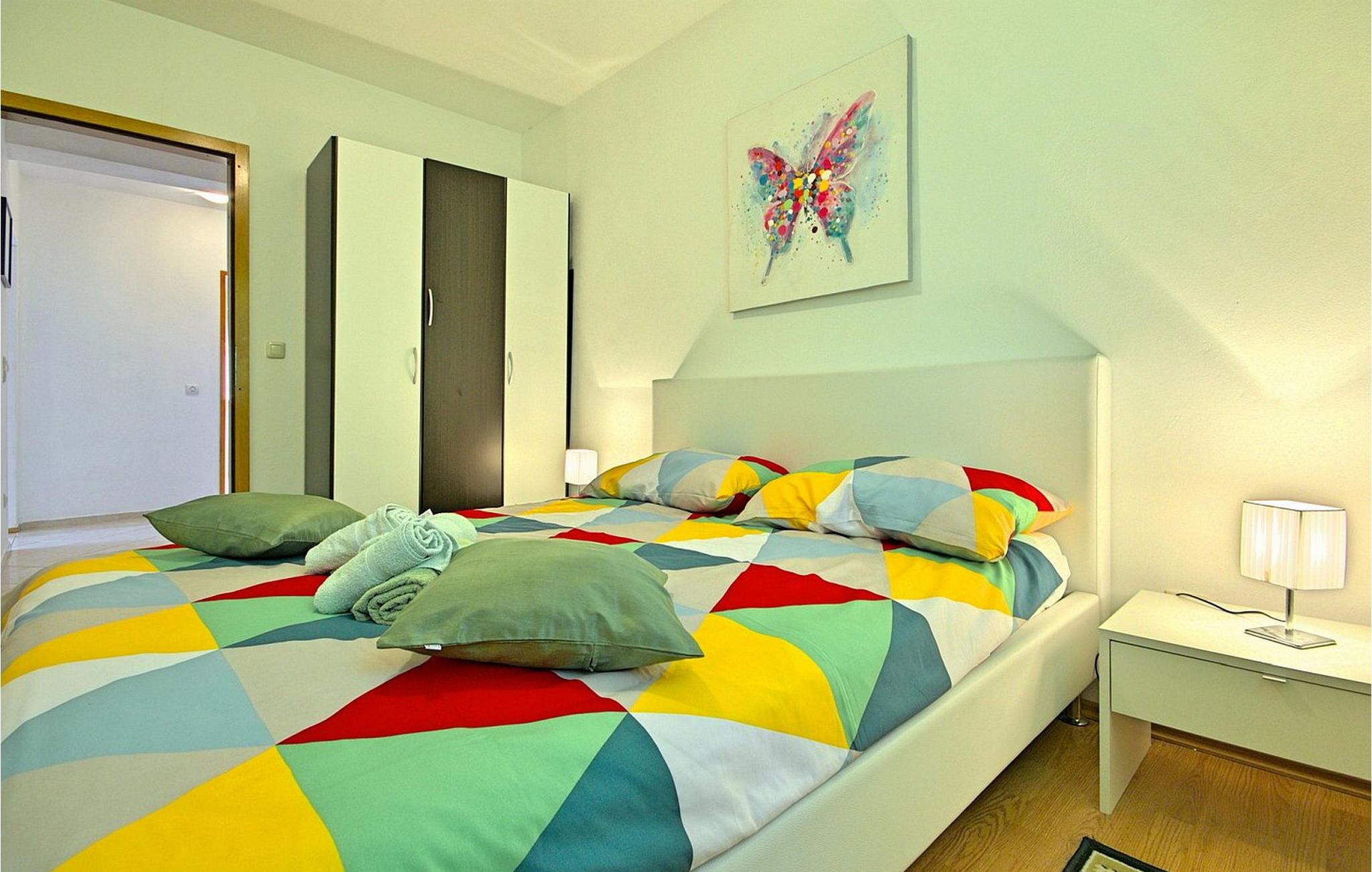 Nyd en vidunderlig ferie i Istrien i lejlighed Lukas, bekvemt beliggende kun 4 km fra centrum af Porec, dets strande og den charmerende gamle bydel. Gæsterne har adgang til en rummelig overdækket terrasse med bord og stole, hvor de kan få mest muligt ud af udendørslivet. Der er også en grill, hvor du kan tilberede dine yndlingsmåltider, mens du er på ferie udendørs. Lejligheden består af en stor stue med en komfortabel sofa (en sovesofa til to personer) og udgang til terrassen. Stuen fører til et soveværelse med dobbeltseng, som også har udgang til terrassen, og et separat køkken. Lejligheden er beliggende i et enfamiliehus i boligområdet Vrvari. Porec er meget tæt på. Der kan du besøge den berømte Euphrasiam-basilika eller tage en afslappet gåtur langs havnepromenaden eller gennem den gamle bydel. En livlig atmosfære venter dig i de smalle stengader med hyggelige restauranter og små souvenirbutikker. Bemærk venligst, at denne ejendom accepterer ungdomsgrupper efter anmodning. Kontakt os venligst for at tjekke. En ungdomsgruppe på denne ejendom består af personer på 26 år eller derunder. Hvis du er en ungdomsgruppe [eller planlægger en polterabend], kan du blive bedt om at betale et ekstra depositum ved ankomst. Ethvert beløb, der kræves for at reparere eventuelle skader på ejendommen forårsaget af dig, vil blive trukket fra depositum.