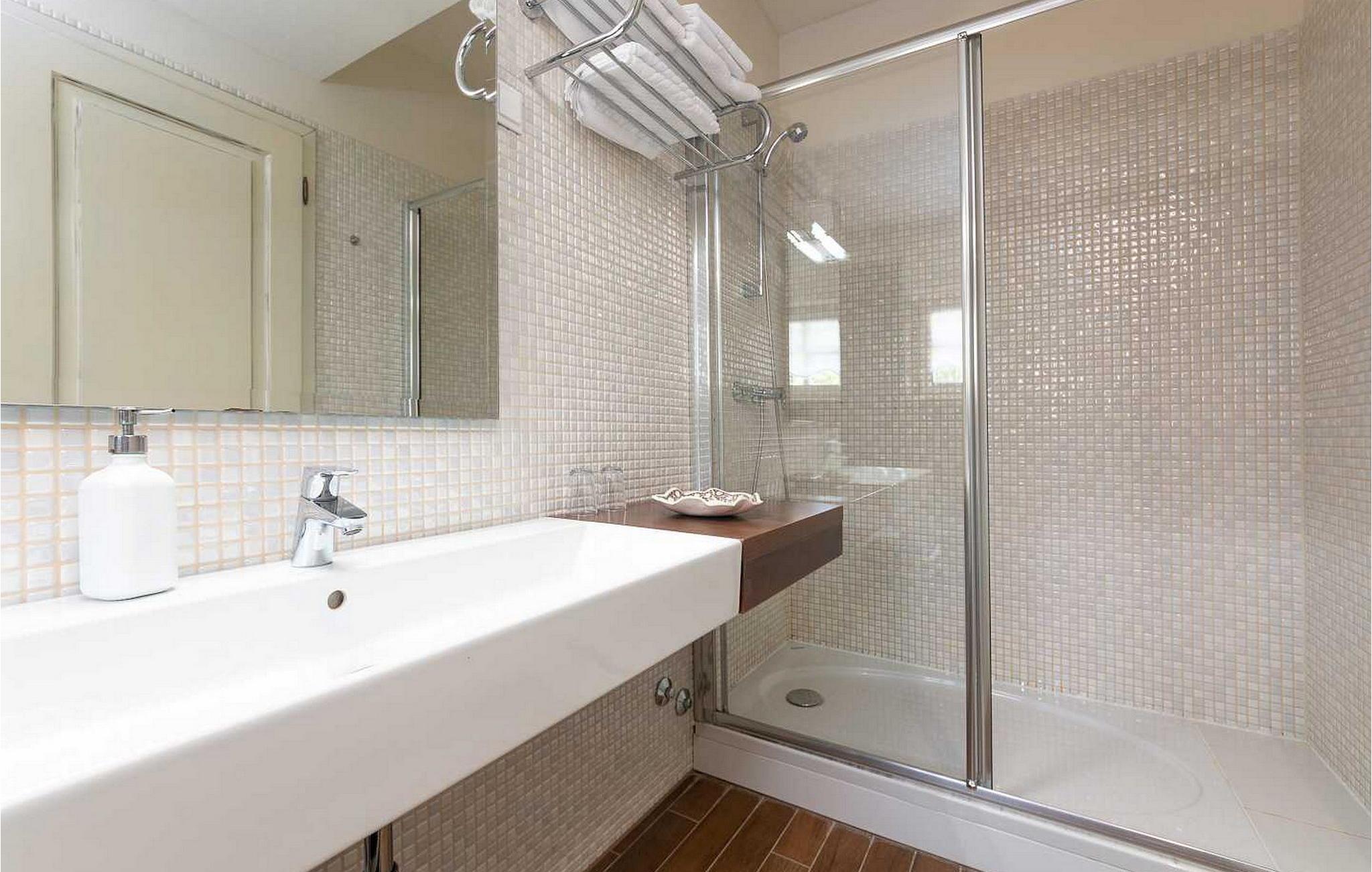 Villa til 8-10 personer med et areal på cirka 210 kvadratmeter fordelt på to etager fuldt airconditioneret består af stueetagen, hvor vi har en rummelig stue med opholdsområde, pejs og adgang til en overdækket terrasse og pool, en spisestue med et bord til 10 personer og store vinduer med udsigt over skoven, fuldt udstyret køkken også med adgang til terrassen, et airconditioneret soveværelse med dobbeltseng med dobbeltseng, bad/toilet og separat toilet. På første sal er der tre dobbeltværelser med aircondition, et med dobbeltseng, en stor terrasse og et badeværelse/toilet med spabad, et med en dobbeltseng og et badeværelse/toilet og et med to enkeltsenge og bruser/ toilet. På første sal er der endnu et dobbeltværelse med en køjeseng uden garderobe og en ekstra terrasse med opholdsområde.