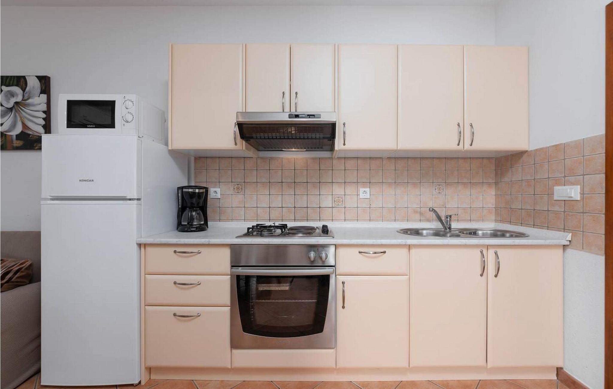 Oplev charmen ved Saladinka Apartments, beliggende i en stille landsby nær Porec. Disse hyggelige retreater er perfekt beliggende kun 150 meter fra det glitrende hav, hvilket gør dem til et ideelt valg for en uforglemmelig familieferie i Istrien. Huset består af tre forskellige lejligheder i en rummelig 1000 m² stor have. Nyd den indbydende swimmingpool omgivet af en solbeskinnet terrasse med komfortable liggestole og parasoller. Den smukt anlagte have byder på et fredeligt tilflugtssted, mens sommerkøkkenet med overdækket terrasse og stort spisebord er perfekt til udendørs spisning under stjernerne. Fire overdækkede parkeringspladser er også tilgængelige. Lejlighed Saladinka 1 ligger i stueetagen og har plads til 2-4 gæster. Det har en komfortabel stue med aircondition og satellit-tv, en sovesofa til to børn og et veludstyret køkken med spiseplads. Træd ud på terrassen og nyd den vidunderlige udendørs atmosfære. Nyd den perfekte blanding af komfort og bekvemmelighed i dette charmerende ferieparadis. Porec ligger kun en kort køretur derfra. Der kan du beundre Euphrasia-basilikaen, et imponerende mesterværk fra det 6. århundrede. Porecs rige kulturarv omfatter massive bymure, charmerende stengader med hyggelige restauranter og souvenirbutikker og en malerisk havnepromenade perfekt til slentreture. Bemærk venligst, at denne ejendom ikke accepterer ungdomsgrupper eller polterabender. En ungdomsgruppe på denne ejendom består af personer på 26 år eller derunder.