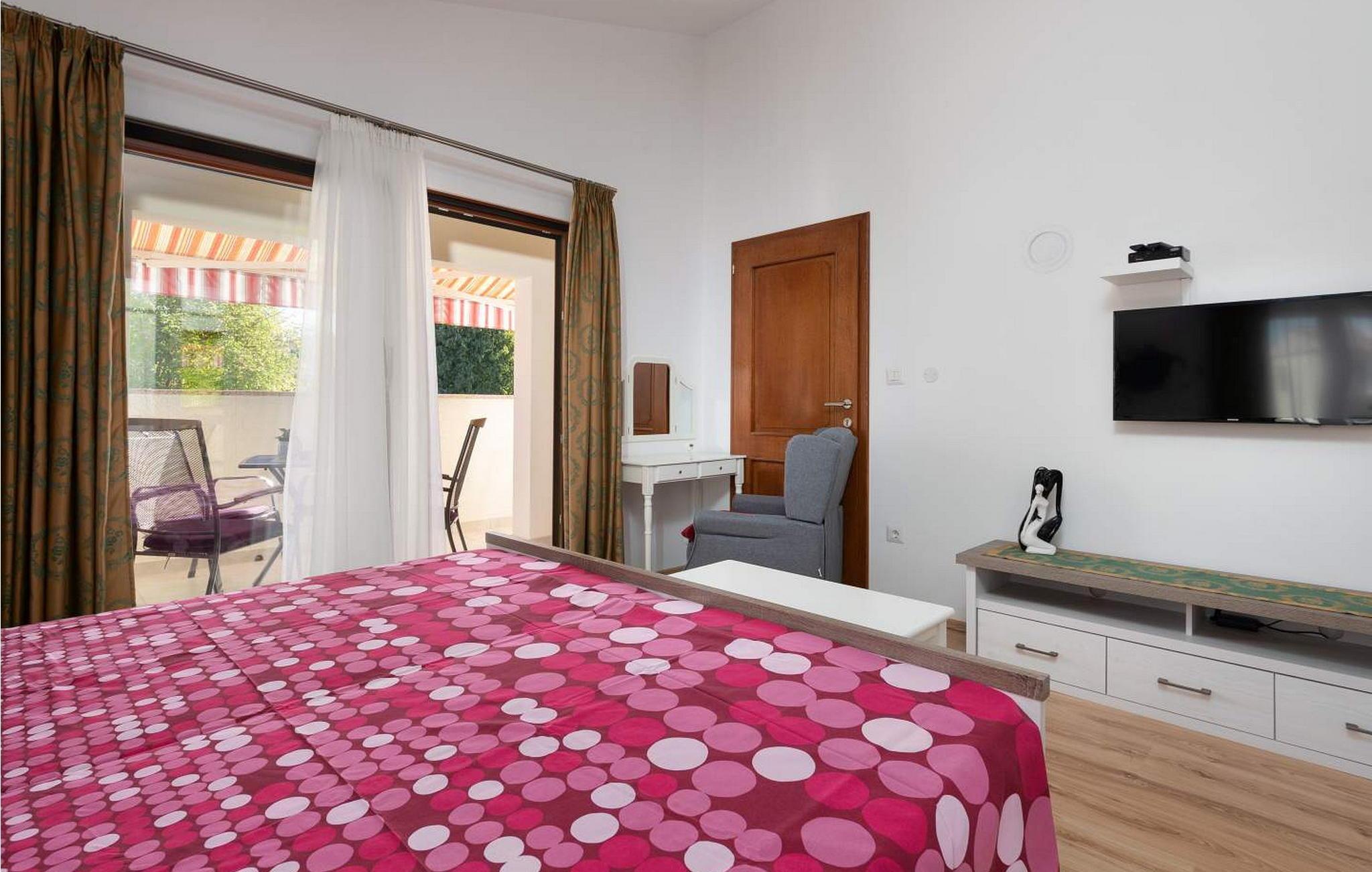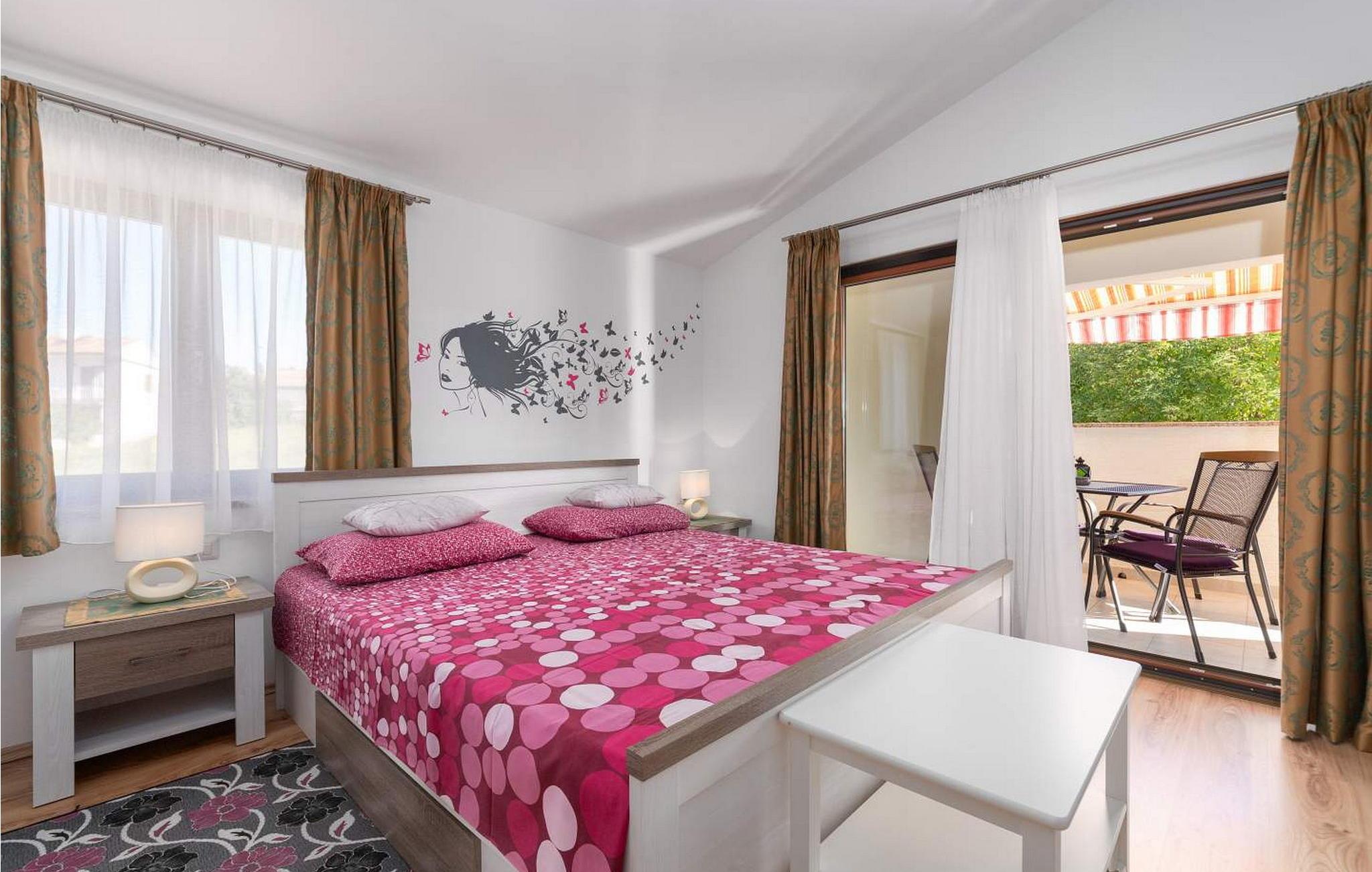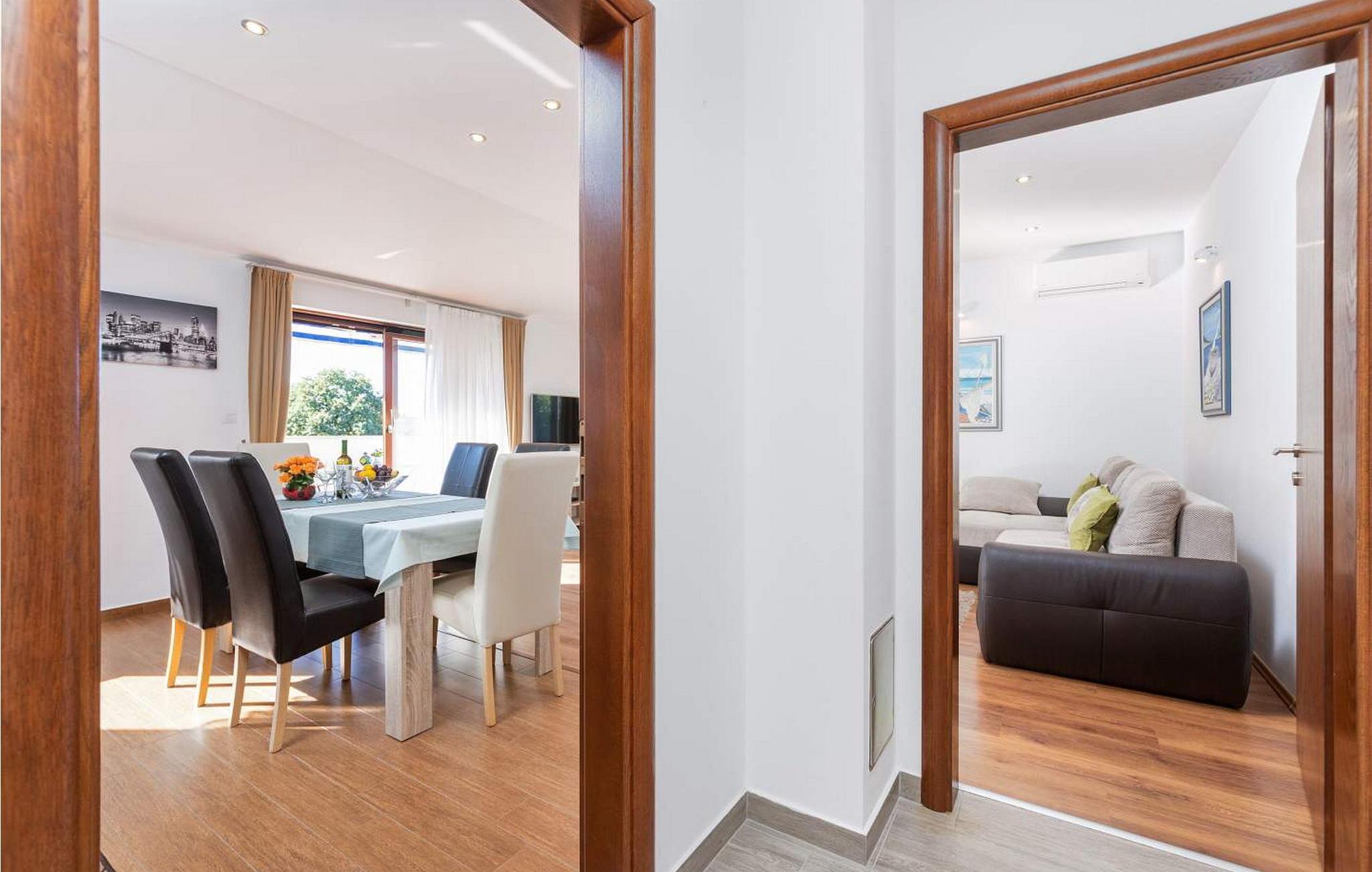 Apartment Jedro er en smuk og moderne lejlighed beliggende på første sal i et familiehus i Nova Vas, nær Porec. I nærheden er der også butik, posthus, kaffebar og pizzeria. På lukket grund på 400 kvm til gæsternes rådighed er der desuden terrasse med grill og to overdækkede parkeringspladser. Ejeren af ejendommen bor i husets stueetage. Denne rummelige lejlighed på 110 kvm består af: stue, spiseplads og køkken med udgang til altan, to soveværelser med dobbeltsenge, hvoraf det ene med egen altan, to bad/toiletter. Bemærk venligst, at denne ejendom ikke accepterer ungdomsgrupper eller polterabends. En ungdomsgruppe på denne ejendom er en gruppe bestående af personer på 26 år eller derunder. Book ikke denne ejendom, hvis du er en ungdomsgruppe eller et polterabend, da din reservation vil blive afvist efter booking, hvilket kan omfatte ved ankomst til ejendommen eller under dit ophold, og du vil ikke blive refunderet.
