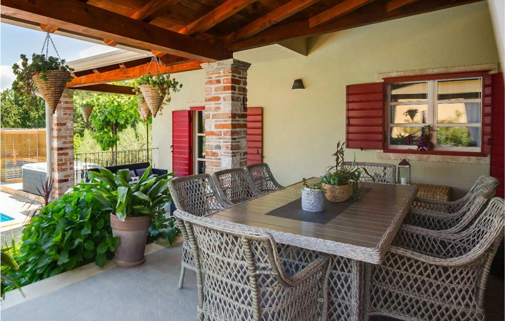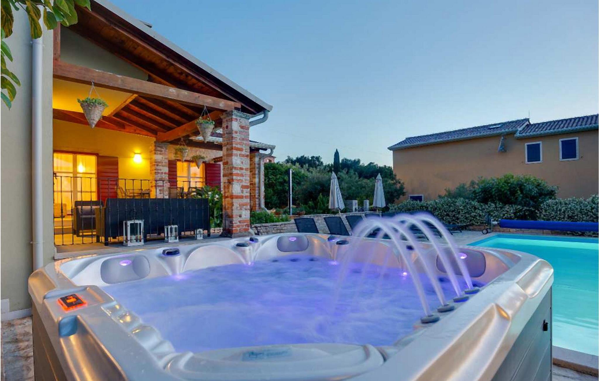Villa Stupenda, moderne villa med swimmingpool, sauna og spabad i Porec-området. Landsbyen ligger 10 km fra Porec og dens strande. Huset blev bygget i år 2016, det er fuldt airconditioneret og indrettet med attraktive rustikke møbler. På den lukkede grund på 1.200 kvm råder villaens gæster over en udendørs swimmingpool på 50 kvm, overdækket terrasse med siddesæt og grill, velholdt græsplæne, bord til bordtennis og to parkeringspladser. Villa med pool i Montižana til 8 personer med et boligareal på 220 kvm fordelt på to etager med aircondition. Den består af stueetagen, hvor der er en dejlig stue med pejs og spiseplads, tv og to udgange til terrassen, fuldt udstyret køkken og udgang til terrassen og haven, et soveværelse for to med dobbeltseng, terrasse og en-suite bad/toilet, et gæstetoilet. På 1. sal er der tre soveværelser til to med eget bad/toilet, et af dem med dobbeltseng og terrasse, et med dobbeltseng og et med to enkeltsenge og balkon. Bemærk venligst, at denne ejendom ikke accepterer ungdomsgrupper eller polterabends. En ungdomsgruppe på denne ejendom er en gruppe bestående af personer på 26 år eller derunder. Book ikke denne ejendom, hvis du er en ungdomsgruppe eller et polterabend, da din reservation vil blive afvist efter booking, hvilket kan omfatte ved ankomst til ejendommen eller under dit ophold, og du vil ikke blive refunderet.