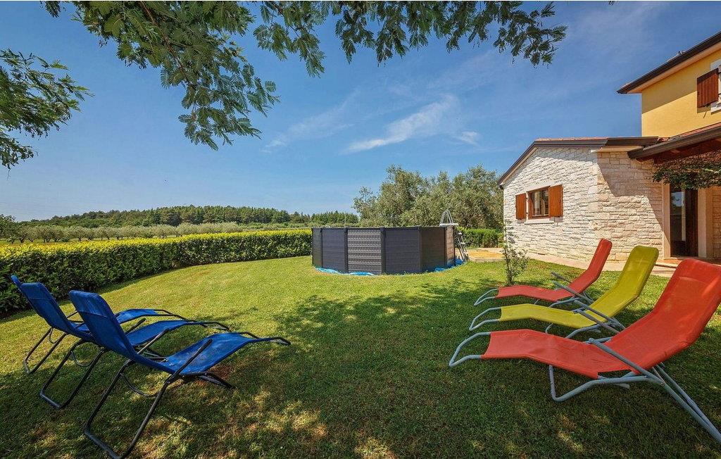House Dolly er beliggende i landsbyen Mugeba, et roligt sted beliggende kun 2,5 km fra turiststedet Zelena Laguna og 5 km fra Porec. Huset er opført i 2012 og er beliggende på egen lukket have på 740 kvm. Gæsterne i huset Dolly har brug af en præfabrikeret pool, en privat parkeringsplads til 2 biler, overdækket terrasse med havemøbler og en grill.