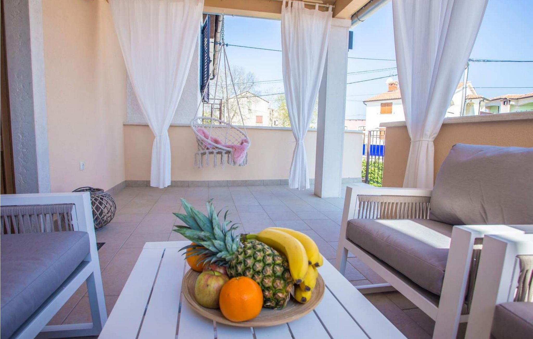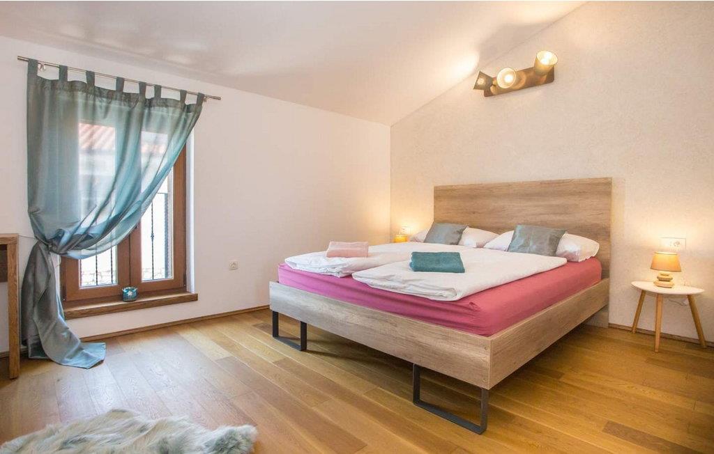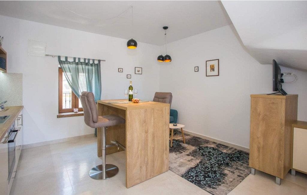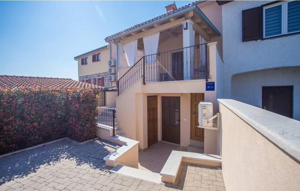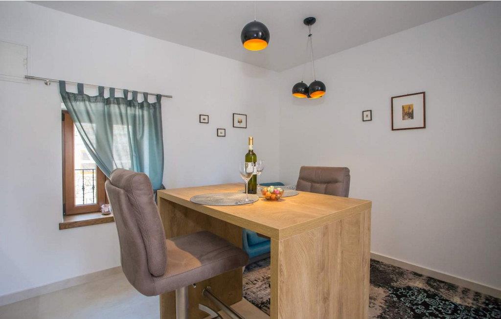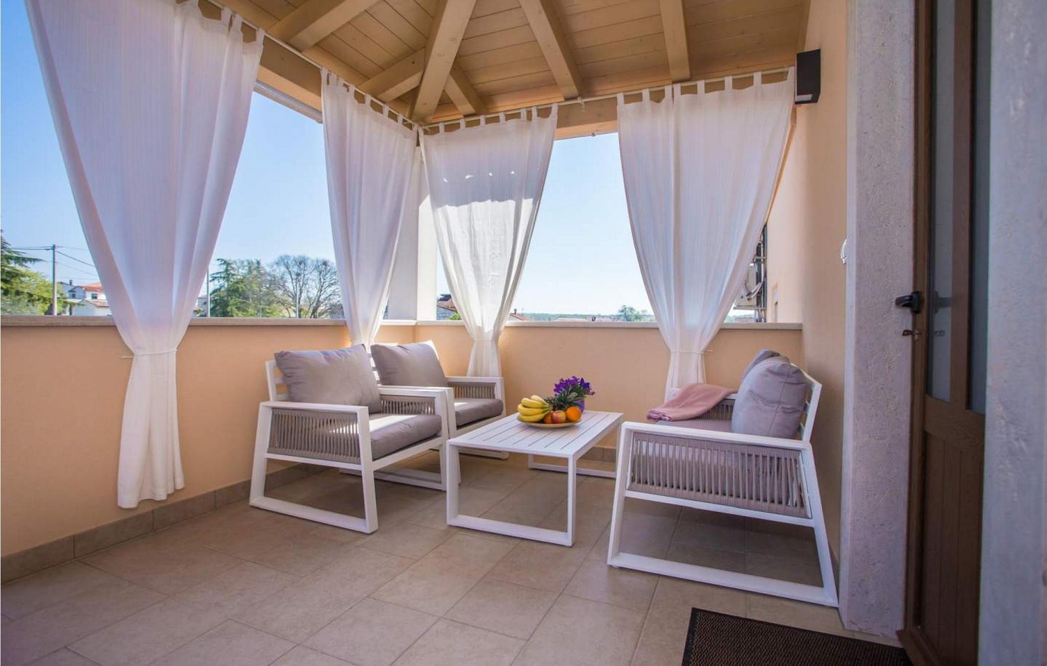 Denne moderne ferielejlighed ligger i et charmerende rækkehus i den idylliske landsby Dracevac, kun få kilometer fra Porec. Fordelt på to etager tilbyder det en lys og smagfuld atmosfære, perfekt til et par. I det nederste område finder I en smukt møbleret stue med et fuldt udstyret køkken, ideel til at lave mad sammen og slappe af. I kan finde jeres nattesøvn på øverste etage. Den store terrasse med loungemøbler lægger op til at afslutte dagen med et glas vin, mens den indhegnede ejendom sikrer fred og privatliv.