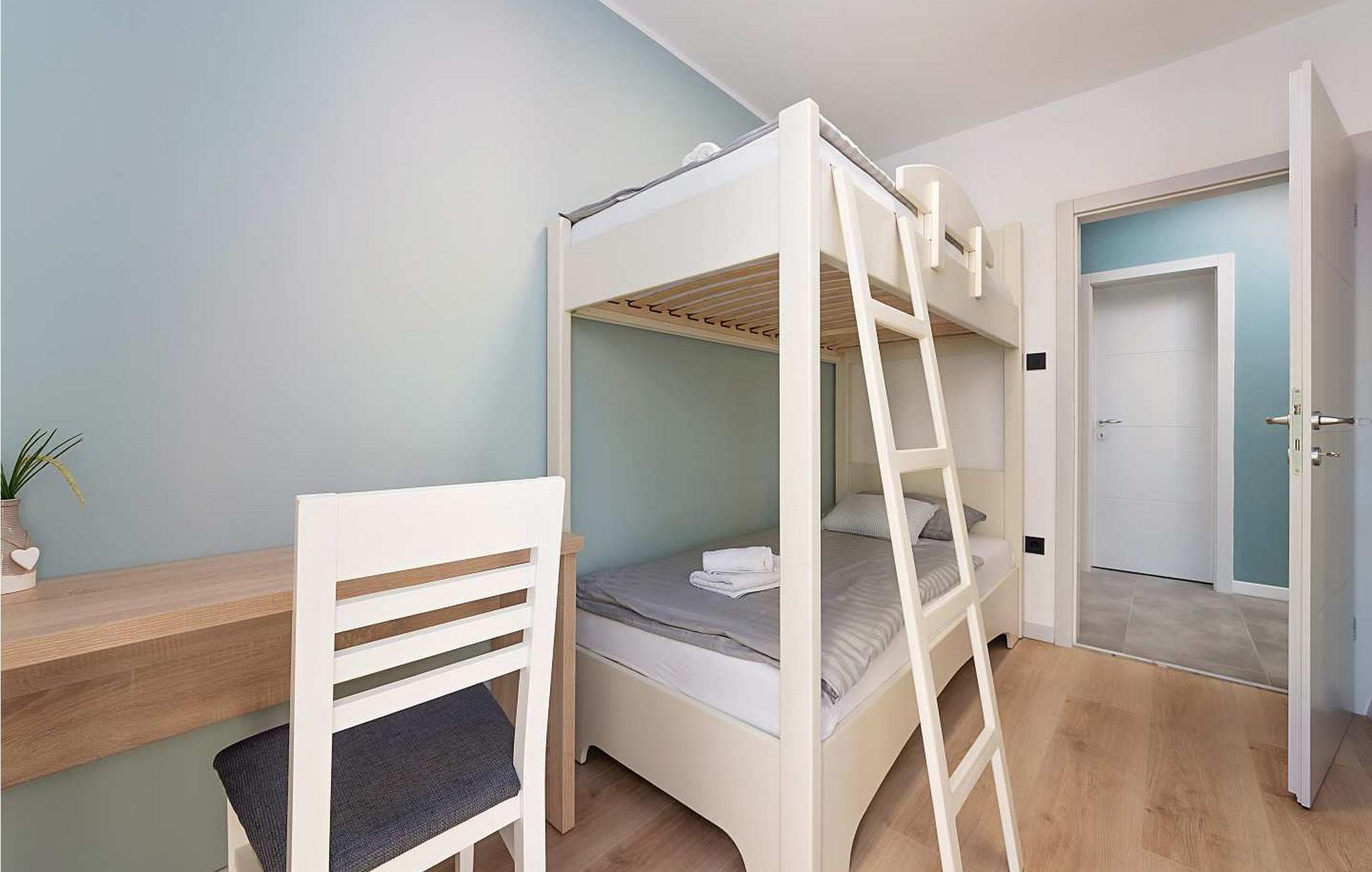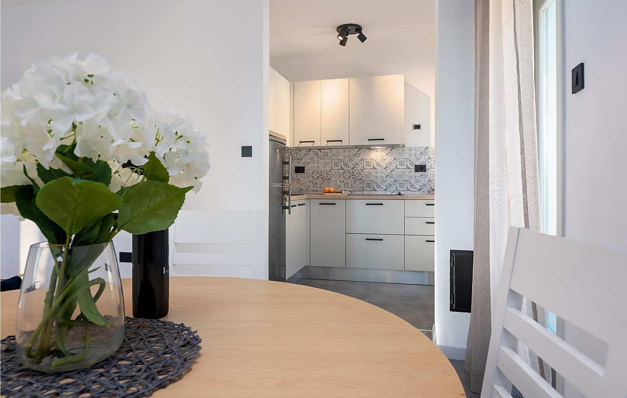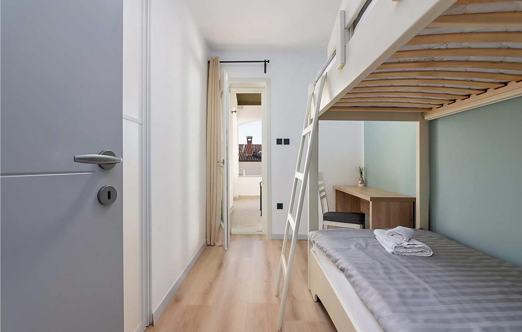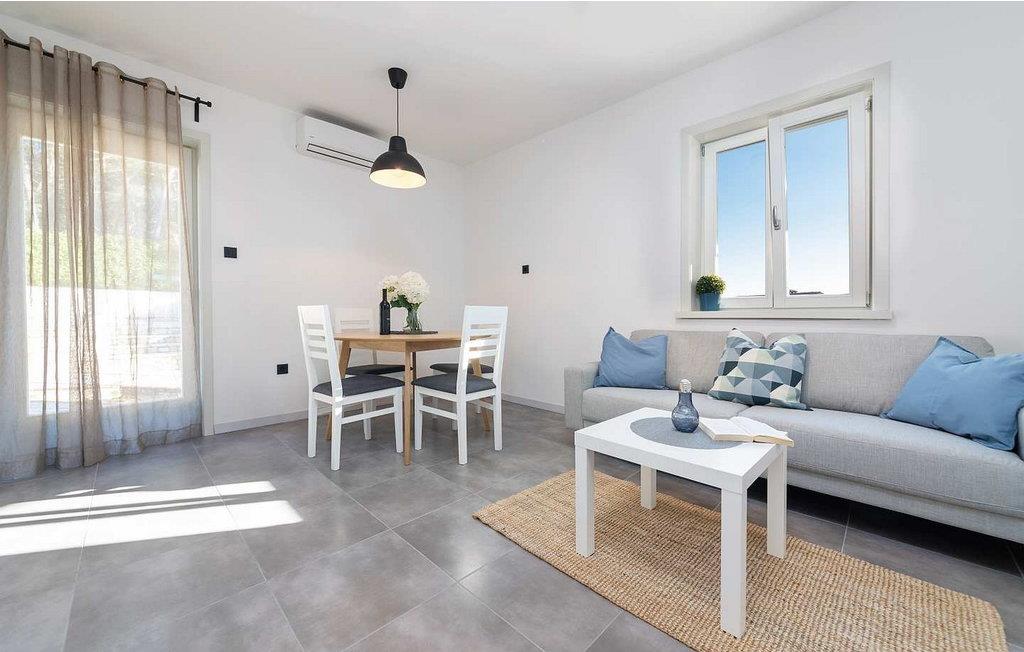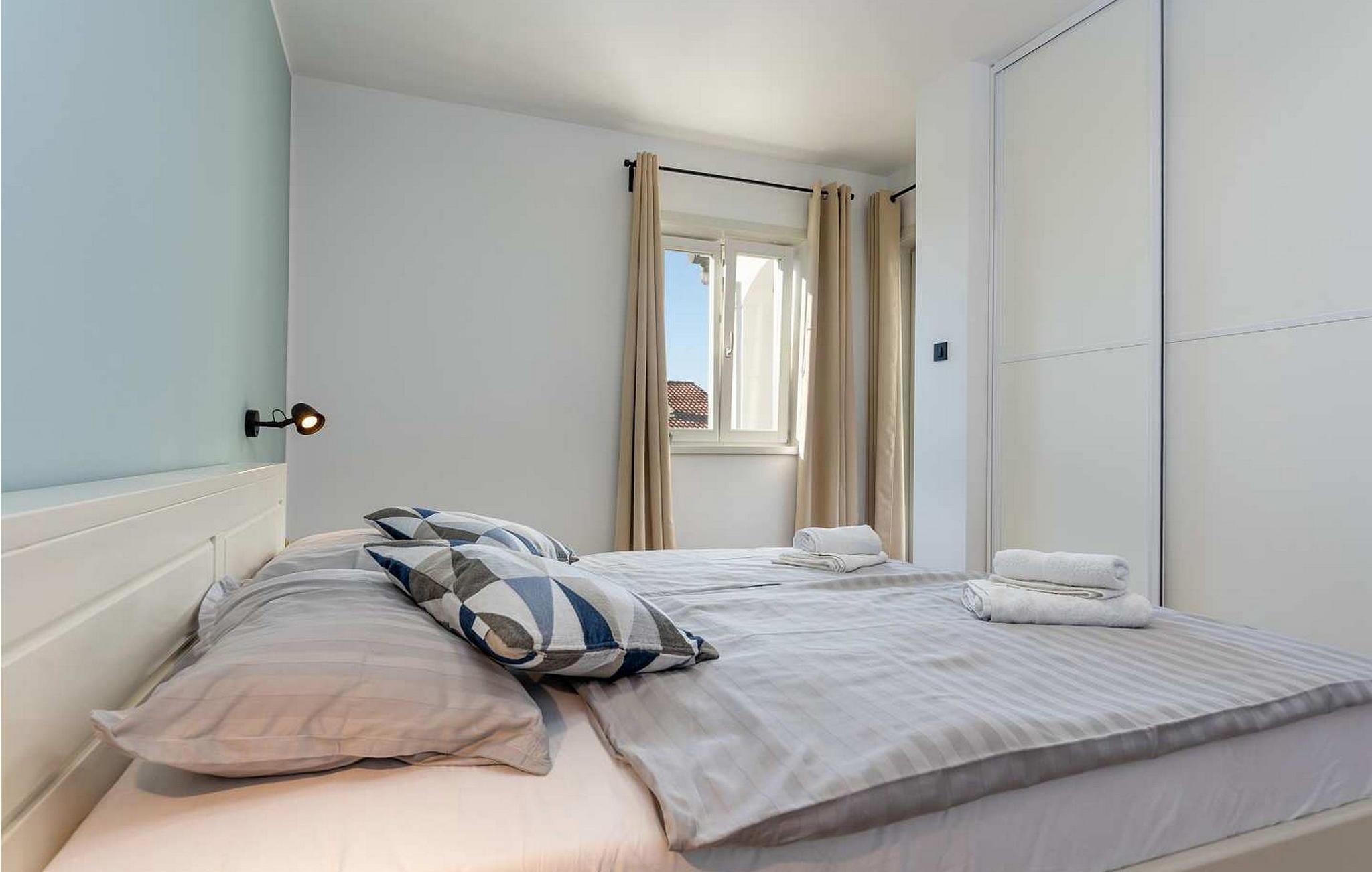 Lejlighederne Marina er beliggende i et lejlighedshus med i alt 4 lejligheder i husets stueetage og første sal. Huset har en fælles swimmingpool på 36 kvm, stor overdækket terrasse med grill og spisebord og en parkeringsplads til hver lejlighed. Lejlighed Marina 3 ligger på første sal i huset (i niveau med swimmingpoolen), har en overflade på ca. 50 kvm og er til 4 gæster. Den består af opholdsstue med siddegruppe, udstyret køkken og spisebord, to soveværelser med dobbeltsenge, hvoraf et med dobbeltseng og et med køjeseng, bad/toilet. Lejligheden har en privat terrasse med spisebord til udendørs spisning. Bemærk venligst, at denne ejendom ikke accepterer ungdomsgrupper eller polterabends. En ungdomsgruppe på denne ejendom er en gruppe bestående af personer på 26 år eller derunder. Book ikke denne ejendom, hvis du er en ungdomsgruppe eller et polterabend, da din reservation vil blive afvist efter booking, hvilket kan omfatte ved ankomst til ejendommen eller under dit ophold, og du vil ikke blive refunderet.