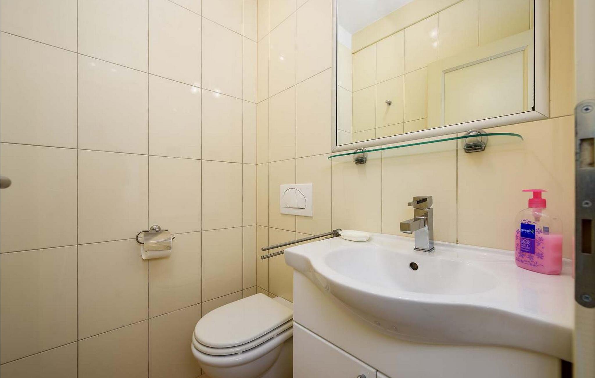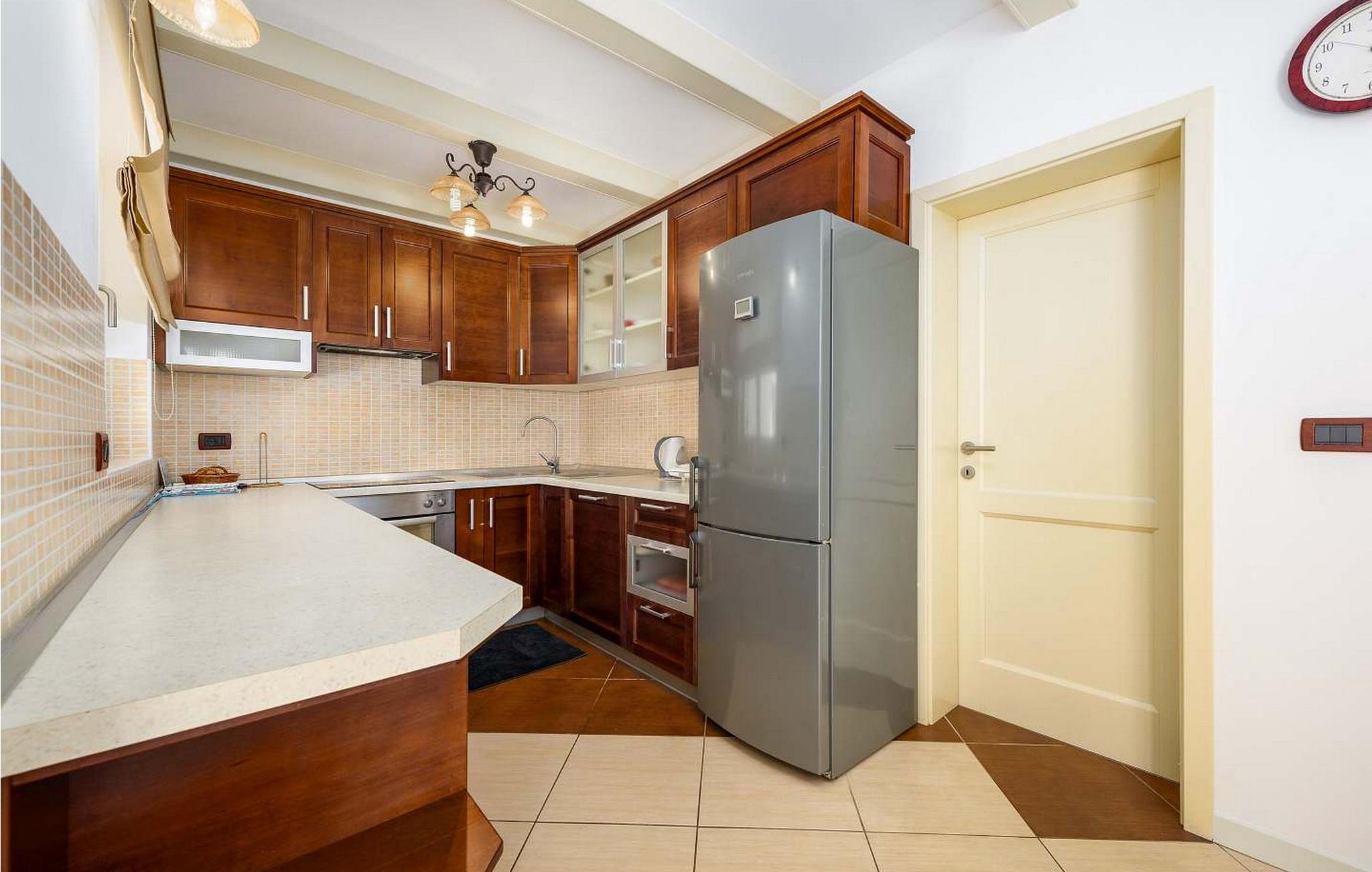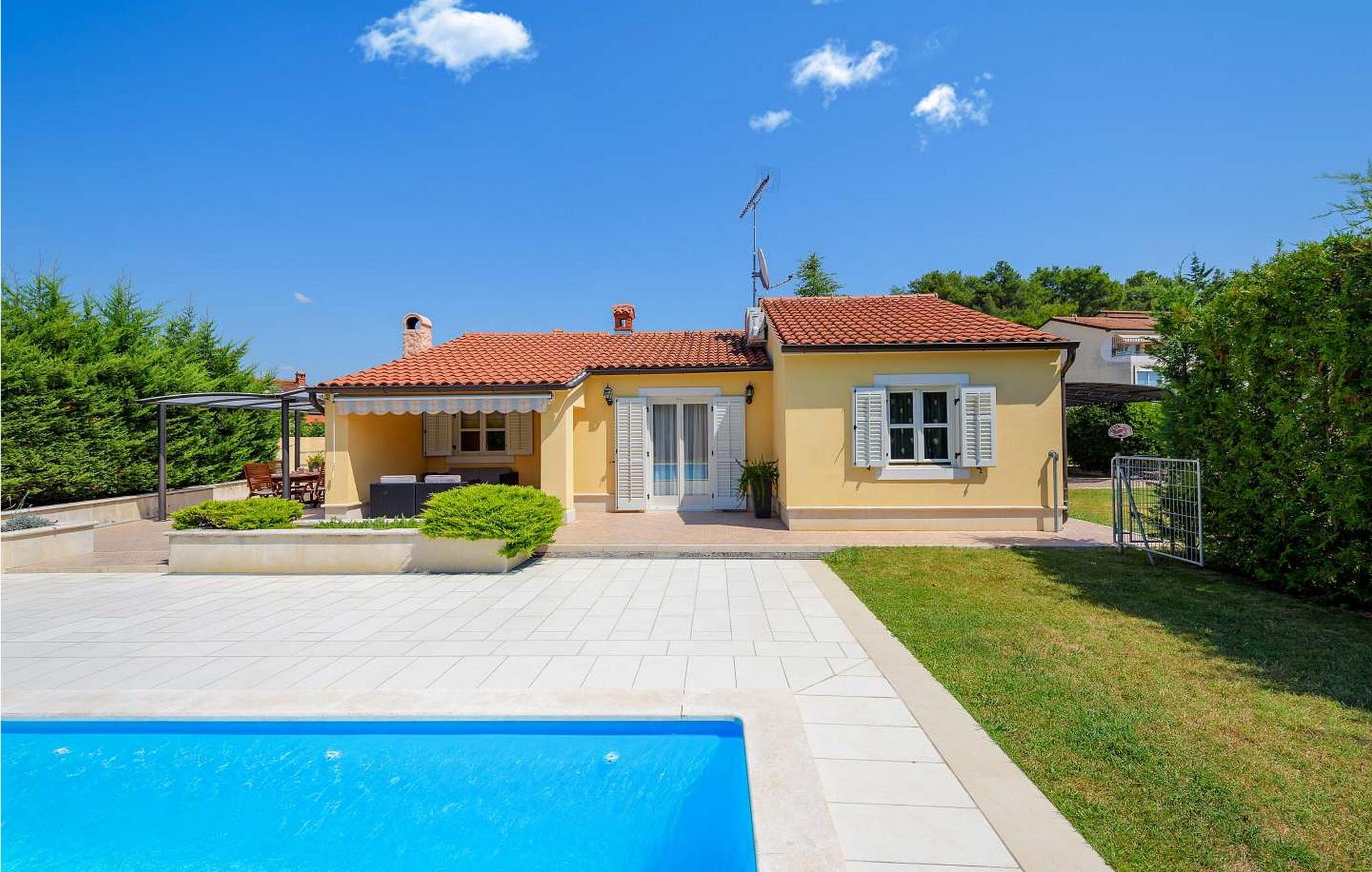 Casa Rita Porec er et dejligt en-etagers feriehus, kun 1,5 km fra Porecs travle centrum og 2 km fra stranden. Villaen er beliggende på privat, indhegnet grund med en forfriskende swimmingpool, ideel til en afslappet svømmetur på varme dage. Udendørsområdet er en sand oase med en overdækket terrasse og en muret grill med udsigt over poolen, perfekt til udendørs spisning. Et andet overdækket område med komfortable stole inviterer dig til at slappe af med en drink og nyde de rolige omgivelser. Indvendigt er opholdsstuen med aircondition designet til komfort og stil med en lædersofa og en åben grundplan, der inkluderer køkkenet og spisepladsen, begge med udsigt over poolen og opholdsstuen. Køkkenet er fuldt udstyret, hvilket gør det til en fornøjelse at tilberede måltider. Porec er let tilgængelig til fods. Der ligger en restaurant kun 300 m og en butik 500 m fra huset. Udforsk den gamle bydels livlige stengader og hyggelige restauranter, og besøg den imponerende Basilica of Euphrasia, et mesterværk fra det 6. århundrede. Bemærk venligst, at denne ejendom ikke accepterer ungdomsgrupper eller polterabender. En ungdomsgruppe på denne ejendom består af personer på 26 år eller derunder.