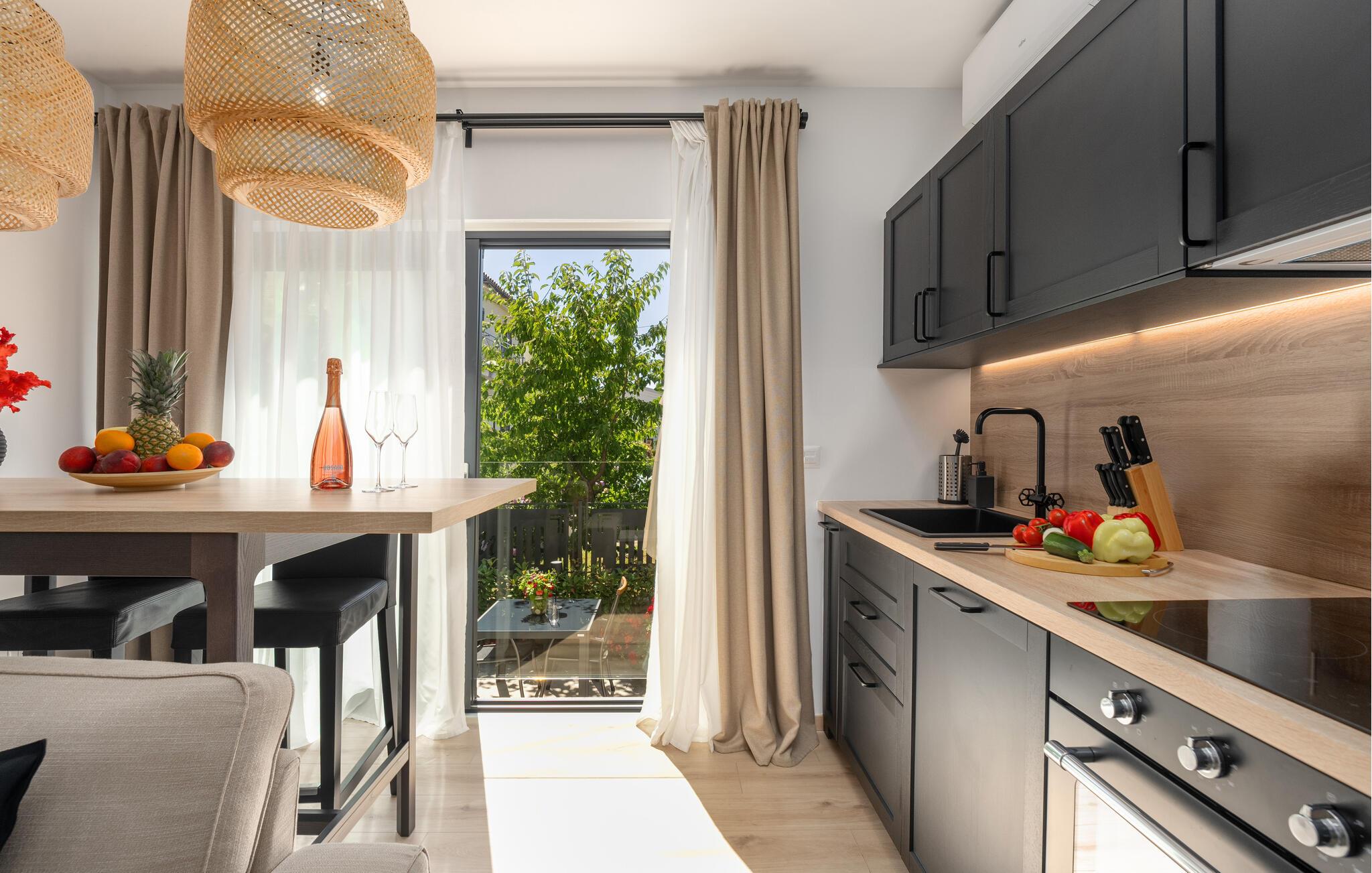 Deluxe Studio Perla er en attraktiv og komfortabel ferielejlighed i en af de smukkeste forstæder til Porec – Novo naselje. Studiet ligger i et separat lille hus med egen indgang på husejernes grund og har en parkeringsplads. Småstensstranden og forskellige sports- og gastronomiske faciliteter ligger kun 350 m væk, en butik 500 m, restaurant 350 m og centrum af Porec 1 km. Deluxe Studio Perla på 32 kvm og til 2 gæster består af airconditioneret stue-soveplads, som er delvist adskilt, i den ene del er udstyret køkken, spisebord og sofa og i den anden en dobbeltseng og bad/toilet. Studiet har en lille terrasse med spisebord. Bemærk venligst, at denne ejendom ikke accepterer ungdomsgrupper eller polterabends. En ungdomsgruppe på denne ejendom er en gruppe bestående af personer på 26 år eller derunder. Book ikke denne ejendom, hvis du er en ungdomsgruppe eller et polterabend, da din reservation vil blive afvist efter booking, hvilket kan omfatte ved ankomst til ejendommen eller under dit ophold, og du vil ikke blive refunderet.