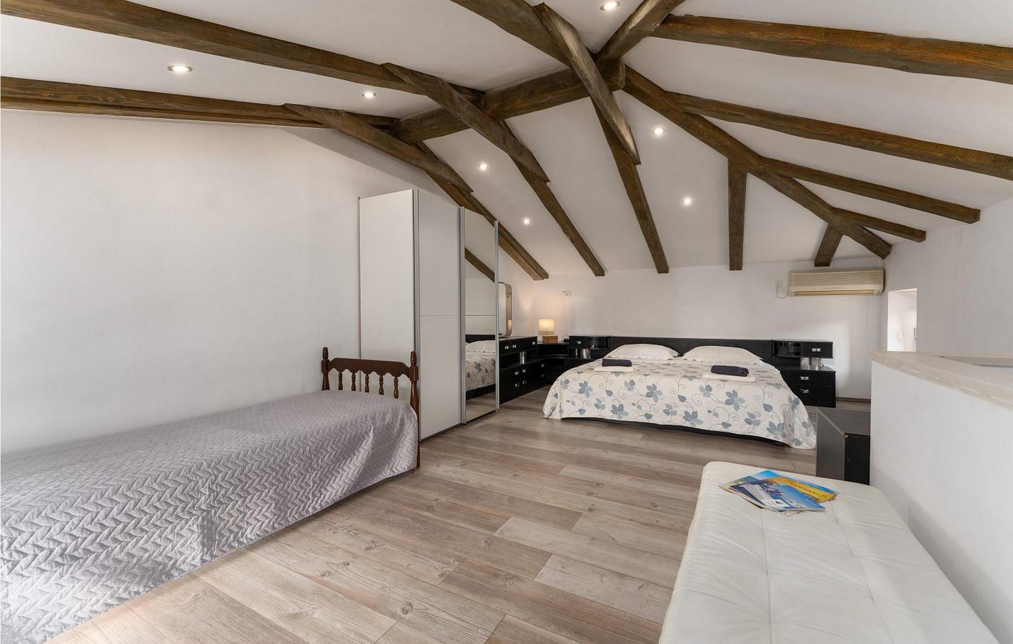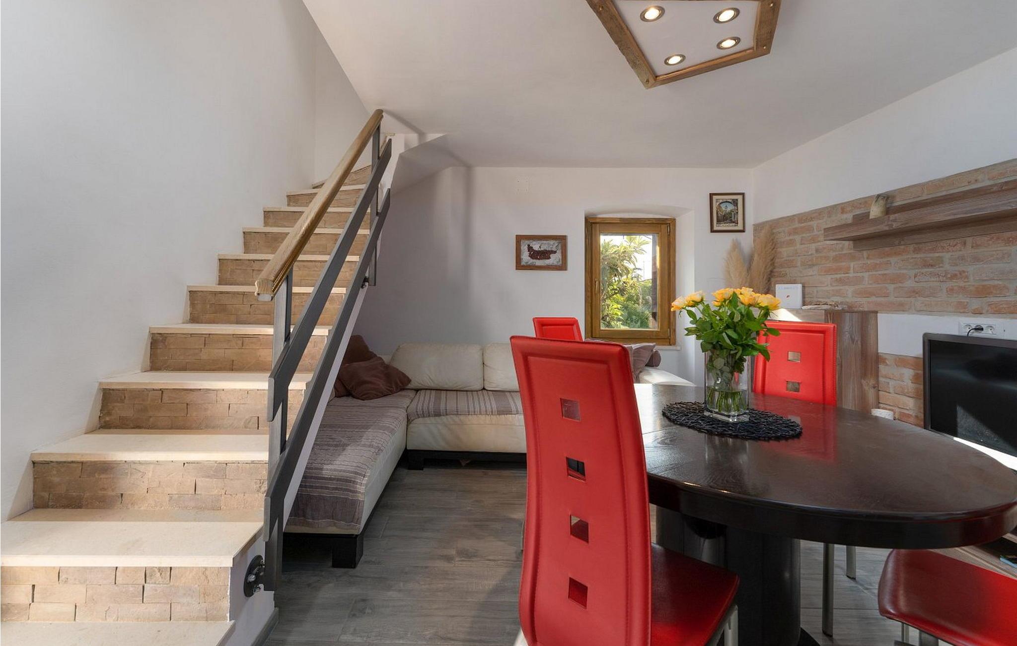 Rustik lejlighed Paris for 5 gæster kun 150 km fra havet og 2 km fra centrum af Porec. Indkvarteringen blev renoveret og indrettet med rustikke møbler. Lejligheden har en velplejet have på 100 kvm som byder gæsterne på komplet ro, balkon med siddemøbler, grill. Kun to minutters gang fra lejligheden ligger flere restauranter, caféer, bagerier, butikker og promenader. Offentlig parkering ligger 100 m fra lejligheden. Lejlighed Paris er velegnet til 5 personer og har 90 kvm. Den består af en stue med spisebord, et lille køkken, et badeværelse og et galleri med en dobbeltseng og en ekstra seng. I anden del af lejligheden med separat indgang er et soveværelse med dobbeltseng og eget badeværelse. Bemærk venligst, at denne ejendom ikke accepterer ungdomsgrupper eller polterabends. En ungdomsgruppe på denne ejendom er en gruppe bestående af personer på 26 år eller derunder. Book ikke denne ejendom, hvis du er en ungdomsgruppe eller et polterabend, da din reservation vil blive afvist efter booking, hvilket kan omfatte ved ankomst til ejendommen eller under dit ophold, og du vil ikke blive refunderet.