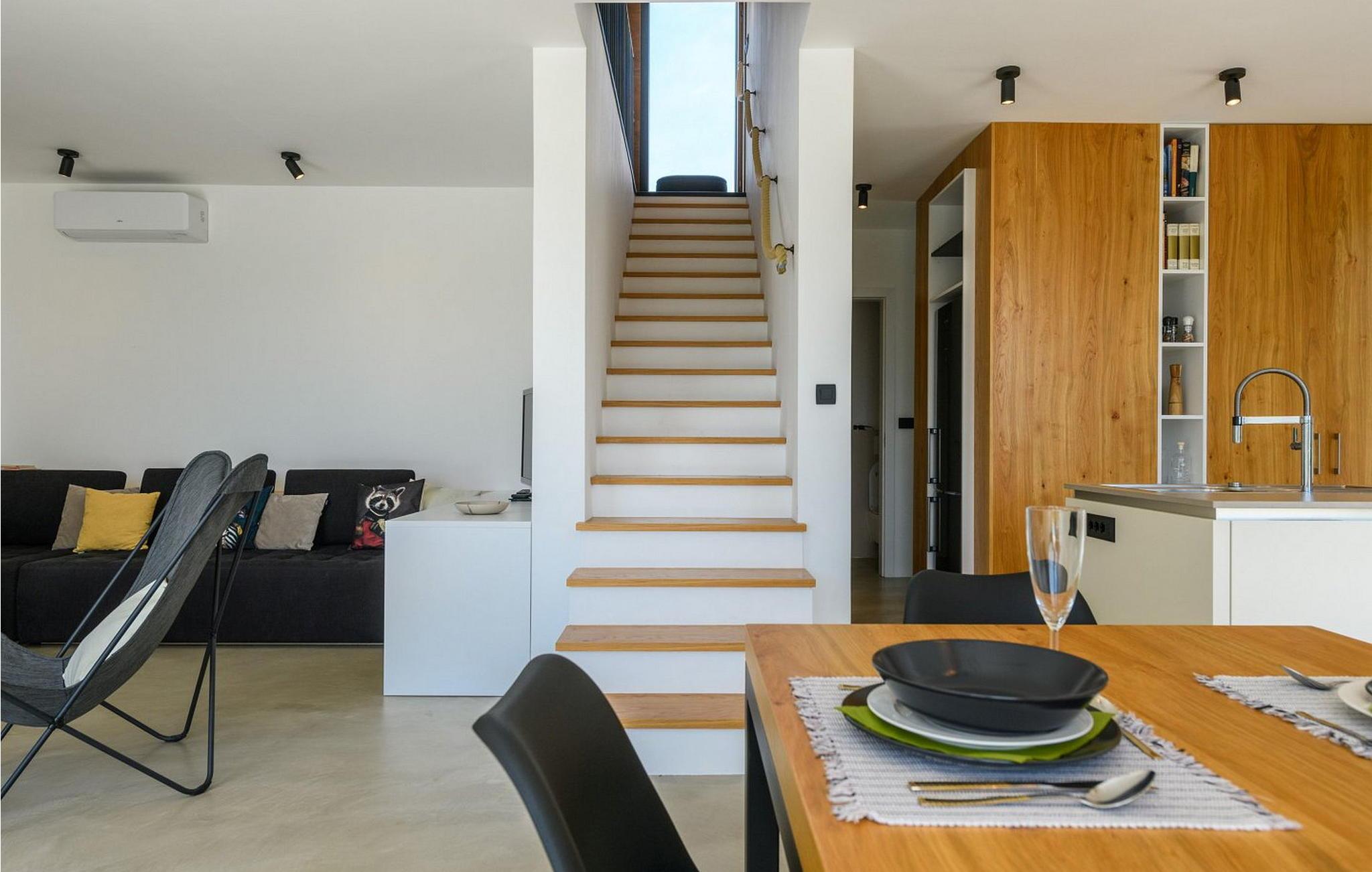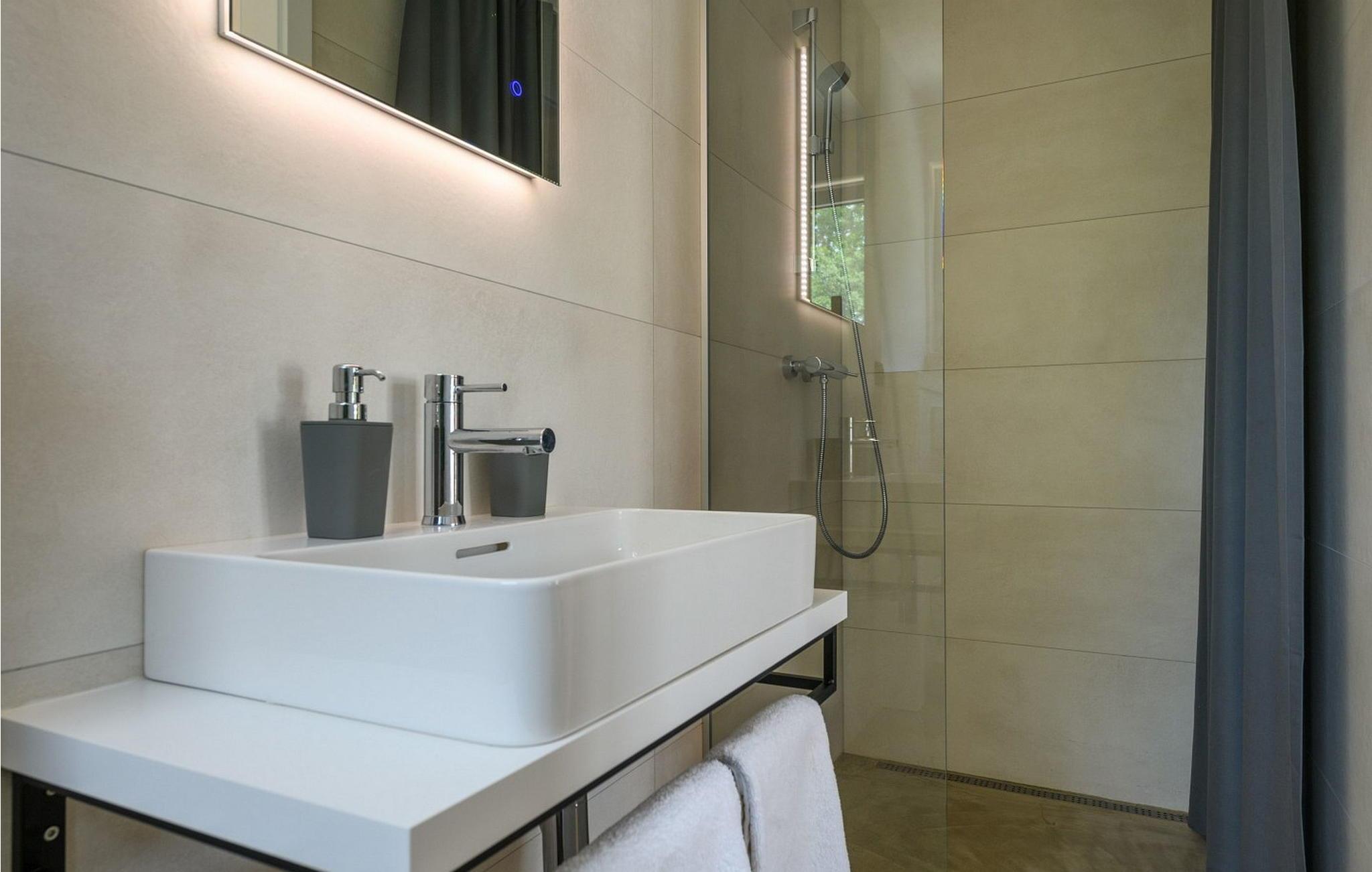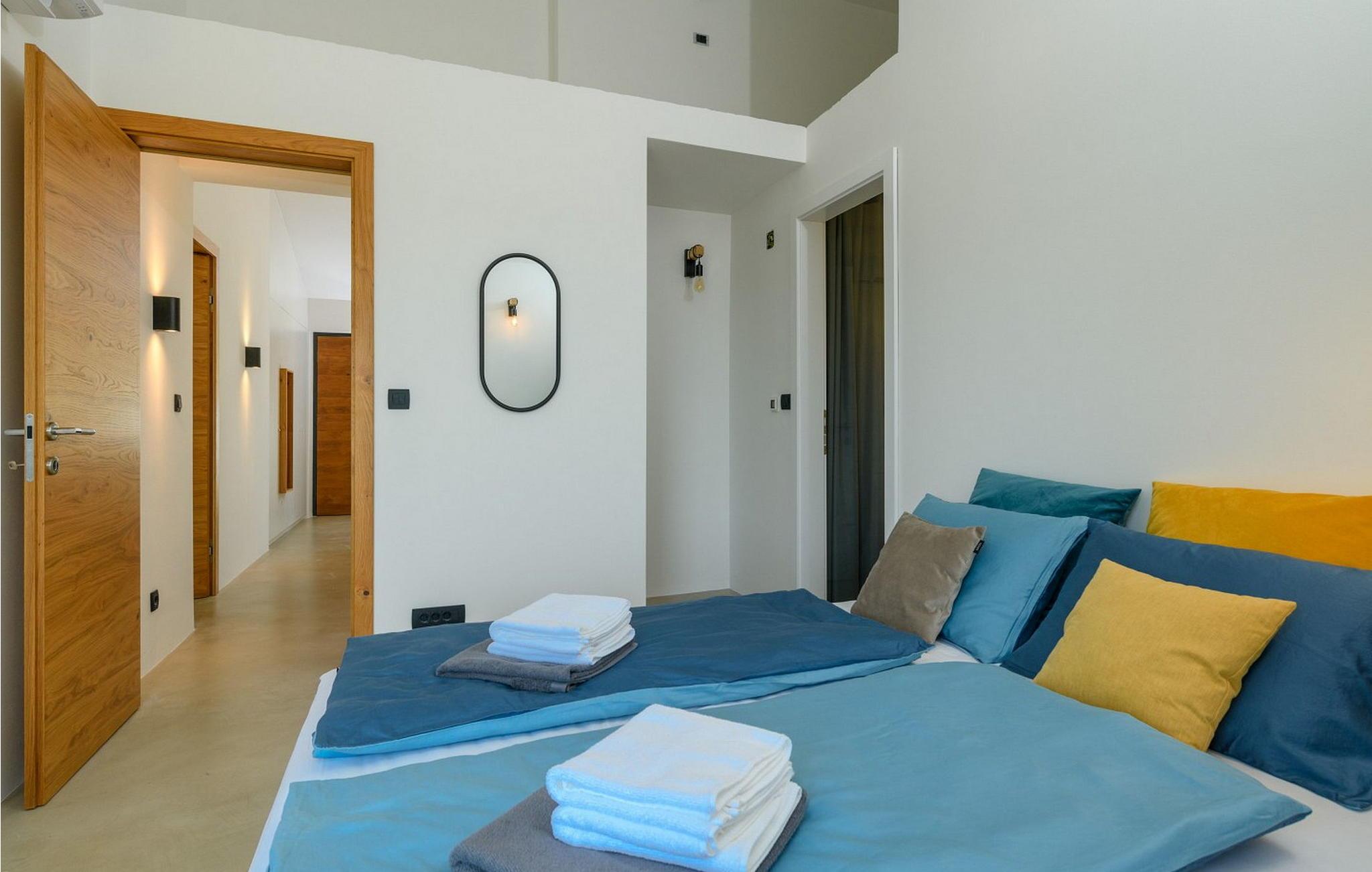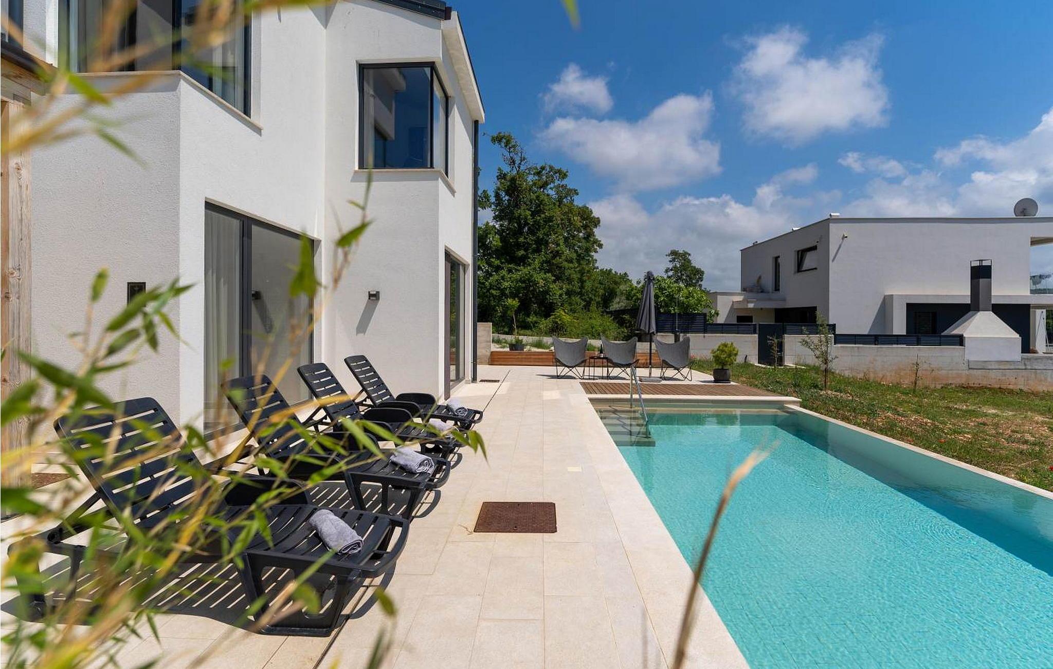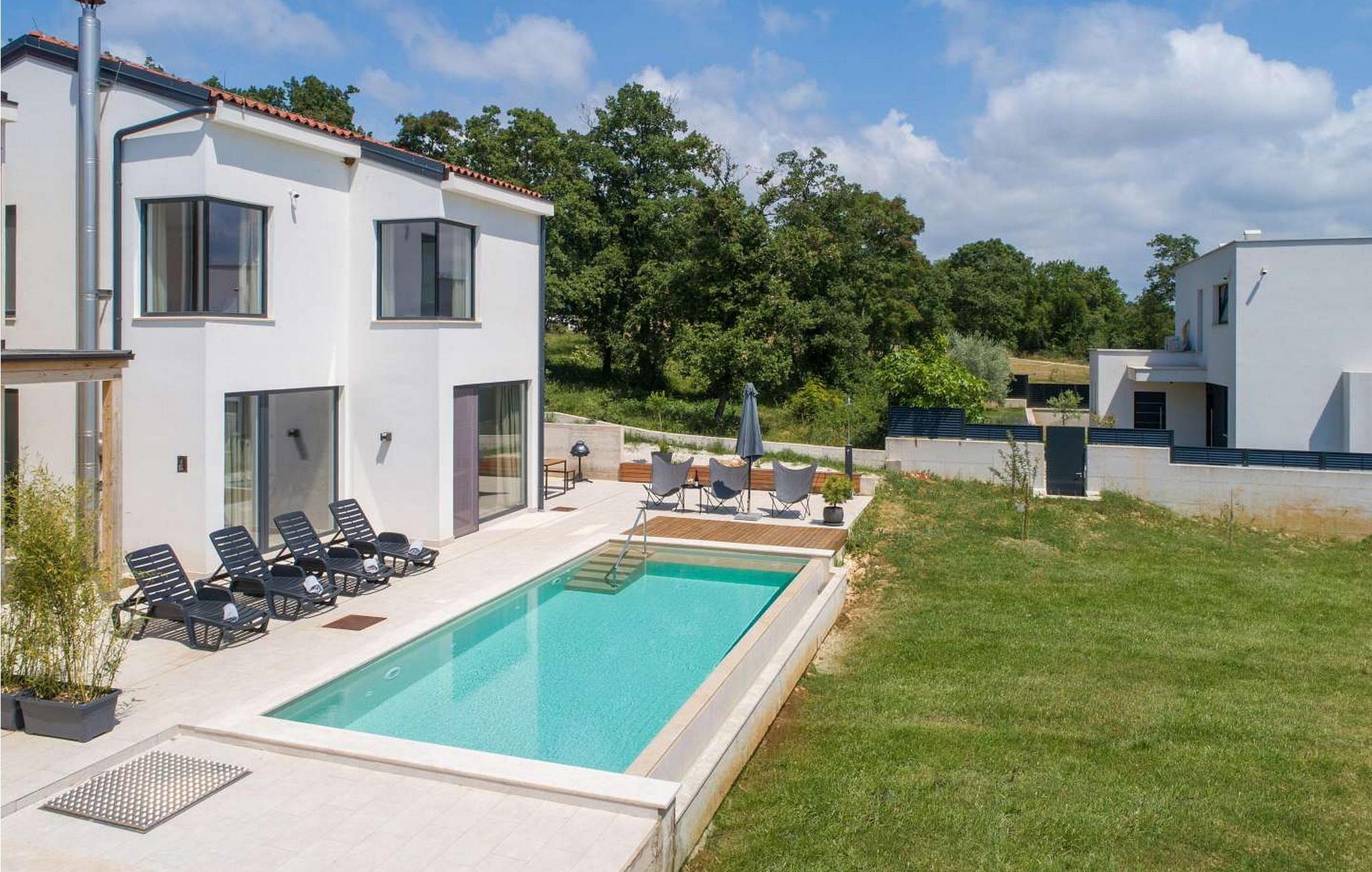Villa Sunset er et moderne feriehus beliggende kun få kilometer fra Porec og dets indbydende hav. Villaen ligger i Fuškulin, tæt på en butik, en traditionel istrisk taverna, en førsteklasses vingård og cykelstier. Villaen byder på et smukt udendørs område med en forfriskende swimmingpool, liggestole, et udendørs spisebord, hvor du kan nyde al fresco måltider og en grill. Nyd venlig konkurrence med adgang til en indendørs squashbane, der deles med gæster fra den anden halvdel af huset. To parkeringspladser er også tilgængelige. Indenfor byder Villa Sunset på moderne interiør med moderne badeværelser. Stueetagen indeholder en rummelig opholdsstue, et fuldt udstyret køkken, en spisestue, et studie og et badeværelse. Første sal har tre soveværelser med dobbeltsenge, hver med sit eget badeværelse, hvilket sikrer både komfort og privatliv. Denne blanding af moderne komfort og rolige omgivelser lover en uforglemmelig ferieoplevelse. Porec er kun en kort køretur væk, hvor du kan beundre Euphrasia-basilikaen, et fantastisk mesterværk fra det 6. århundrede. Porecs rige kulturarv omfatter massive bymure, charmerende stengader med hyggelige restauranter og souvenirbutikker og en malerisk havnepromenade perfekt til slentreture. Bemærk venligst, at denne ejendom ikke accepterer ungdomsgrupper eller polterabender. En ungdomsgruppe på denne ejendom består af personer på 26 år eller derunder.