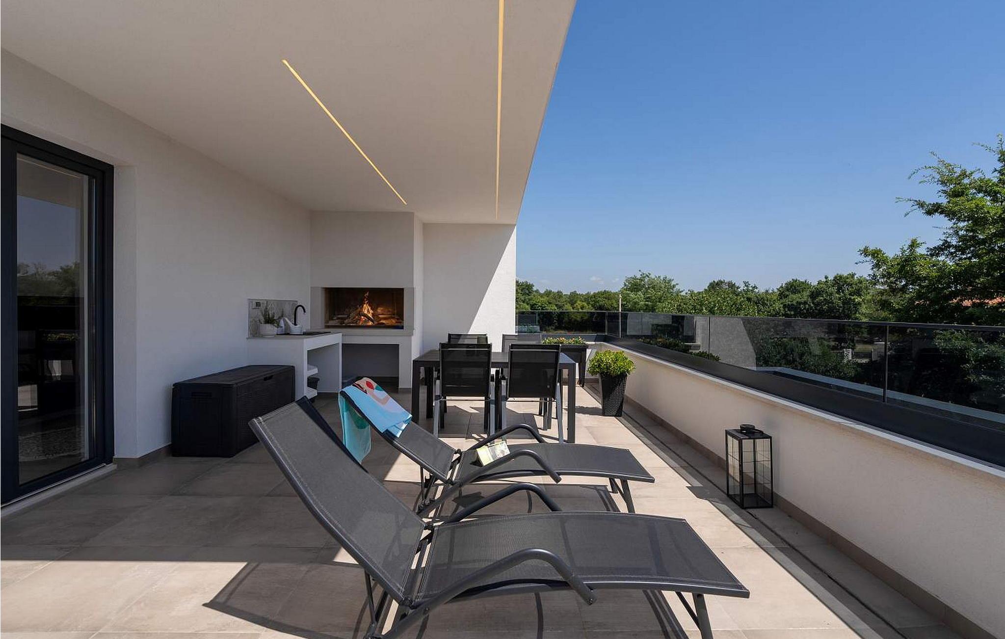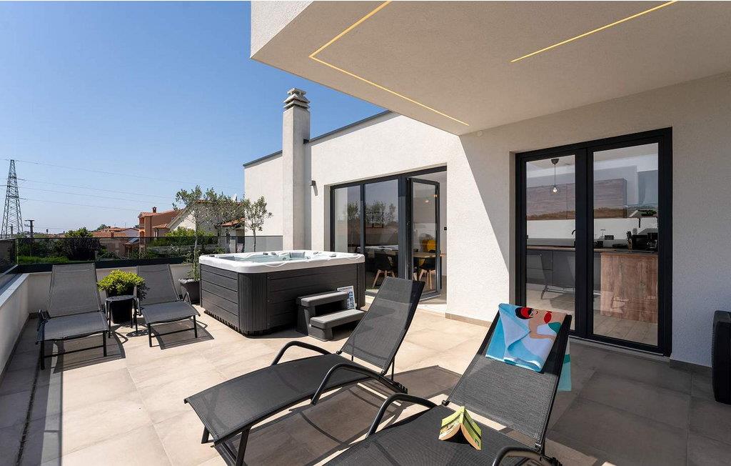 Apartment Ana ligger på anden sal i et indbydende familiehus og har en fantastisk terrasse med et luksuriøst spabad, et sommerkøkken, komfortable liggestole og et stort bord til udendørs spisning. Uanset om du slapper af efter en dag med minder eller nyder en hyggelig aften under stjernerne, er dette udendørsområde perfekt til at skabe varige minder. Denne ejendom accepterer ikke ungdomsgrupper eller polterabender. En ungdomsgruppe på denne ejendom består af personer på 26 år eller derunder.