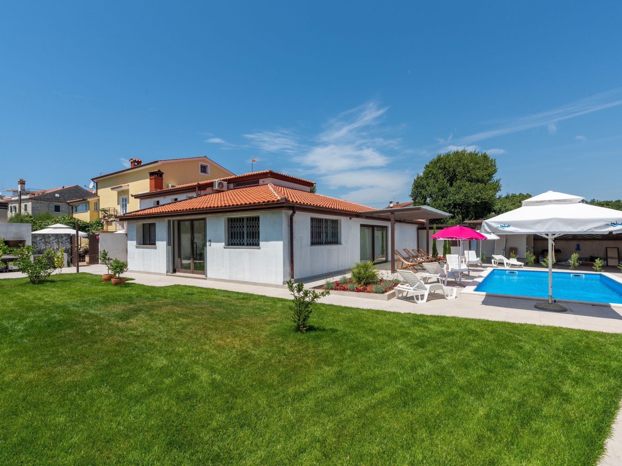 Beautiful apartment house "Nino". In the district of Gulici 3 km from the centre of Porec, in a quiet, sunny, elevated position, 2.5 km from the sea, 1.5 km from the beach. For shared use: property 2'000 m2 (fenced), garden, swimming pool angular heated (8 x 4 m, depth 150 cm, seasonal availability: 01.Apr. - 01.Nov.) with internal staircase. Outdoor shower, pool maintenance by the owner/gardener. In the house: internet access, central heating system, washing machine. Parking at the house on the premises. Shop, restaurant 400 m, bus stop 2 km, pebble beach 2.5 km, rocky beach 2.5 km. Tennis 1 km. Groups of teenagers are not allowed.