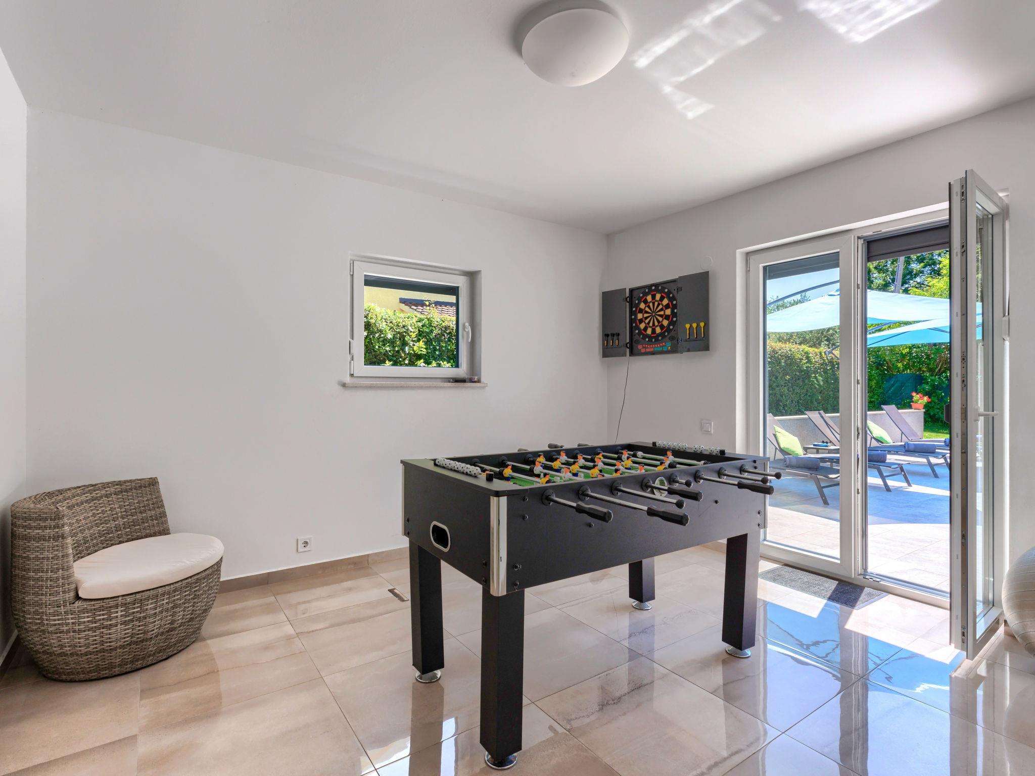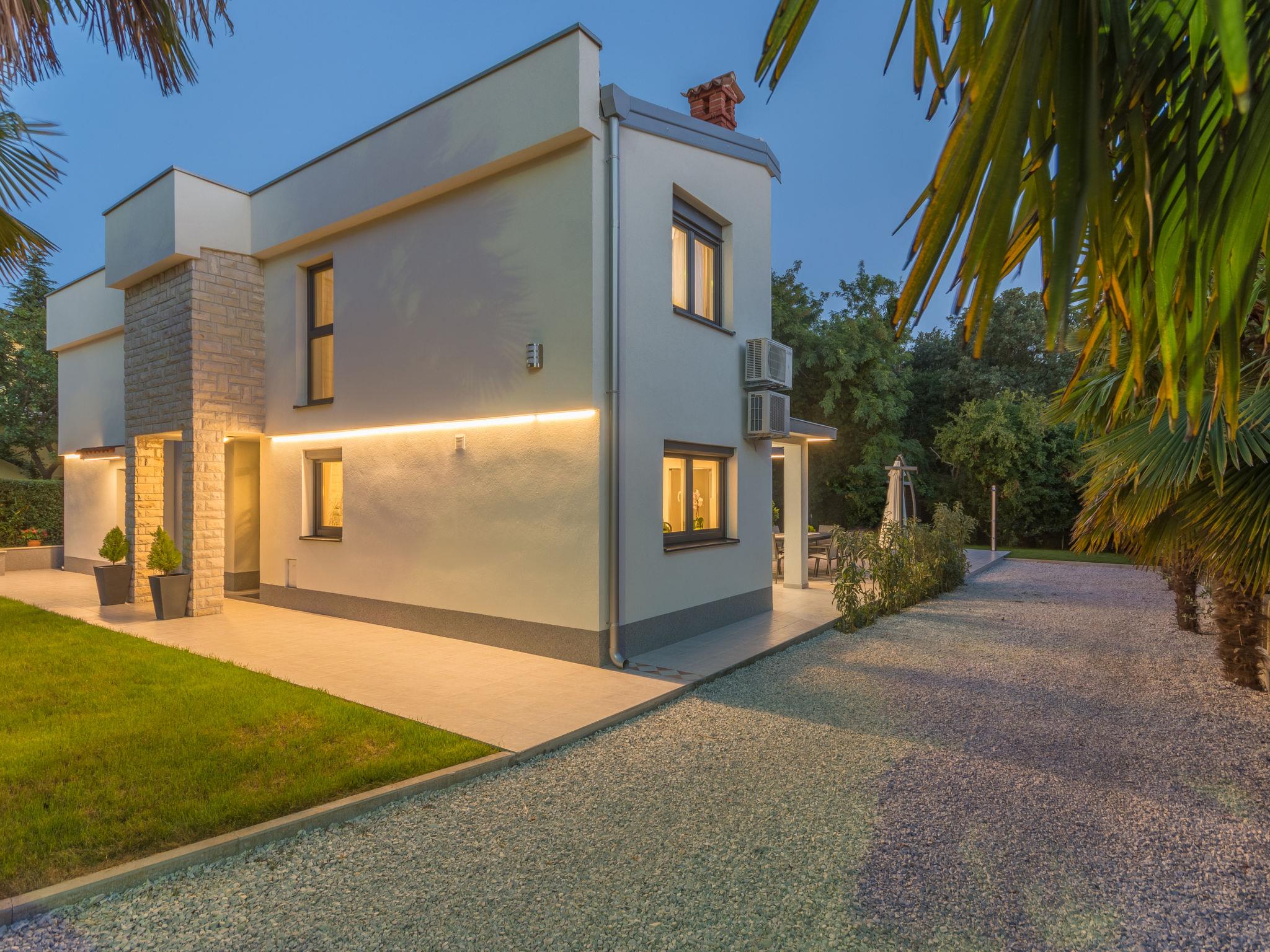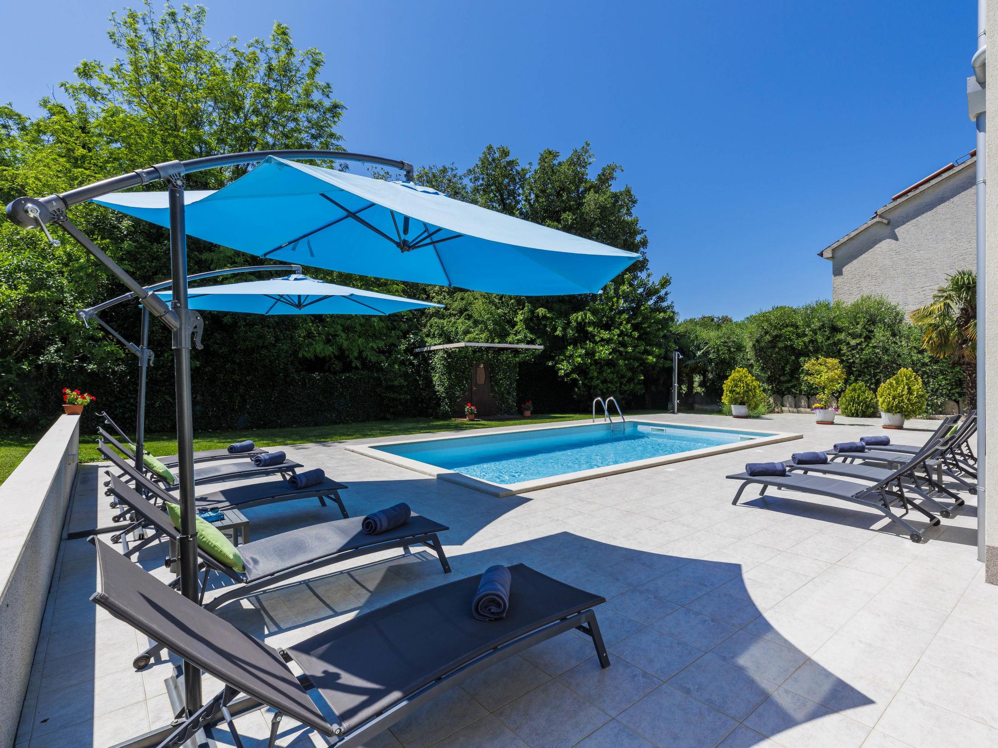 Beautiful villa "Villa Romina", 2 storeys. In the district of Špadici 1.5 km from the centre of Porec, 350 m from the sea, 400 m from the beach. Private: property 700 m2 (fenced), swimming pool angular (8 x 4 m, depth 145 cm, seasonal availability: 01.May. - 01.Oct.). Outdoor shower, terrace (35 m2), garden furniture, barbecue, pool maintenance by the owner/gardener. In the house: internet access, table football, washing machine. Parking (for 4 cars) at the house on the premises. Shop 100 m, restaurant 200 m, bus stop 2 km, pebble beach 400 m, rocky beach, public bathing area. Tennis, walking paths from the house, cycle lane 300 m, children's playground 350 m. Nearby attractions: Aquapark 4 km. Please note: suitable for families. The owner does not accept any youth groups. Airfield 50 km from the property.