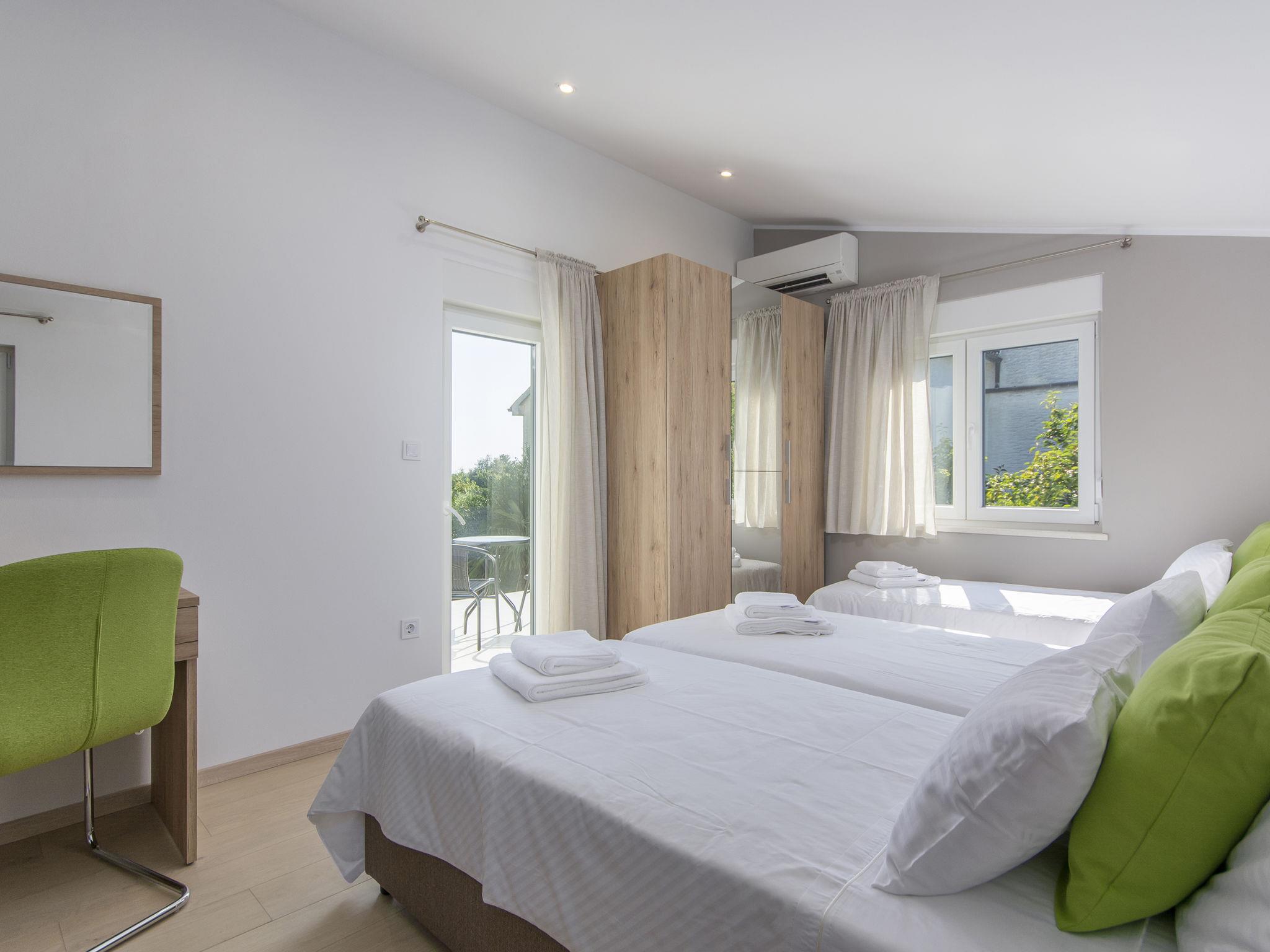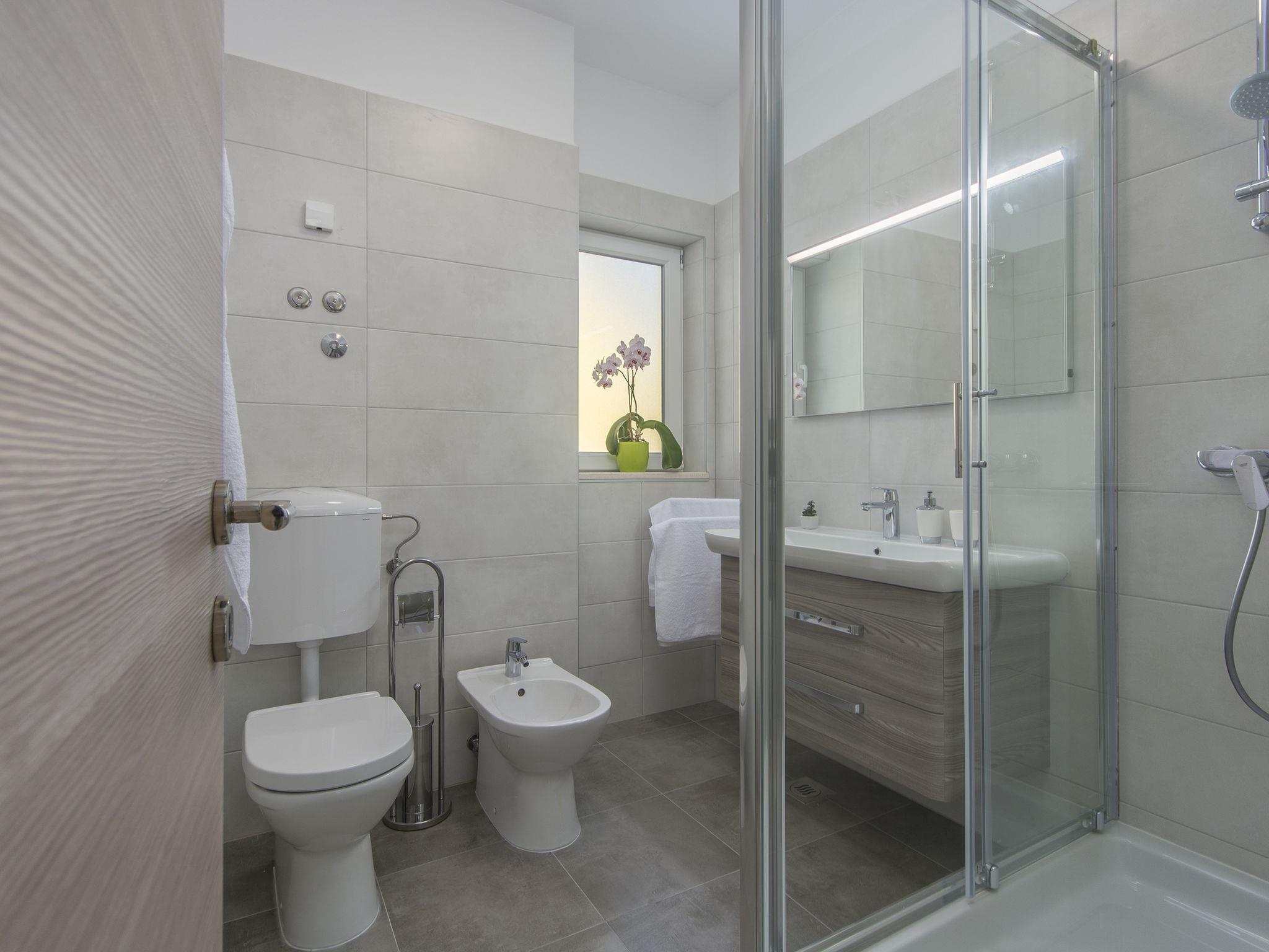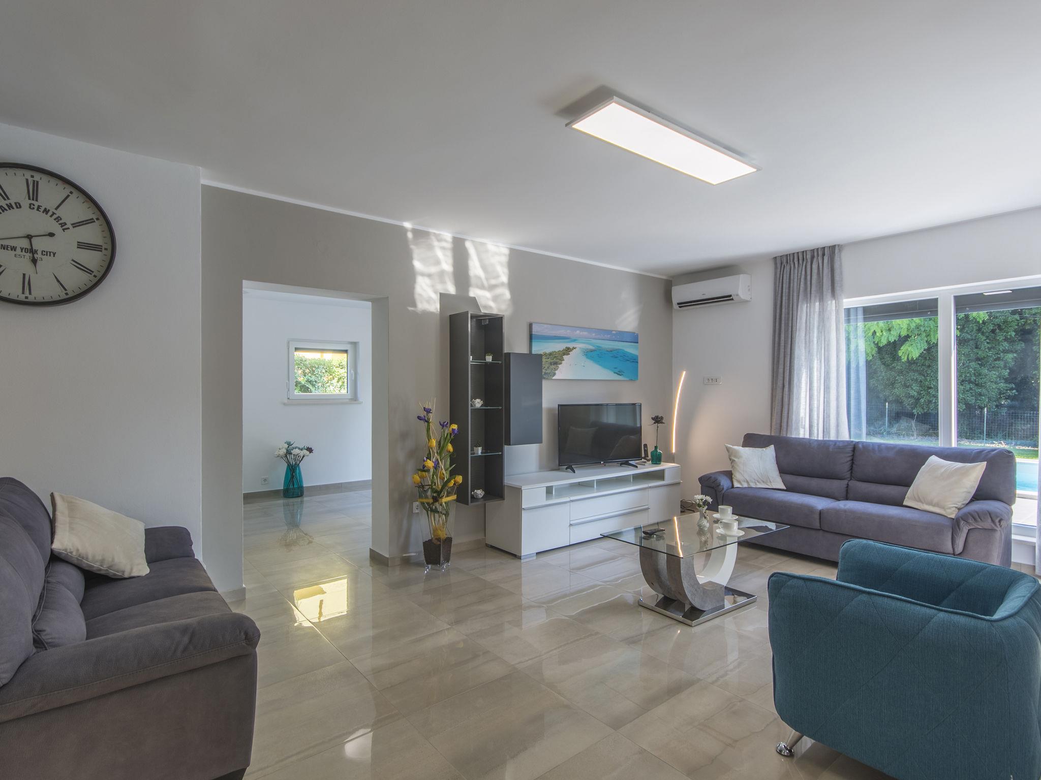 Beautiful villa "Villa Romina", 2 storeys. In the district of Špadici 1.5 km from the centre of Porec, 350 m from the sea, 400 m from the beach. Private: property 700 m2 (fenced), swimming pool angular (8 x 4 m, depth 145 cm, seasonal availability: 01.May. - 01.Oct.). Outdoor shower, terrace (35 m2), garden furniture, barbecue, pool maintenance by the owner/gardener. In the house: internet access, table football, washing machine. Parking (for 4 cars) at the house on the premises. Shop 100 m, restaurant 200 m, bus stop 2 km, pebble beach 400 m, rocky beach, public bathing area. Tennis, walking paths from the house, cycle lane 300 m, children's playground 350 m. Nearby attractions: Aquapark 4 km. Please note: suitable for families. The owner does not accept any youth groups. Airfield 50 km from the property.