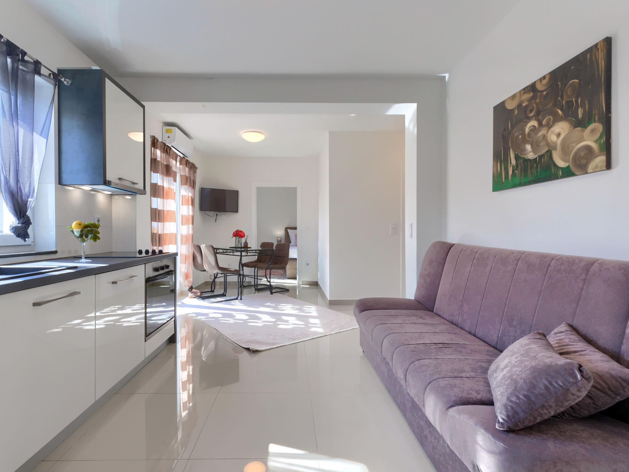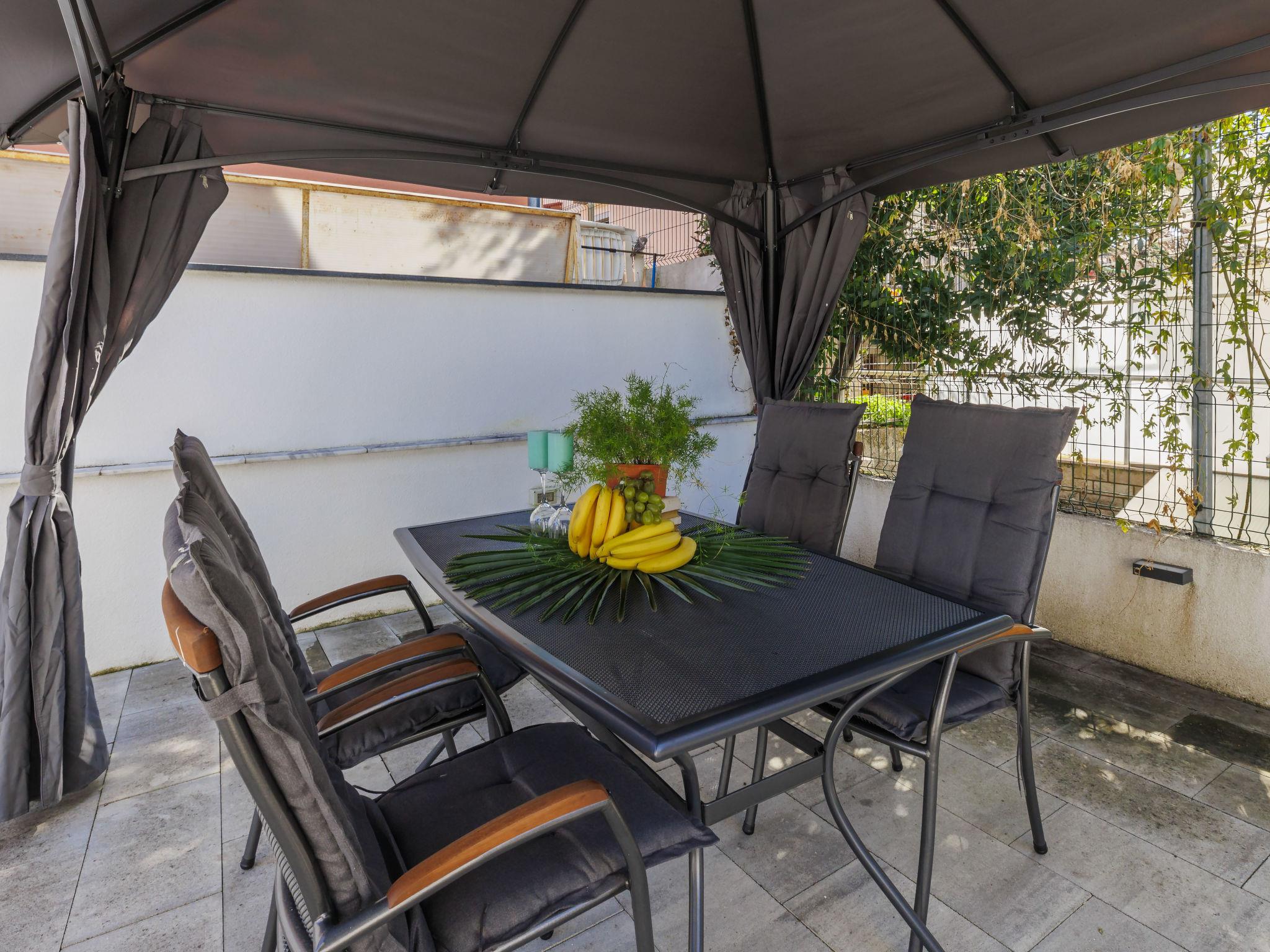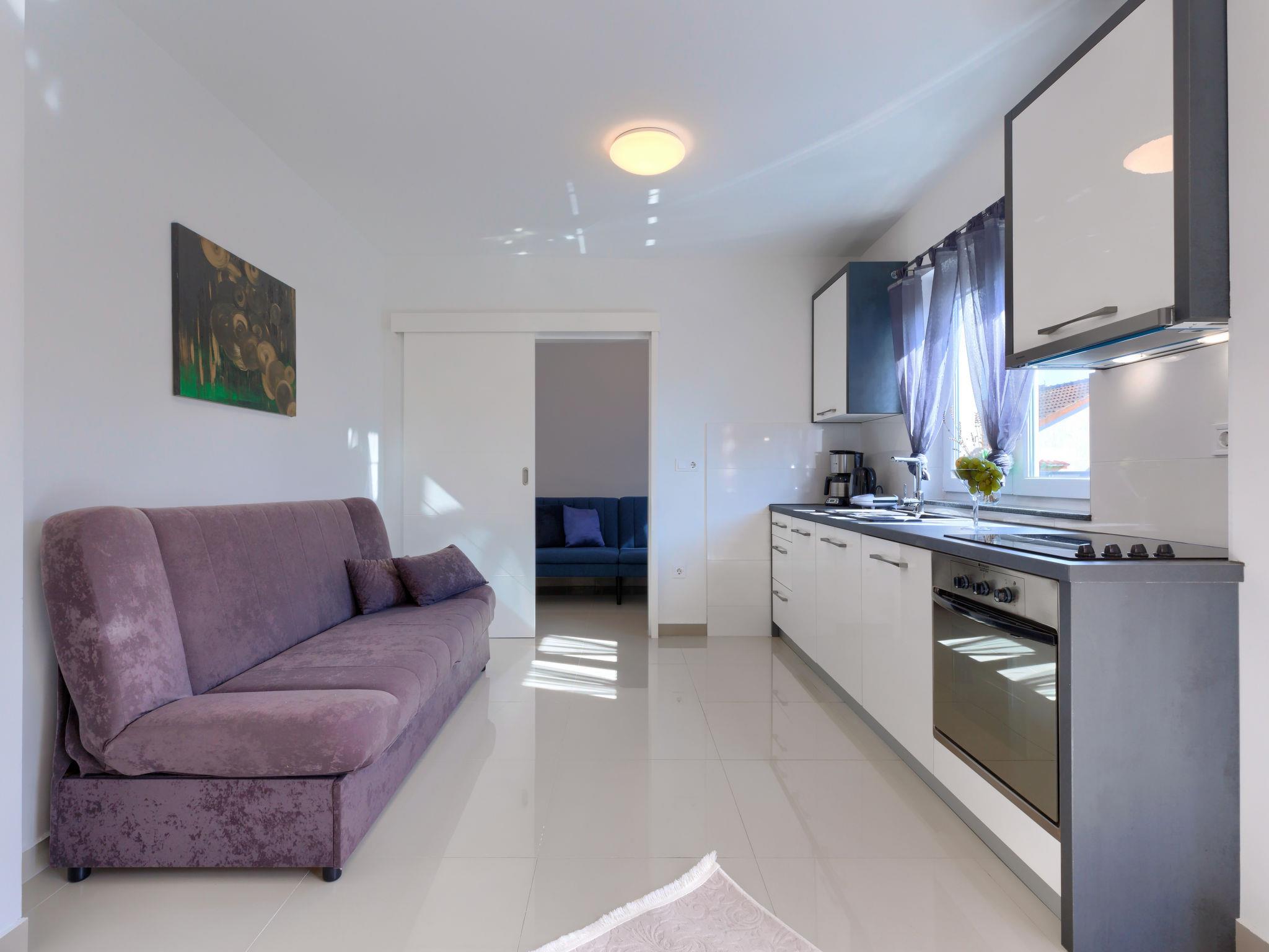 "Amra 7", 3-room apartment 40 m2, on the top floor. Cosy furnishings: living/dining room with 1 sofabed (120 cm, length 200 cm), satellite TV and air conditioning. Exit to the terrace. 1 room with 1 sofabed (120 cm, length 190 cm). 1 room with 1 french bed (160 cm, length 200 cm). Open kitchen (oven, dishwasher, 4 ceramic glass hob hotplates, toaster, kettle, electric coffee machine). Shower/WC. Forced-air heating. Terrace 12 m2. Facilities: washing machine, iron, hair dryer. Internet (WiFi, free). Parking (1 car) at the house.