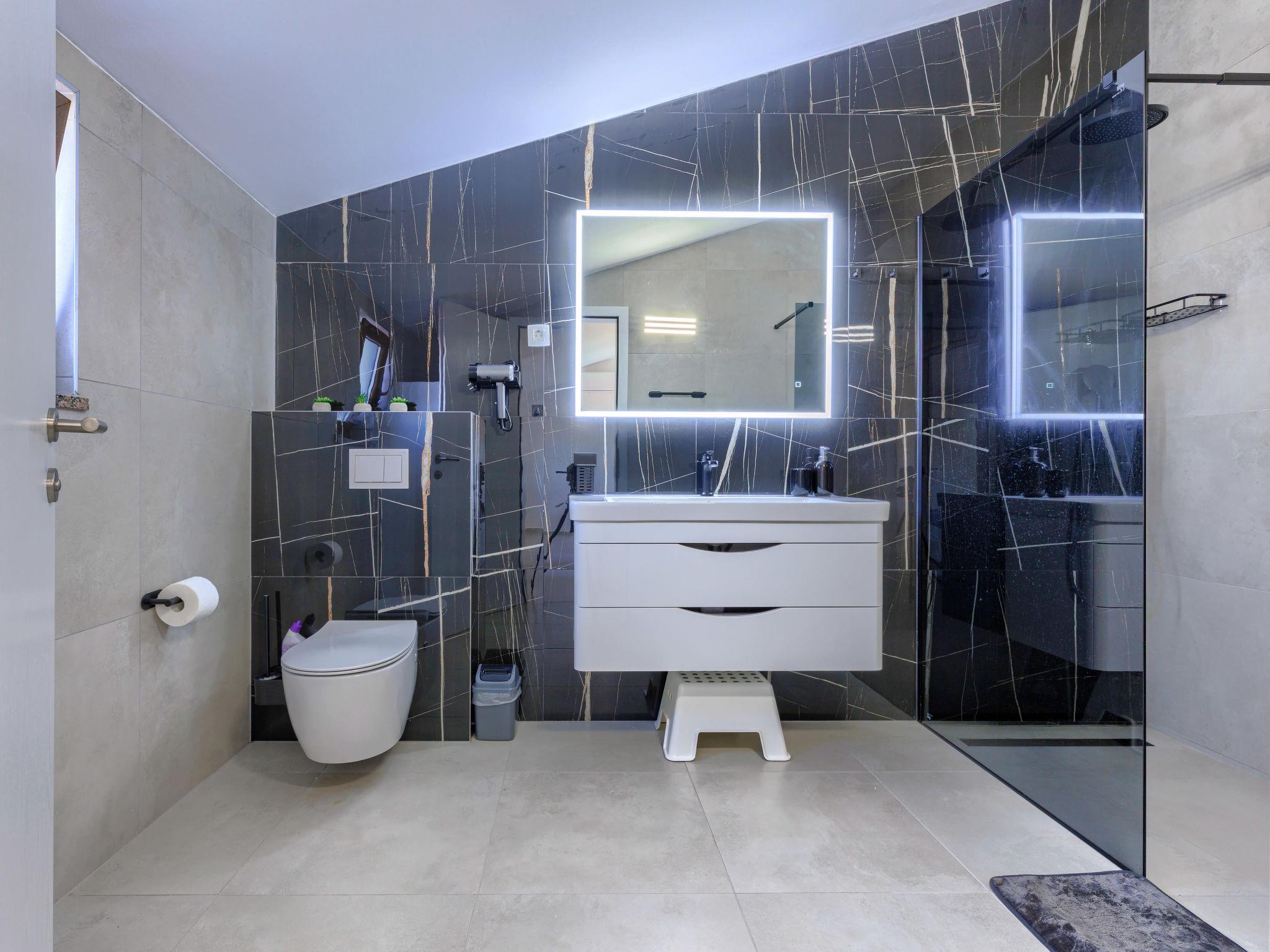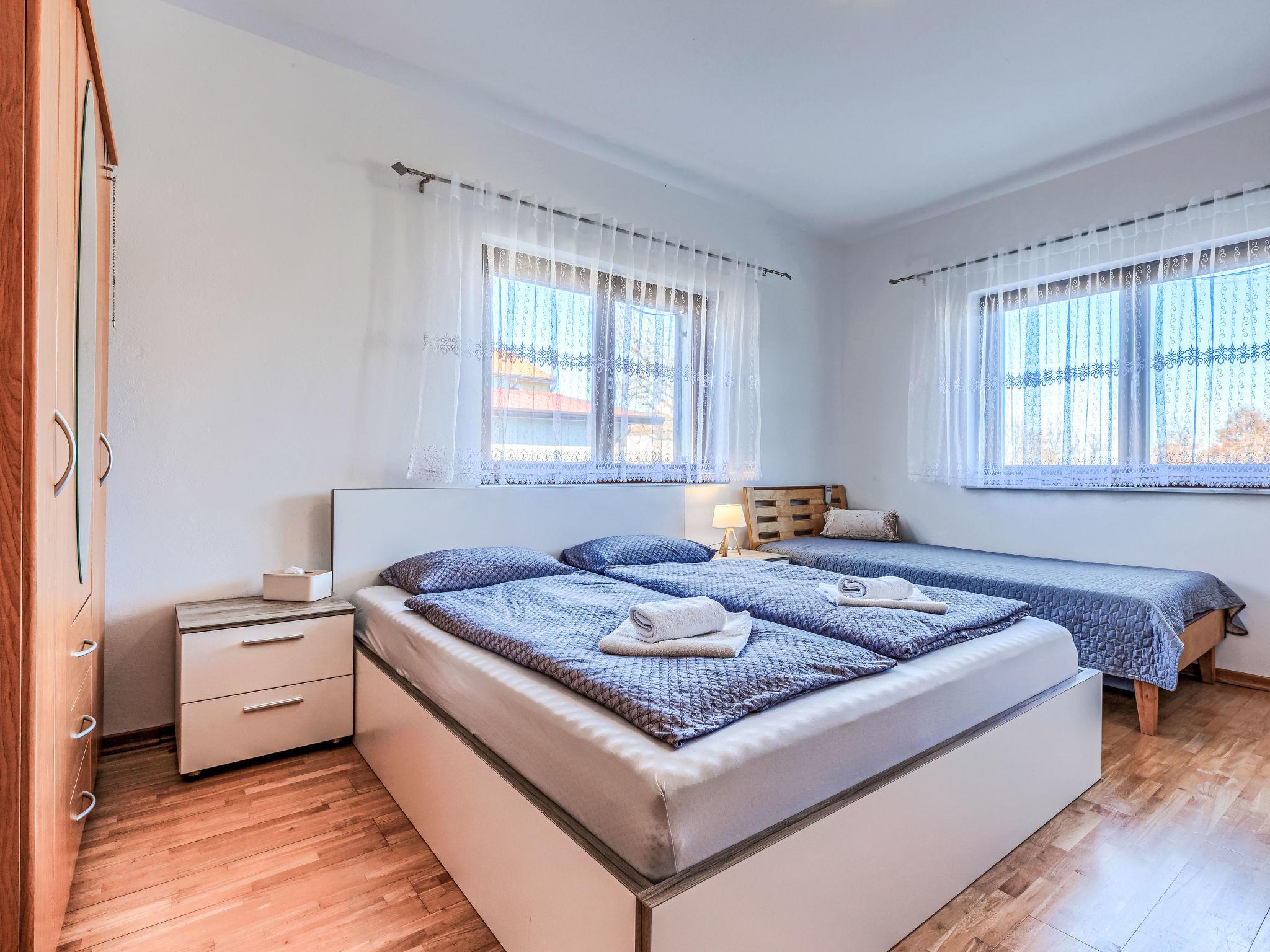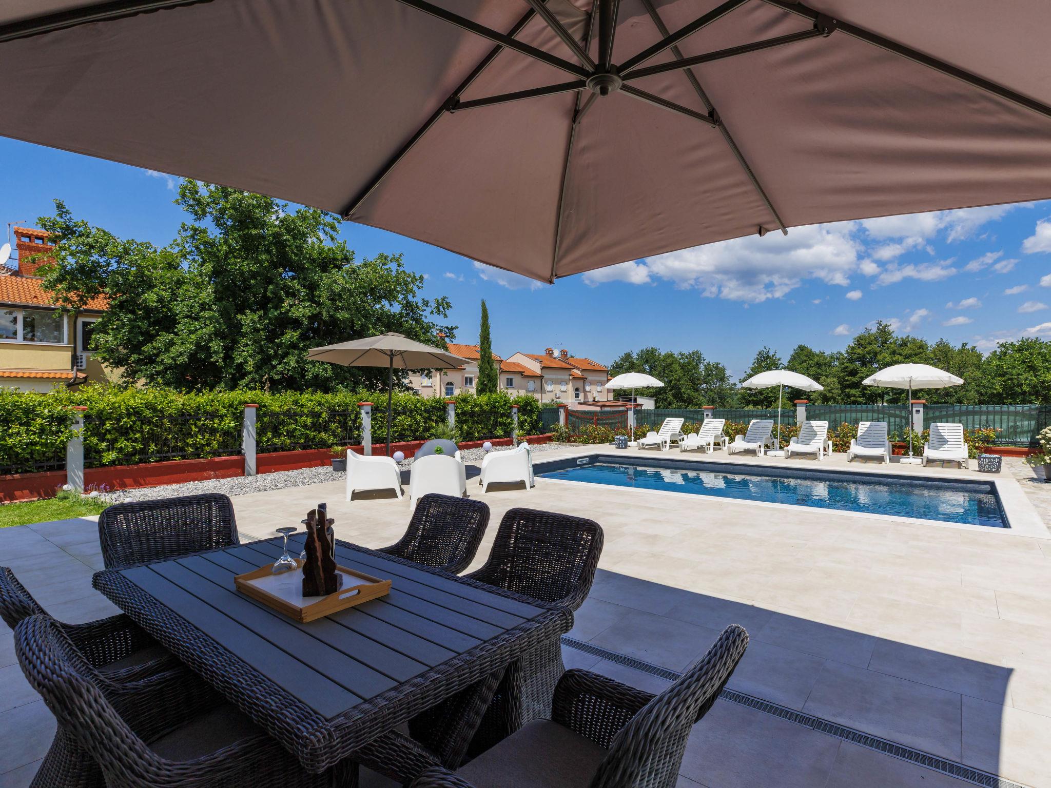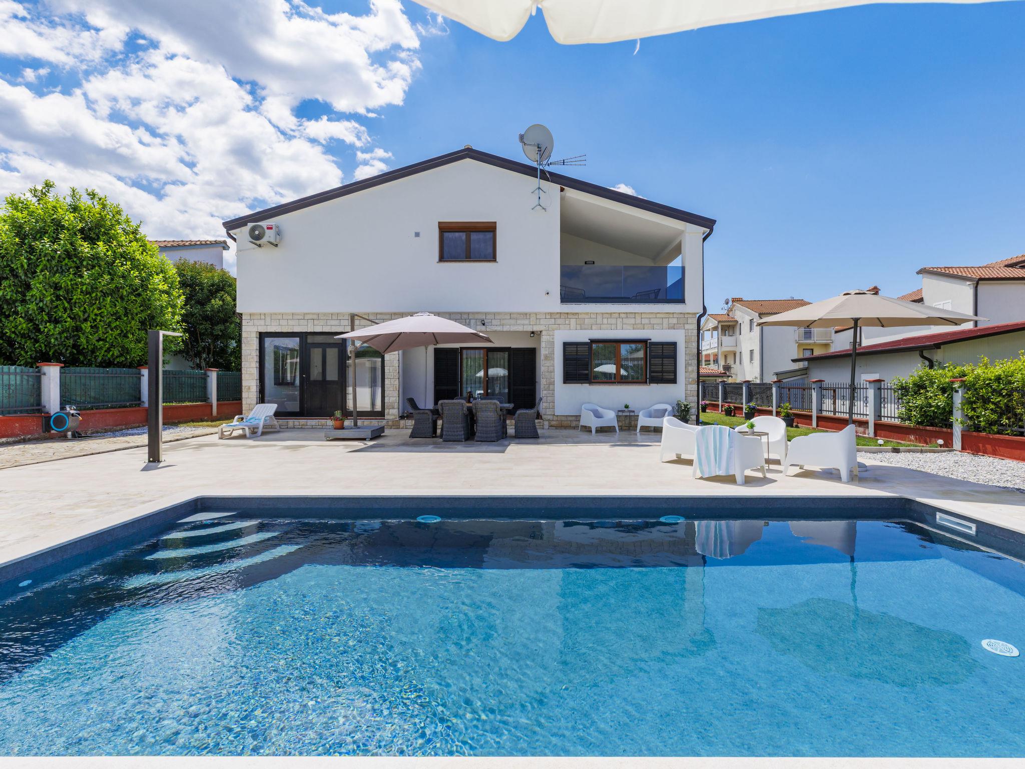Beautiful single-family house "Villa Rubil", 2 storeys in 2025. In the hamlet Cancini 3 km from the centre of Porec, in a sunny position, 2.5 km from the sea, 2.5 km from the beach, in a cul-de-sac. Private: property 1'000 m2 (fenced), swimming pool angular (8 x 4 m, depth 145 cm, seasonal availability: 01.May. - 01.Nov.) with internal staircase. Outdoor shower, terrace, garden furniture. In the house: internet access, washing machine. Parking (for 2 cars) at the house on the premises. E-charging station. Shop 200 m, supermarket 2 km, restaurant 300 m, bus stop 850 m, sandy beach 2.5 km, rocky beach 2.5 km. Tennis 3 km, walking paths from the house, cycle lane 200 m. Nearby attractions: Aquapark 9 km. Please note: the owner lives on the same property. Video surveillance of the driveway and parking. The house consists of 2 apartments rented as one unit.