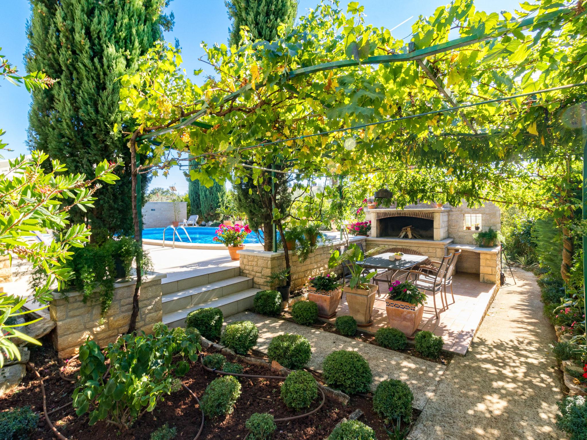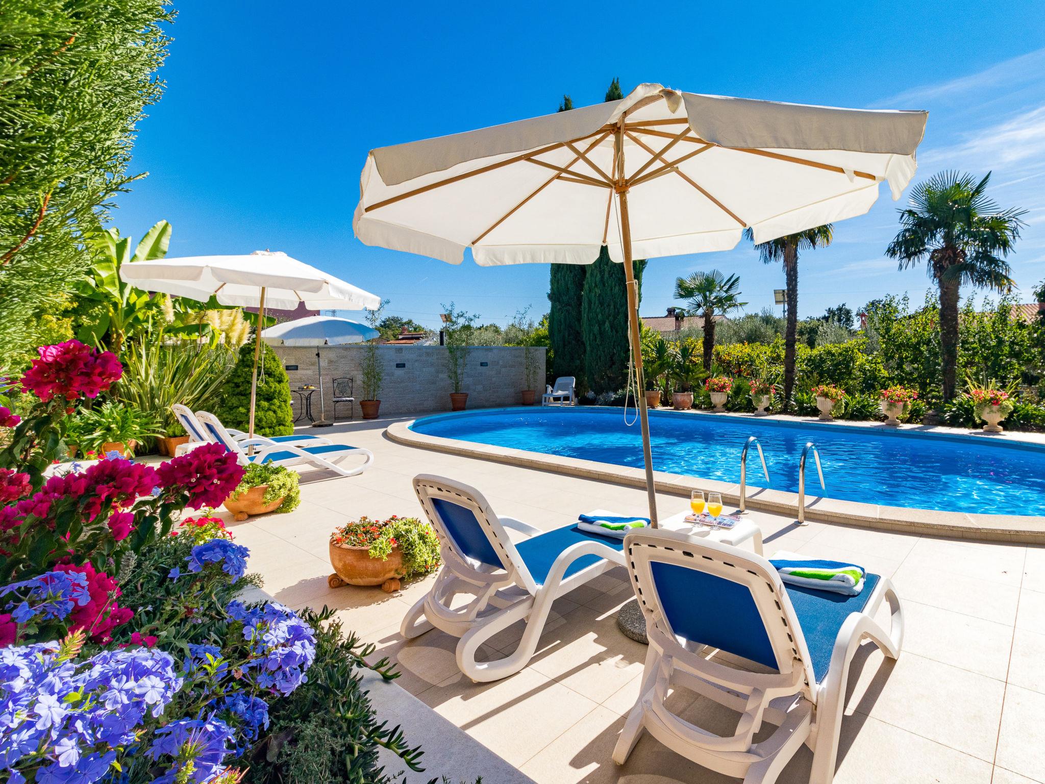 3-family house "Viktorija". 400 m from the centre of Nova Vas, 5 km from the centre of Porec, 5 km from the sea. For shared use: property 1'200 m2 (fenced) with plants and trees, swimming pool (11 x 5 m, depth 150 cm, seasonal availability: 01.May. - 01.Oct.). Unconventional pool shape. Outdoor shower, garden furniture, barbecue. In the house: internet access, washing machine (extra) (for shared use). Parking on the premises. Shop 400 m, supermarket 5 km, bus stop 8 km, railway station 32 km, rocky beach 5 km. Marina 5 km. Please note: the owner lives in the same residence.