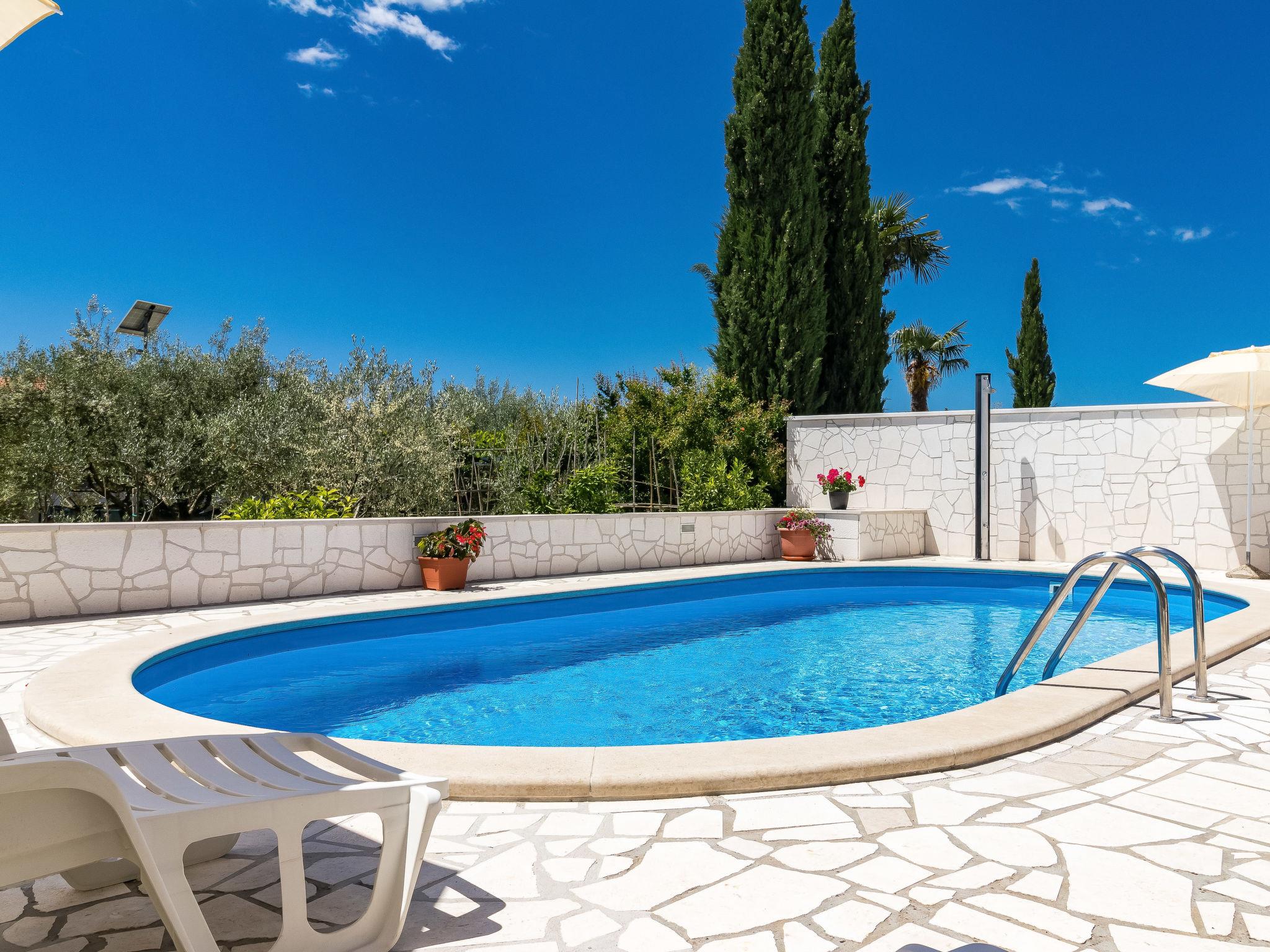 3-family house "Koštro". In the resort 400 m from the centre of Nova Vas, 5 km from the centre of Porec, in the residential district, 5 km from the sea. For shared use: property 1'200 m2, garden with lawn and trees, swimming pool (8 x 4 m, depth 150 cm, seasonal availability: 01.May. - 01.Oct. pool opening hours: 08:00-22:00). Outdoor shower, terrace, barbecue. In the house: internet access. Parking on the premises. Shop 400 m, supermarket 5 km, restaurant 500 m, bus stop 8 km, railway station 32 km, rocky beach 5 km. Marina 5 km. Please note: the owner lives on the same property. Airfield 50 km from the property.