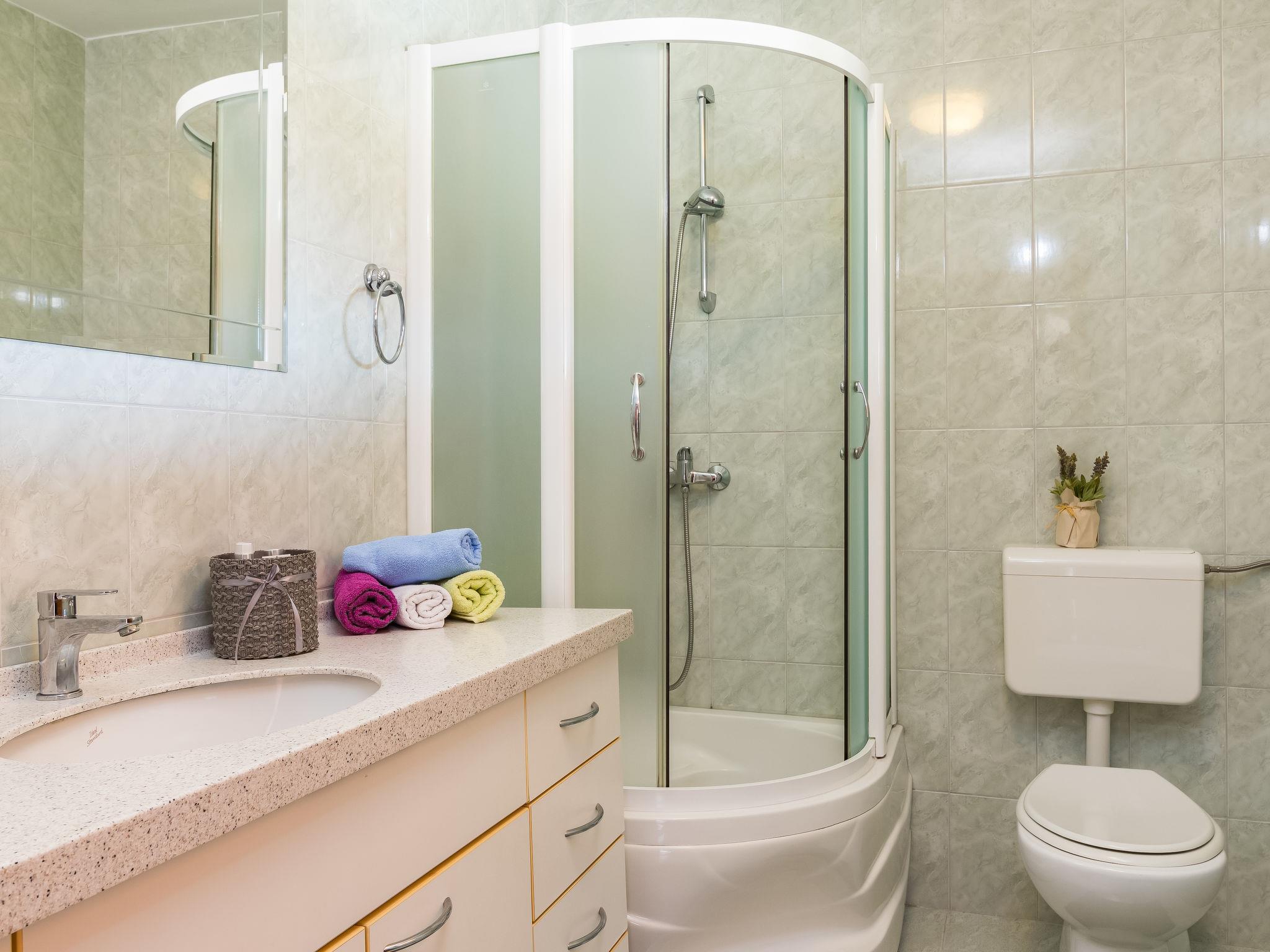 "Koštro", 3-room apartment 58 m2 on 1st floor. Living/dining room with satellite TV and air conditioning. Exit to the balcony. 1 room with 2 beds. 1 room with 1 double bed. Open kitchen (4 hot plates, toaster, kettle, microwave, electric coffee machine). Shower/WC. 2 balconies 7 m2. Balcony furniture. Facilities: Internet (WiFi, free). Please note: non-smoking house. 2163-11-03-09-5