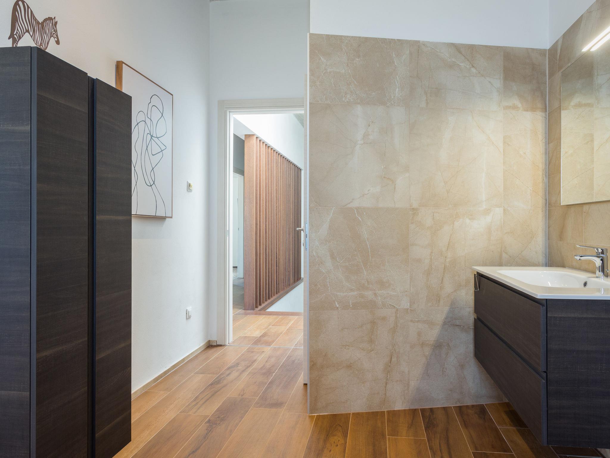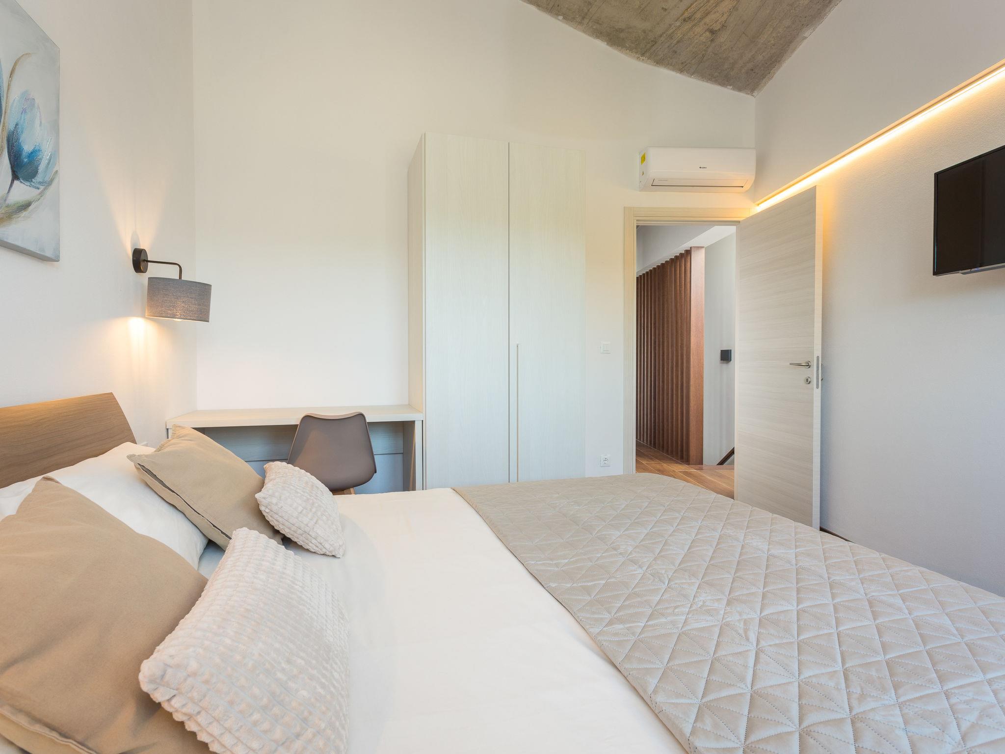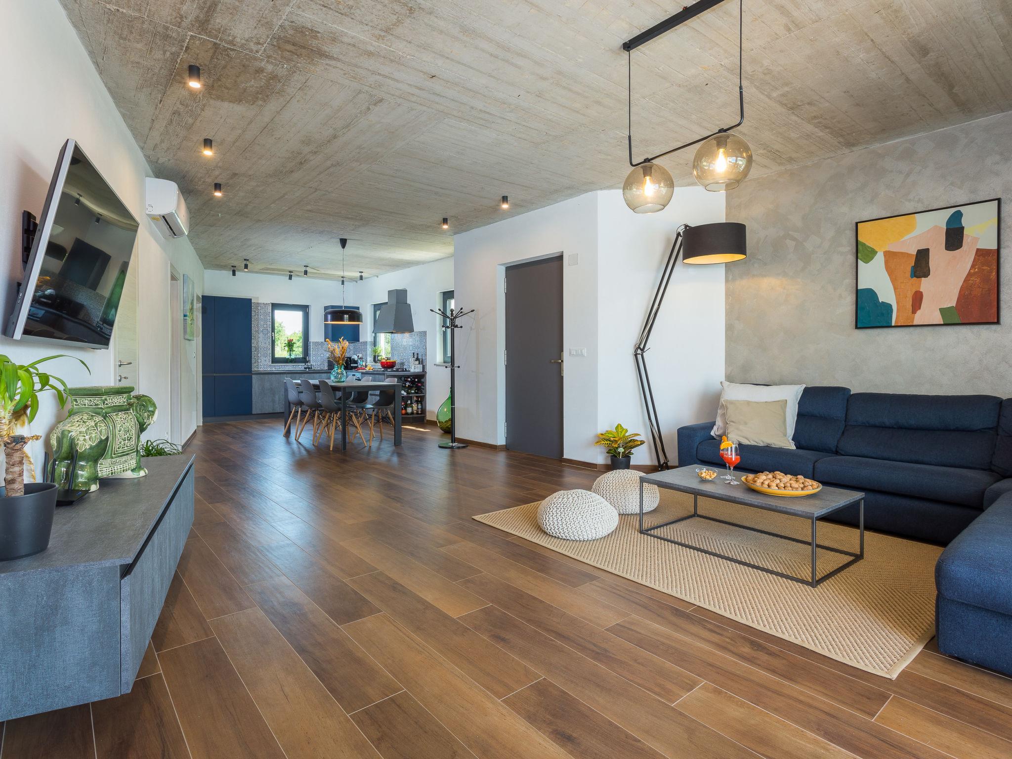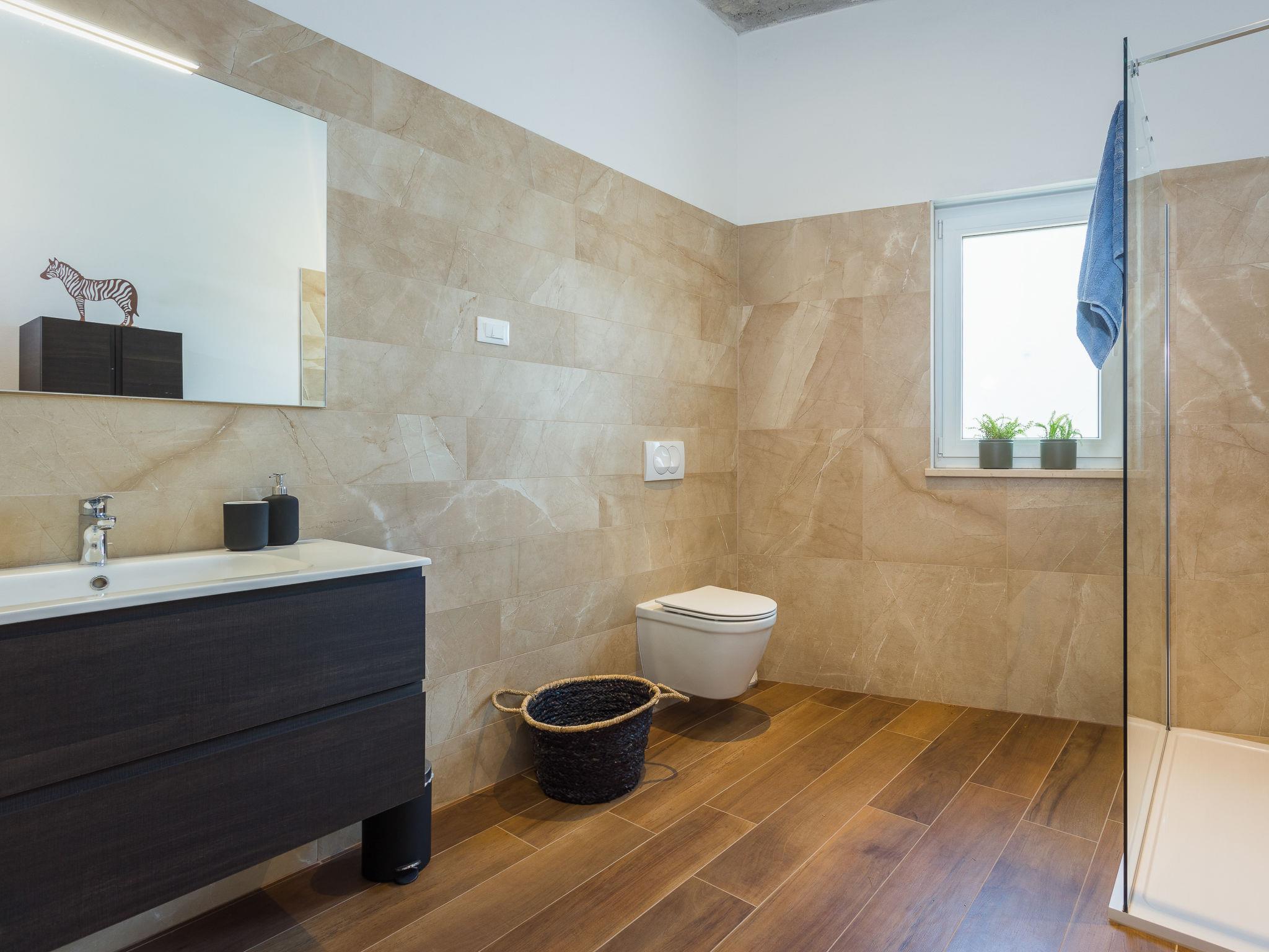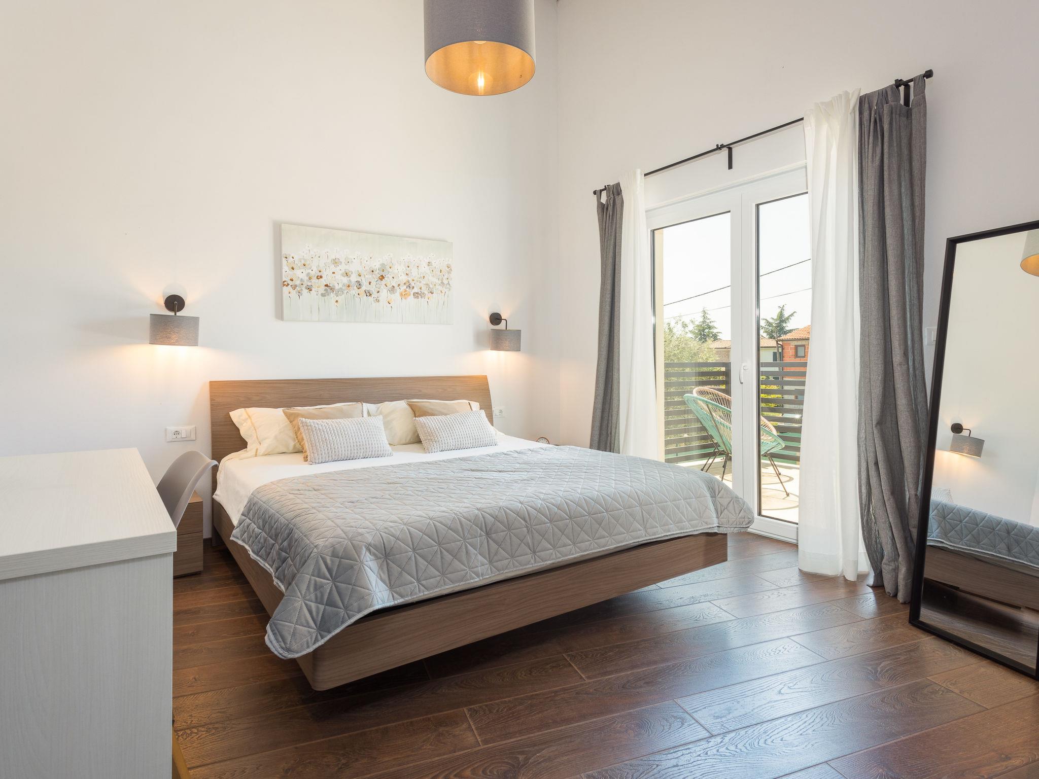 Semi-detached house "Villa Leonardo", 2 storeys, built in 2019. In the hamlet Vežnaveri 4 km from the centre of Porec, 2 km from the centre of Nova Vas, 50 km from the centre of Pula, 4 km from the sea, 4 km from the beach. Private: property 250 m2 (fenced) with lawn, swimming pool (6 x 4 m, depth 150 cm, seasonal availability: 01.May. - 01.Oct.). Outdoor shower, terrace, pool maintenance by the owner/gardener. In the house: internet access, washing machine. Parking (for 2 cars) on the premises. Shop 2 km, supermarket 3 km, bus stop 6 km, pebble beach 4 km, rocky beach 4 km.