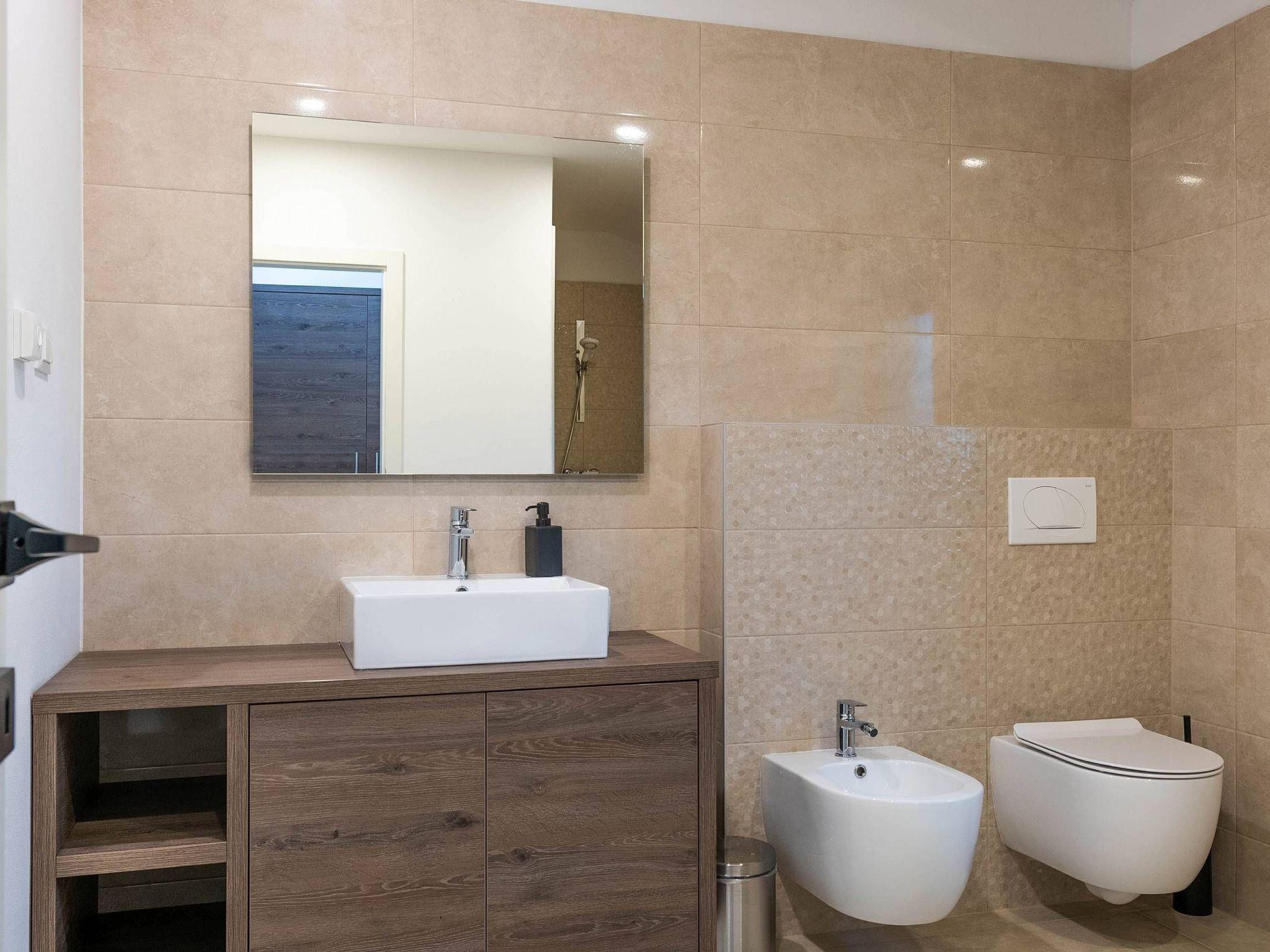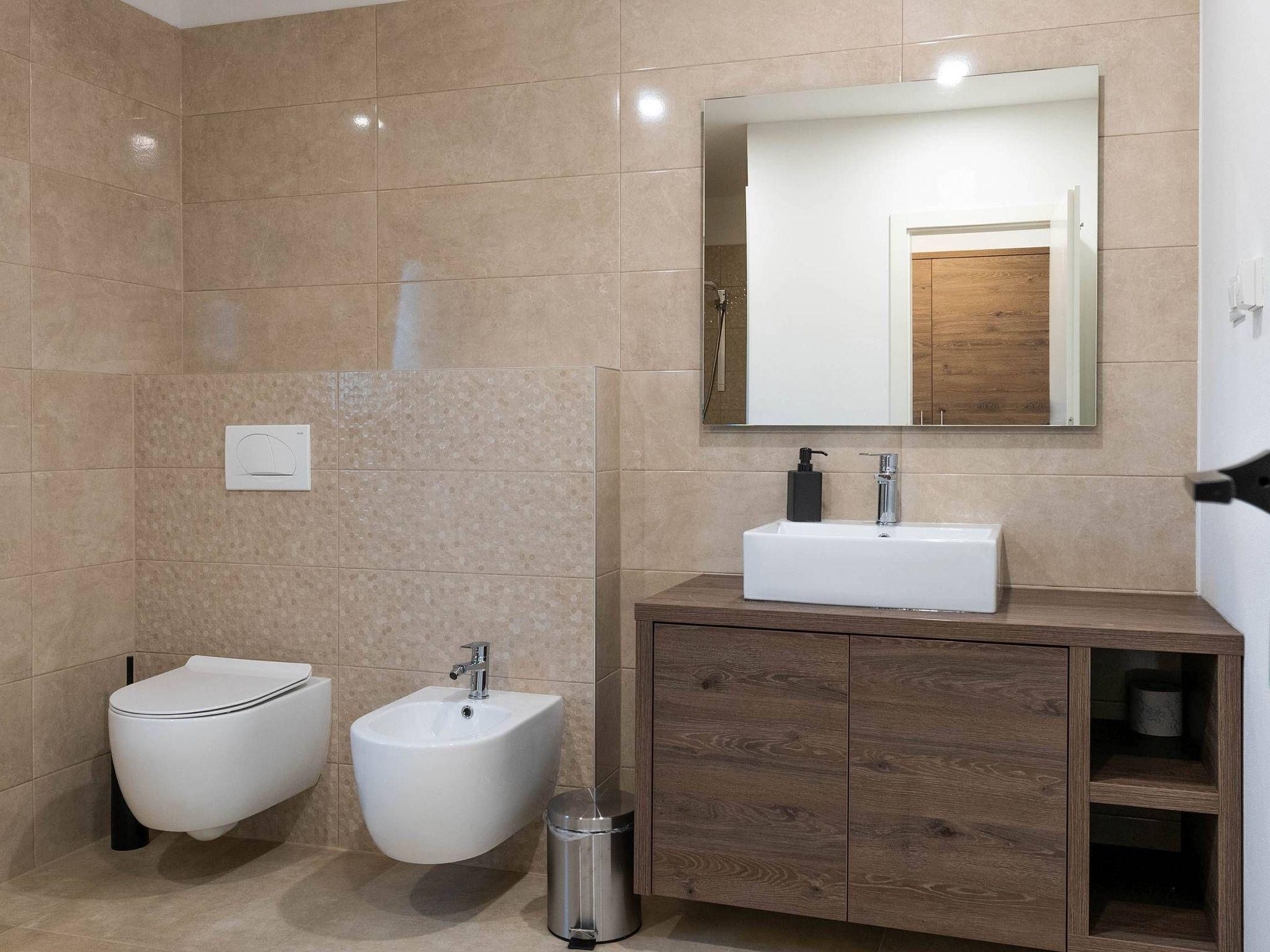The house has 192 m2 on two floors. It consists of 3 bedrooms, 3 private bathrooms, toilet, living room and kitchen.On the ground floor there is a living room with TV, a fully equipped kitchen with 8 seats and a toilet.One bedroom is on the ground floor and the other two are on the first floor. Each room has a TV, air conditioning and a private balcony with table and chairs.