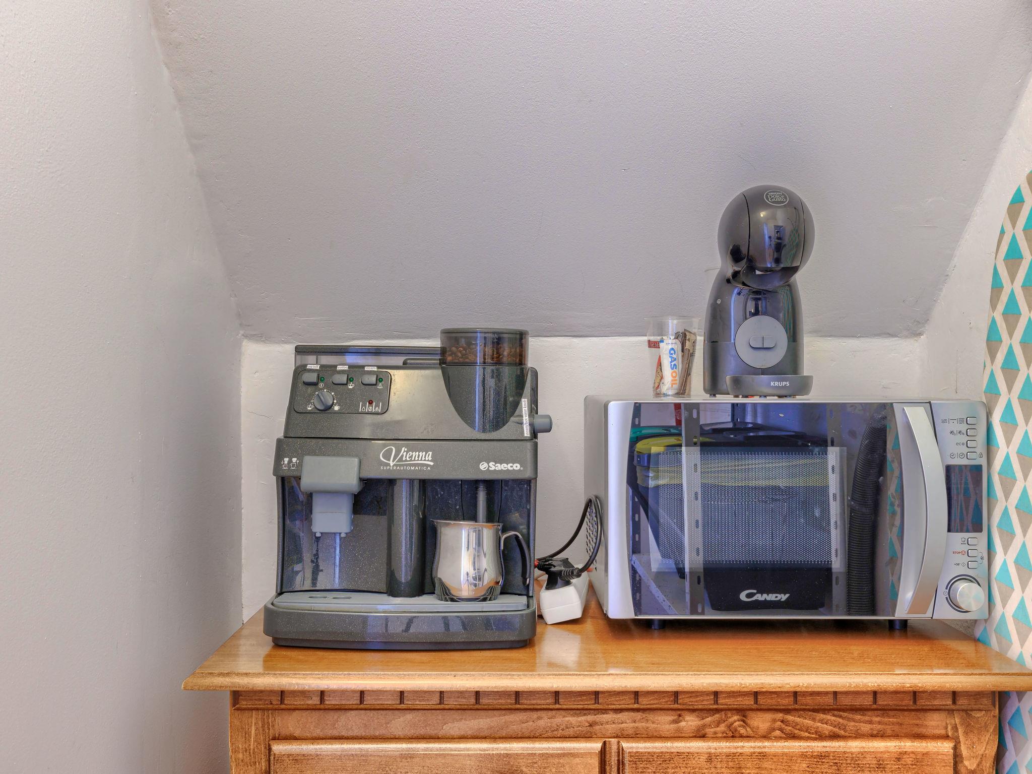 4-room house 120 m2 on 2 levels. Shower/WC. Upper floor: (exterior staircase) living/dining room with 1 double sofabed (150 cm), satellite TV and air conditioning. Exit to the terrace. 1 room with 1 french bed and air conditioning. 1 room with 2 beds, satellite TV and air conditioning. 1 room with 1 double bed, satellite TV and air conditioning. Open kitchen (oven, dishwasher, 4 ceramic glass hob hotplates, kettle, microwave, freezer, electric coffee machine). Bath/WC. Forced-air heating. Deck chairs. Facilities: iron, children's high chair, baby cot. Internet (WiFi, free). Please note: non-smoking house. Maximum 1 pet/ dog allowed. Access to the shower/WC on the ground floor only from the outside.