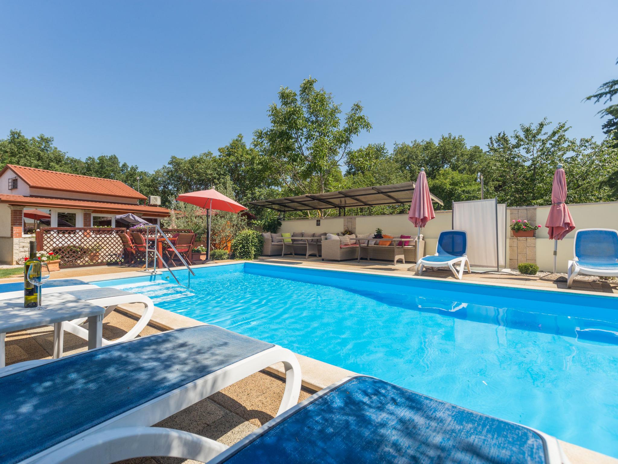 Apartment house "Nena". In the hamlet Kosinožici 2.5 km from the centre of Nova Vas, 5 km from the centre of Porec, 5 km from the sea. For shared use: property 1'000 m2 with lawn and trees, swimming pool (9 x 4 m, depth 140 cm, seasonal availability: 01.May. - 01.Oct.). Outdoor shower, terrace, garden furniture, barbecue (swing, sandbox), pool maintenance by the owner/gardener. In the house: internet access. Parking on the premises. Shop 2.5 km, supermarket 3.5 km, restaurant 2.5 km, bus stop 4.2 km, railway station 34 km, rocky beach 5 km. Marina 5 km. Please note: the owner lives in the same residence.