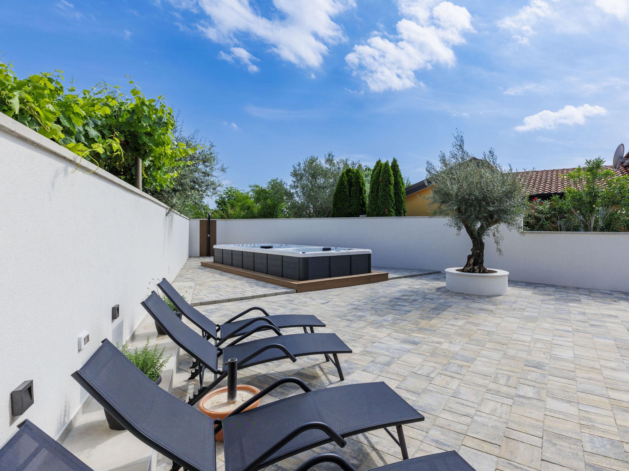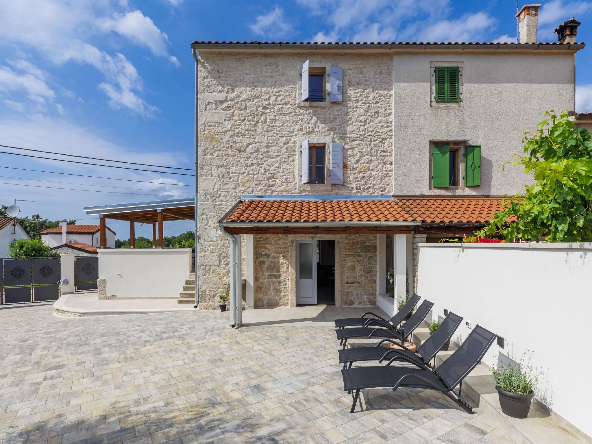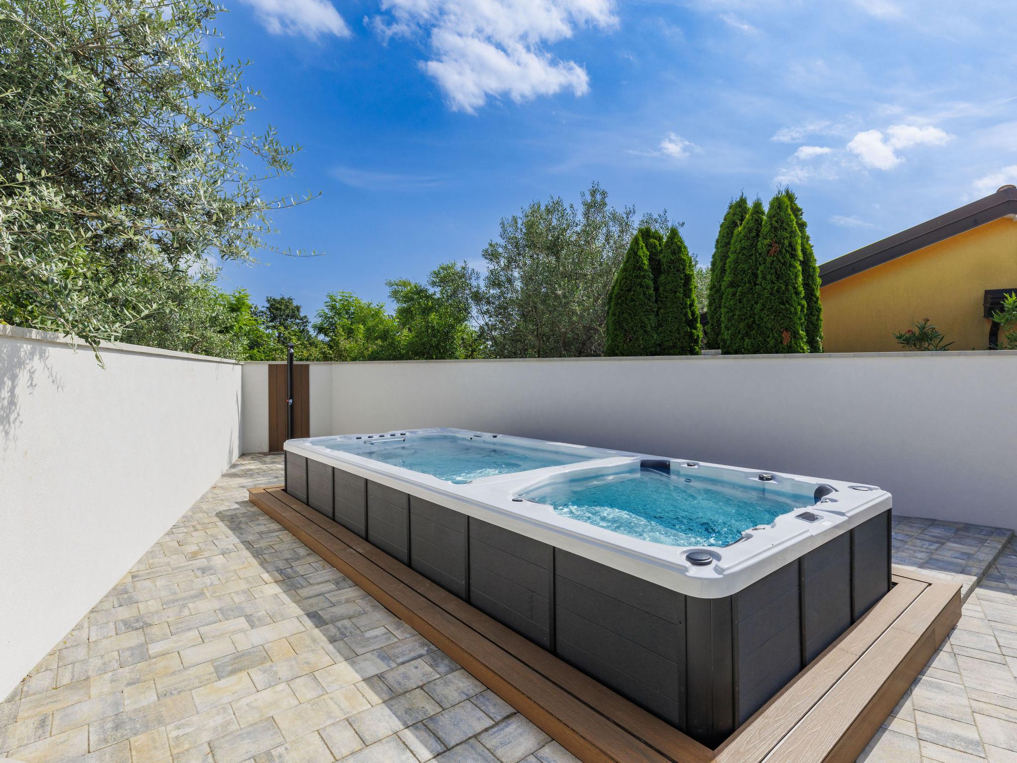 Beautiful semi-detached house "Villa Lucky". In the hamlet Bonaci 10 km from the centre of Porec, 10 km from the sea. Private: property 200 m2 (fenced), swimming pool (above ground) angular (6 x 2 m, depth 140 cm, seasonal availability: 01.May. - 01.Nov.). Outdoor shower, hot tub, terrace (16 m2), garden furniture, barbecue. In the house: internet access, washing machine. Parking (for 2 cars) at the house on the premises. Shop 3.5 km, restaurant 3 km, café 3.5 km, bus stop 500 m. Nearby attractions: Aquapark 13 km. The owner does not accept any youth groups. Please note: airfield 47 km from the property. Swimming pool with counterflow.
