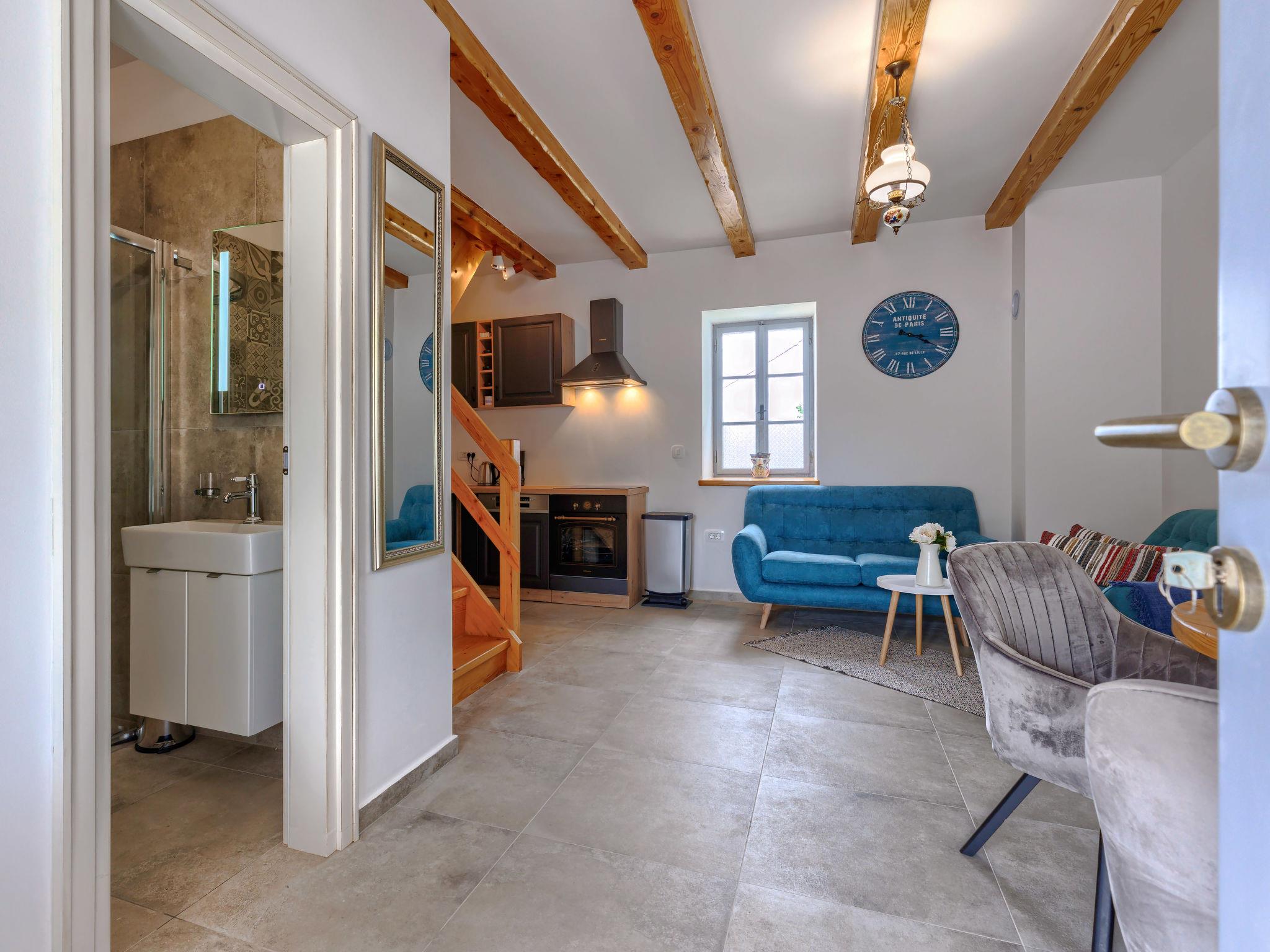 3-room semi-detached house 105 m2 on 3 levels. Renovated in 2024, rustic and tasteful furnishings: living/dining room. Open kitchen (oven, dishwasher, 4 ceramic glass hob hotplates, toaster, kettle, microwave, freezer, electric coffee machine). Shower/WC. Upper floor: (spiral staircase), 1 room with 1 french bed (140 cm, length 200 cm), satellite TV. 2nd upper floor: (spiral staircase), 1 room with 1 french bed (180 cm, length 200 cm), shower/WC, satellite TV and air conditioning. Floor heating. Deck chairs. Facilities: iron, hair dryer. Internet (WiFi, free). 1 small pet/ dog allowed.