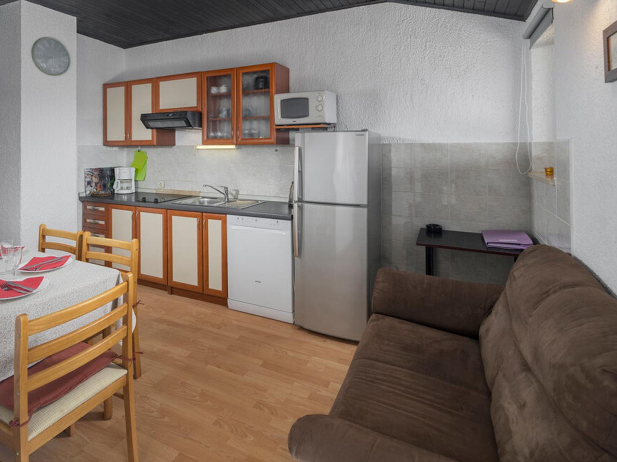 "Leko", 3-room apartment 55 m2 on 1st floor. Comfortable furnishings: living/dining room with satellite TV. Exit to the balcony. Entrance hall with air conditioning. 1 room with 1 double bed (2 x 80 cm, length 200 cm). 1 room with 1 bed (80 cm, length 200 cm). Open kitchen (dishwasher, 2 ceramic glass hob hotplates, microwave, freezer, electric coffee machine). Shower/bidet/WC. Air-conditioning (extra). Balcony 17 m2. Balcony furniture. Facilities: Internet (WiFi, extra). Please note: non-smoking house. Private entrance.