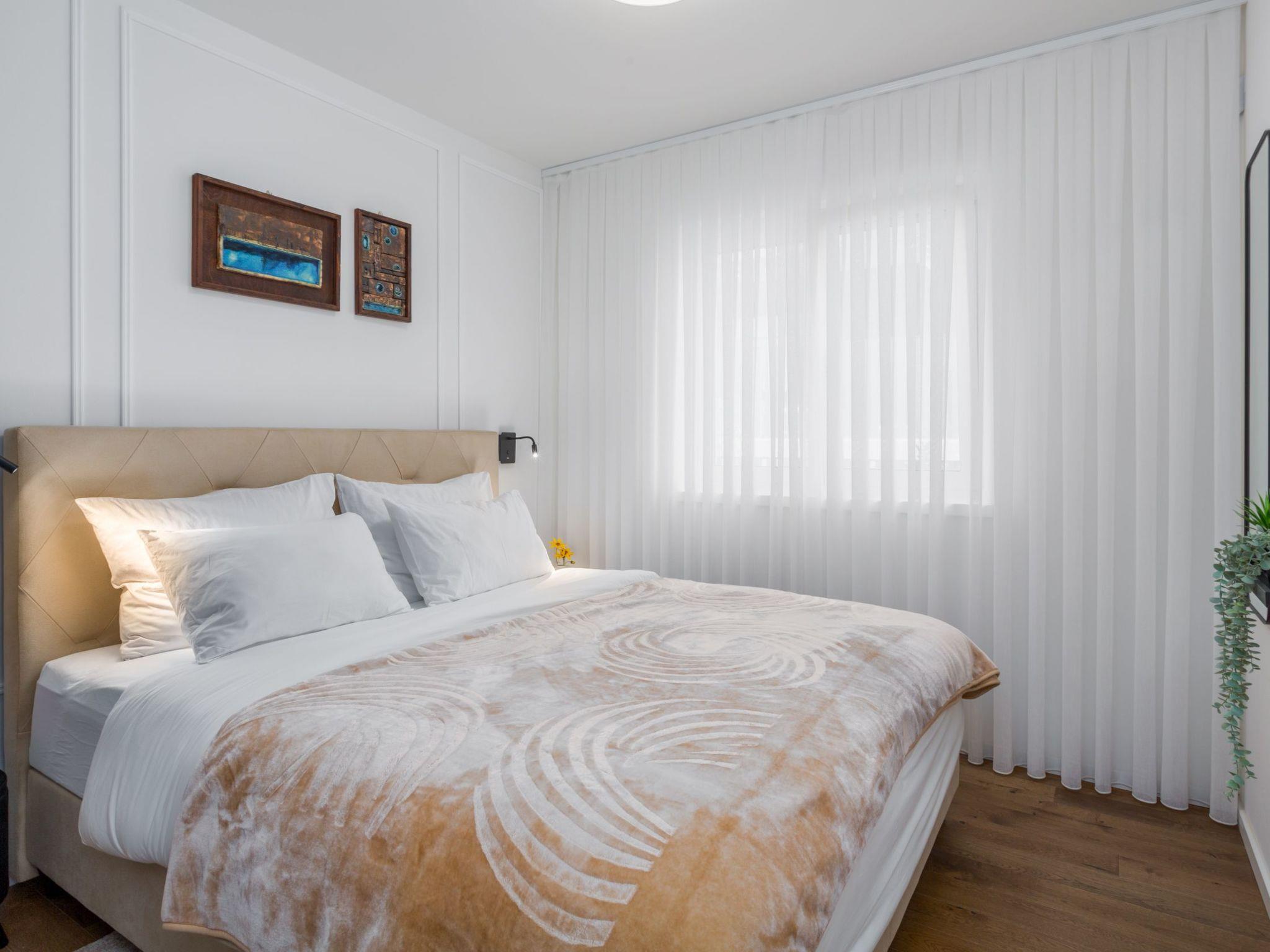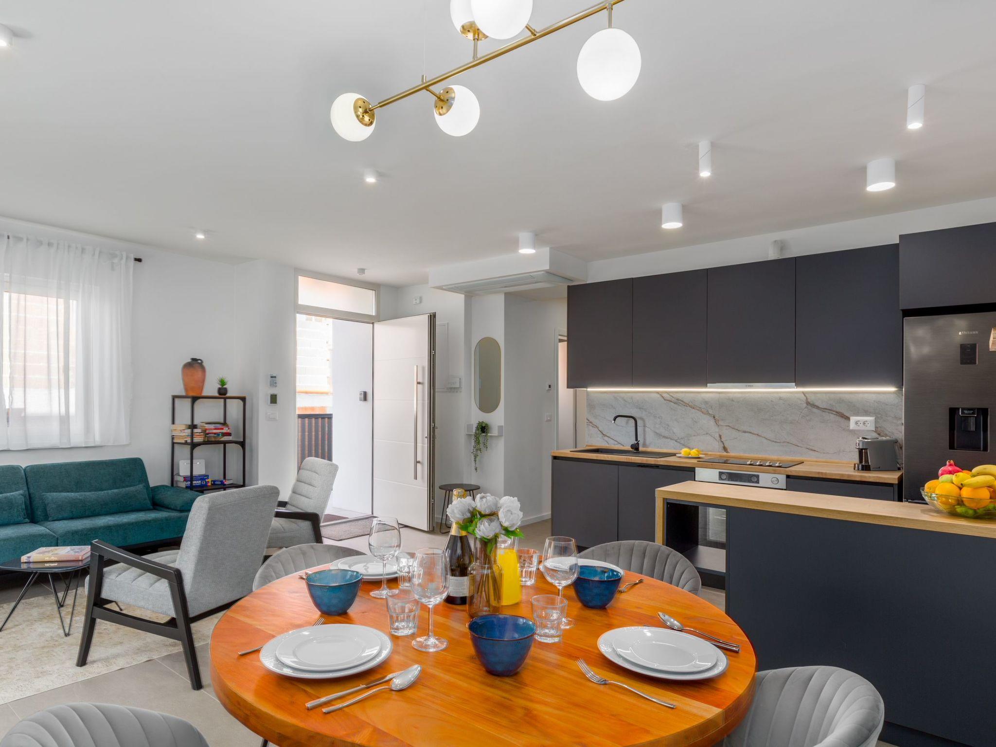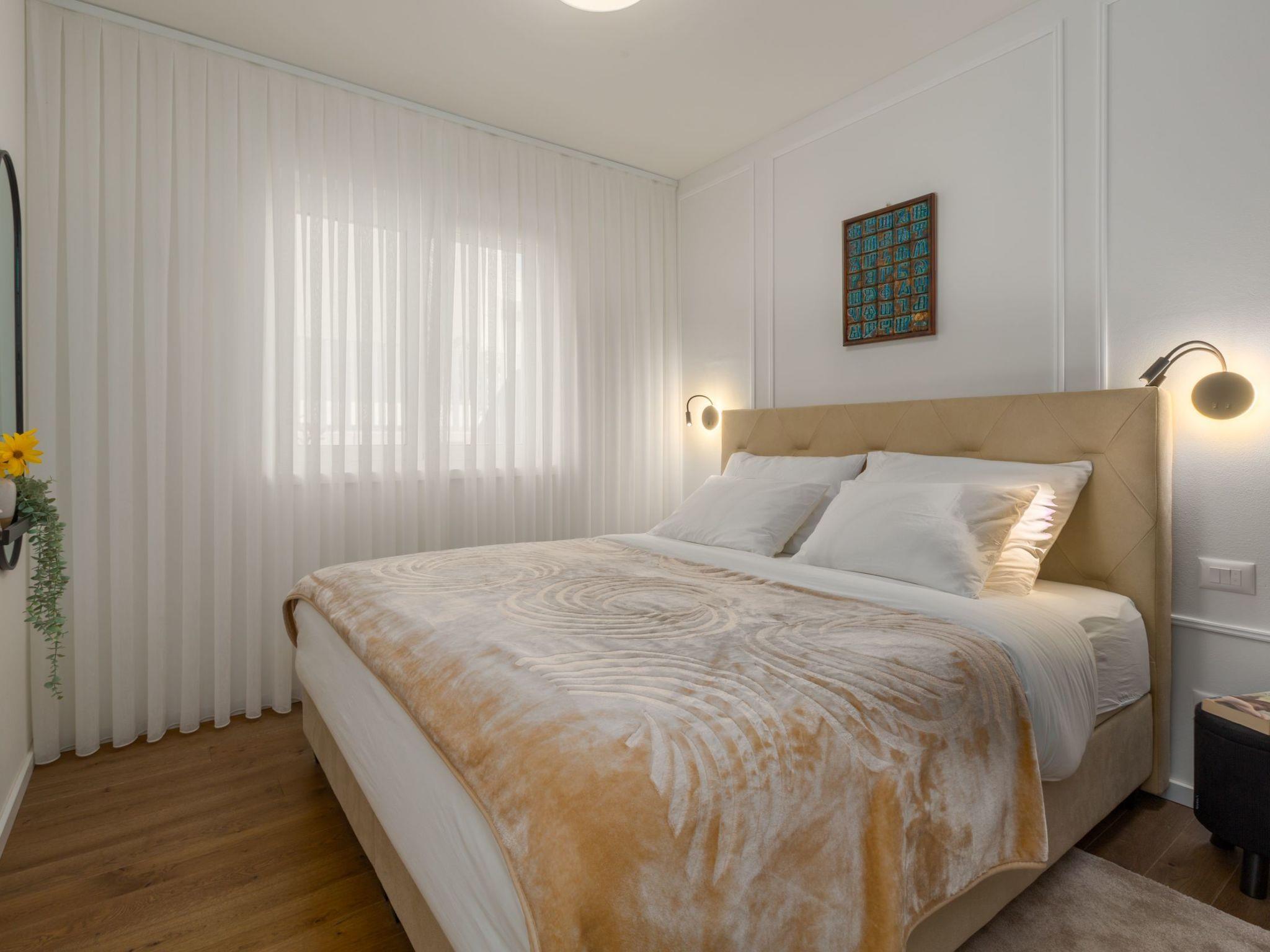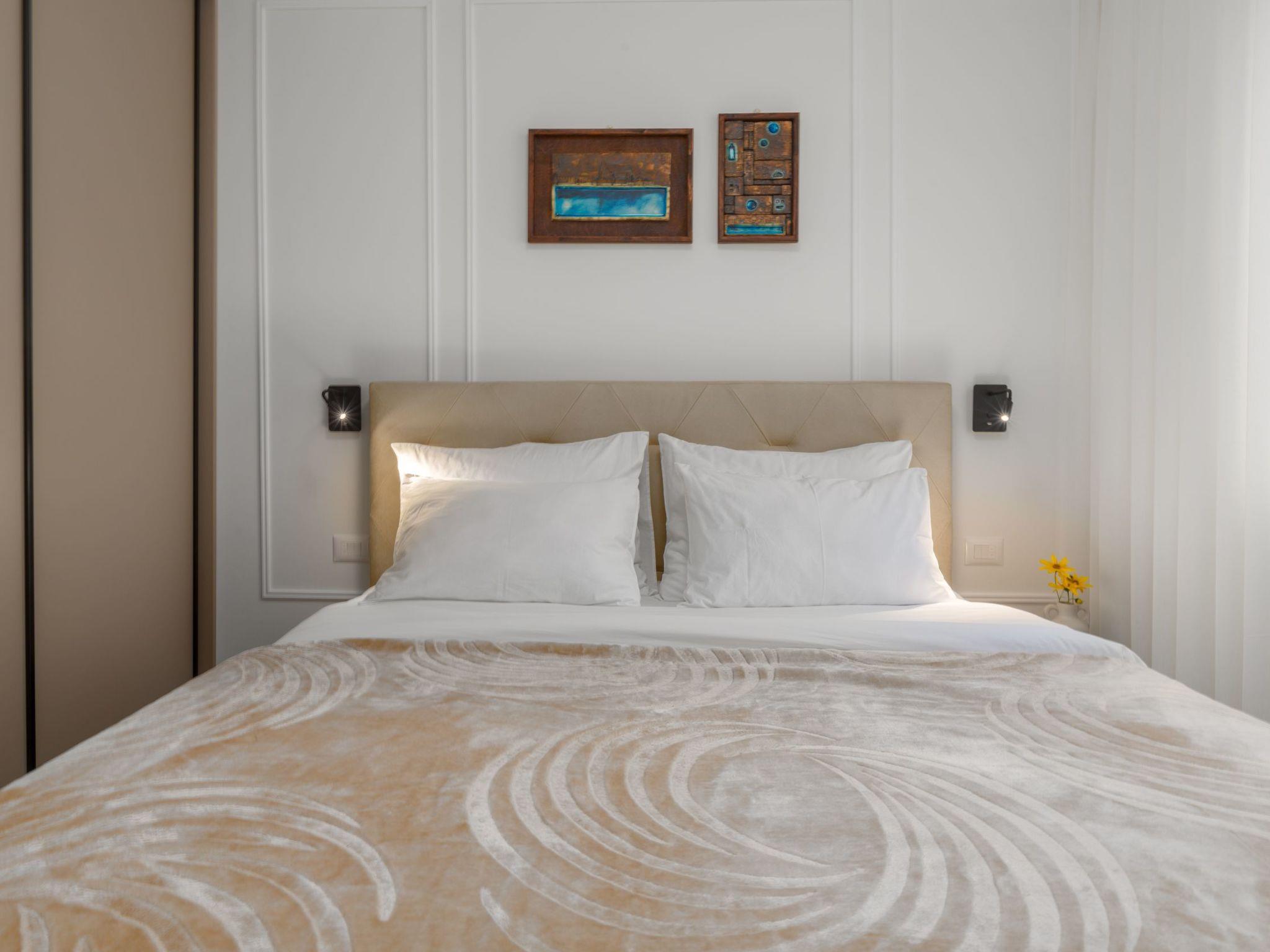 Inside, the flat boasts a functional and inviting room layout that leaves nothing to be desired. Two comfortable double bedrooms guarantee restful nights and, like the rest of the flat, are air-conditioned to ensure a pleasant coolness even on warm summer nights. In addition, two modern bathrooms with showers offer all the comfort you could wish for during your stay. The facilities include practical amenities such as Wi-Fi, mosquito nets on all windows and a washing machine for your sole use, making your stay even more pleasant.