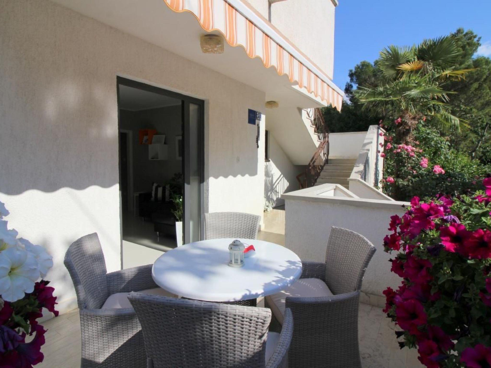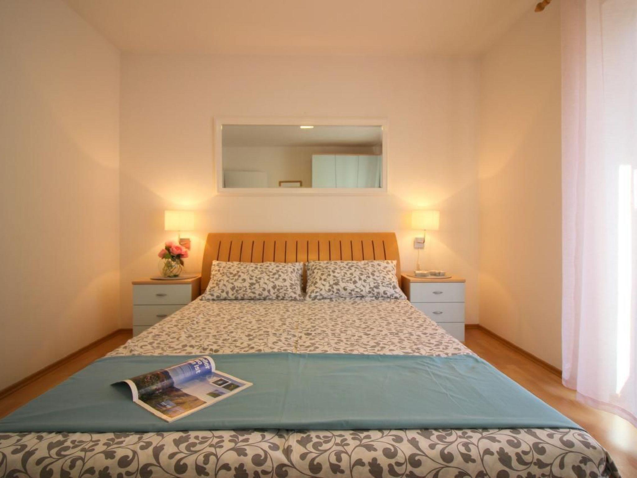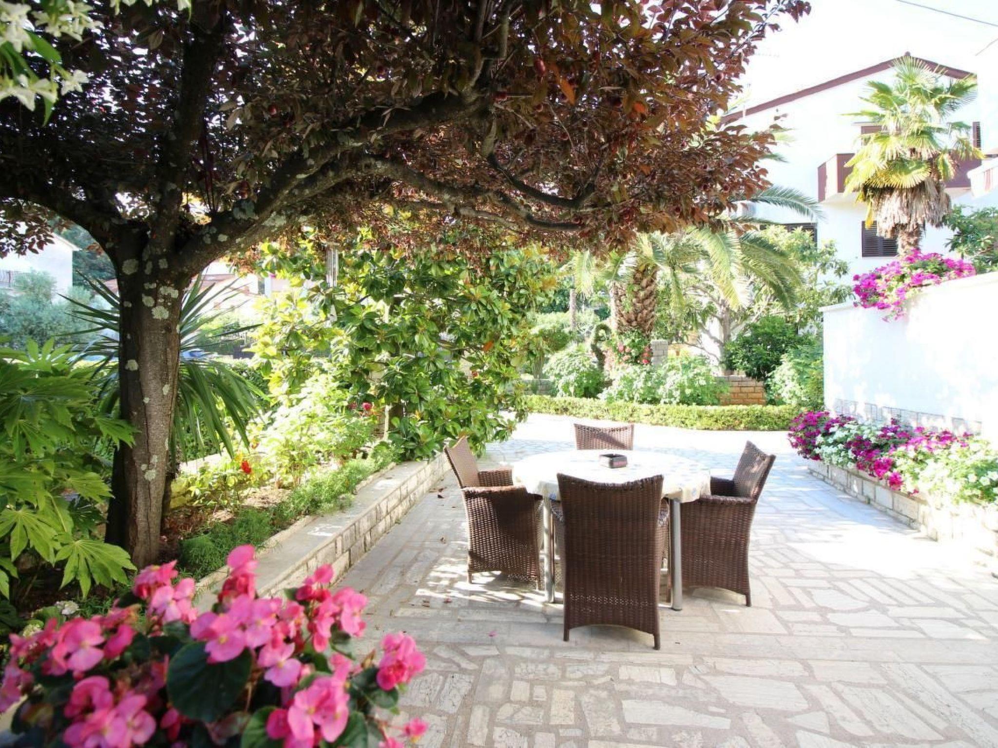 The flat Sabina for 4 persons is located on the ground floor of the house and consists of a living room with fully equipped kitchen and access to a covered terrace with garden furniture, bedroom with double bed and balcony, a bedroom with two beds and bathroom with shower/WC. Air conditioning and WLAN are available free of charge.