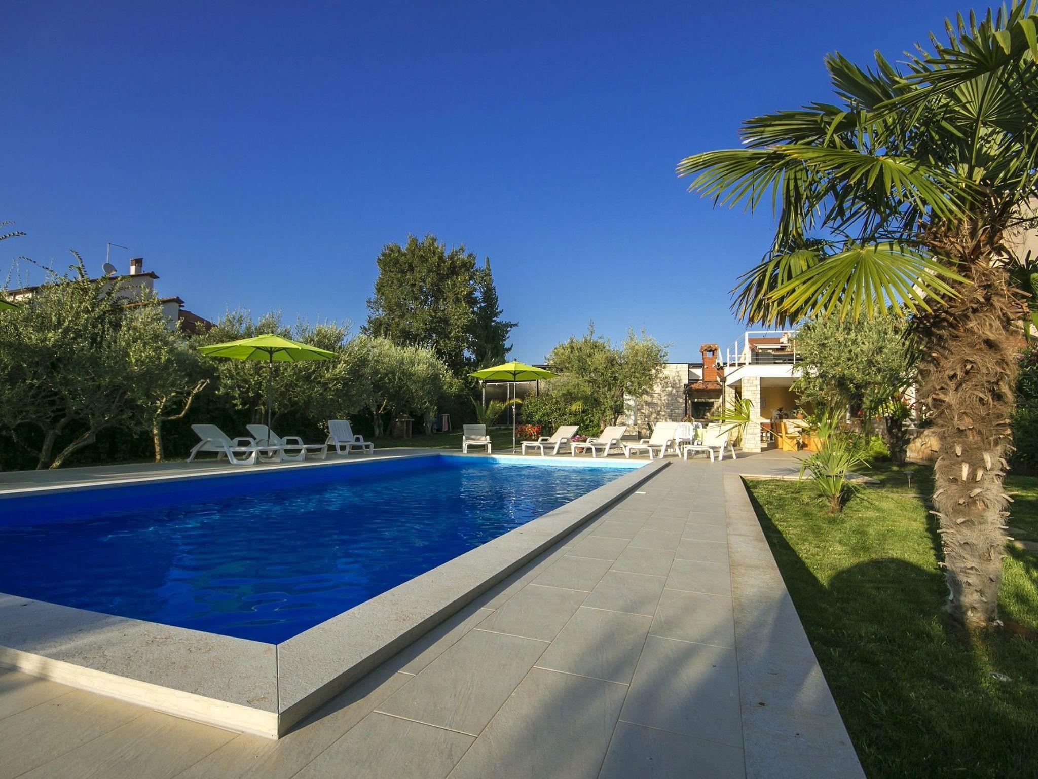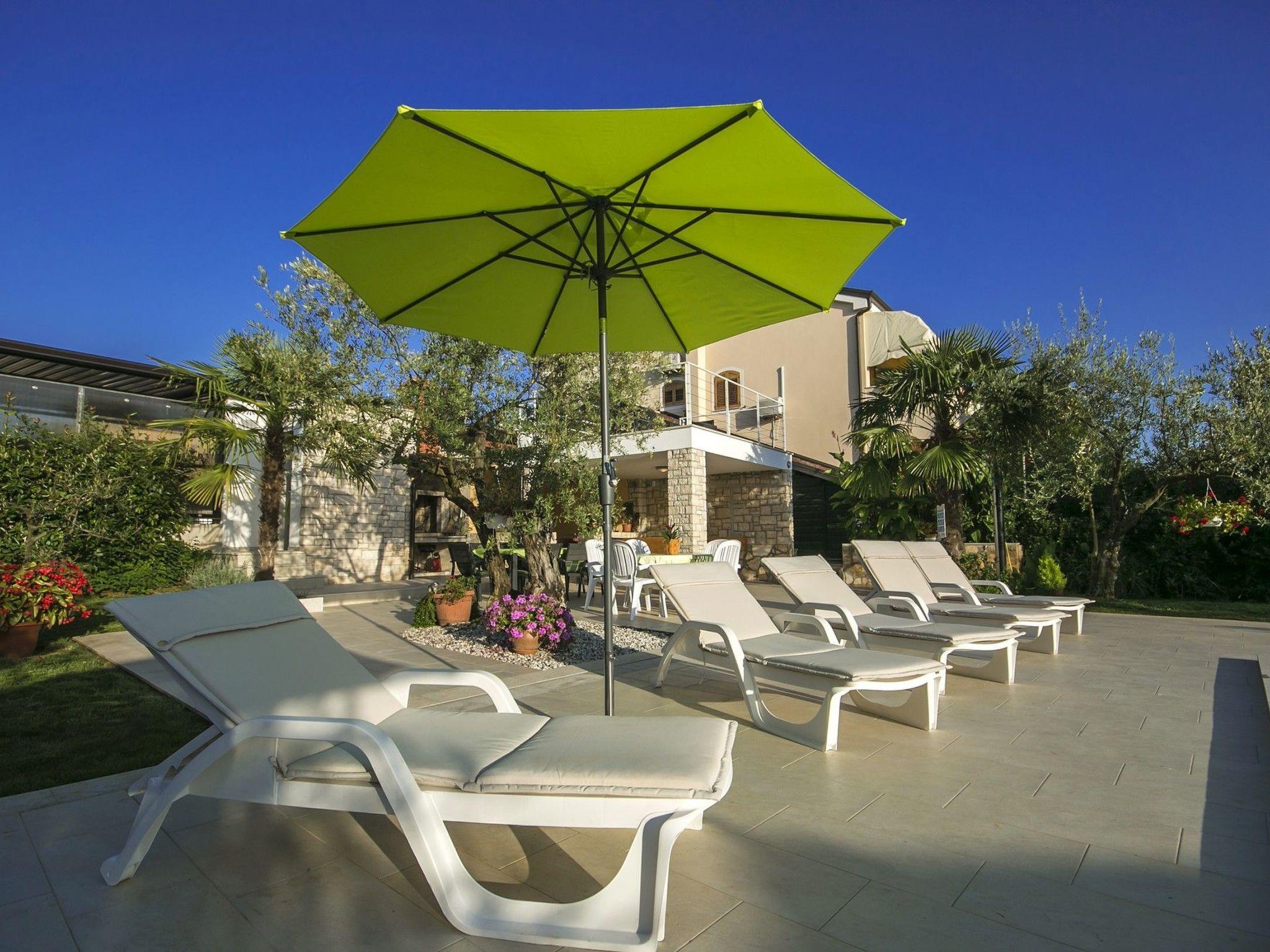The house has a total of 4 holiday flats with a common plot of 1000 m2 where guests have an open 50m2 pool with sun loungers and parasols, a barbecue with covered terrace and large table with benches for outdoor dining and well-kept garden for common use.