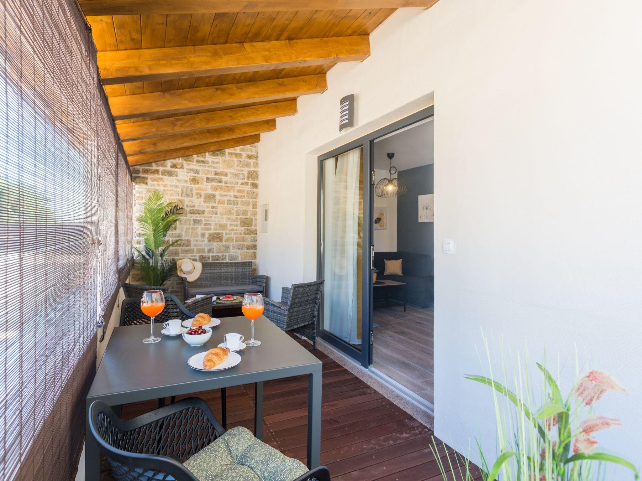 Premium Residence Radovan is located in Spadici, a district of Porec, only 250 metres from the beach and 1500 metres from the old town. The house offers a total of five holiday flats, 4 of which were completely renovated and modernly furnished in 2022. In the garden there is a shared covered terrace with dining table and barbecue fireplace for outdoor dining. On the ground floor of the house there is a common living room with a small kitchenette and seating area, toilet, washing machine and tumble dryer.