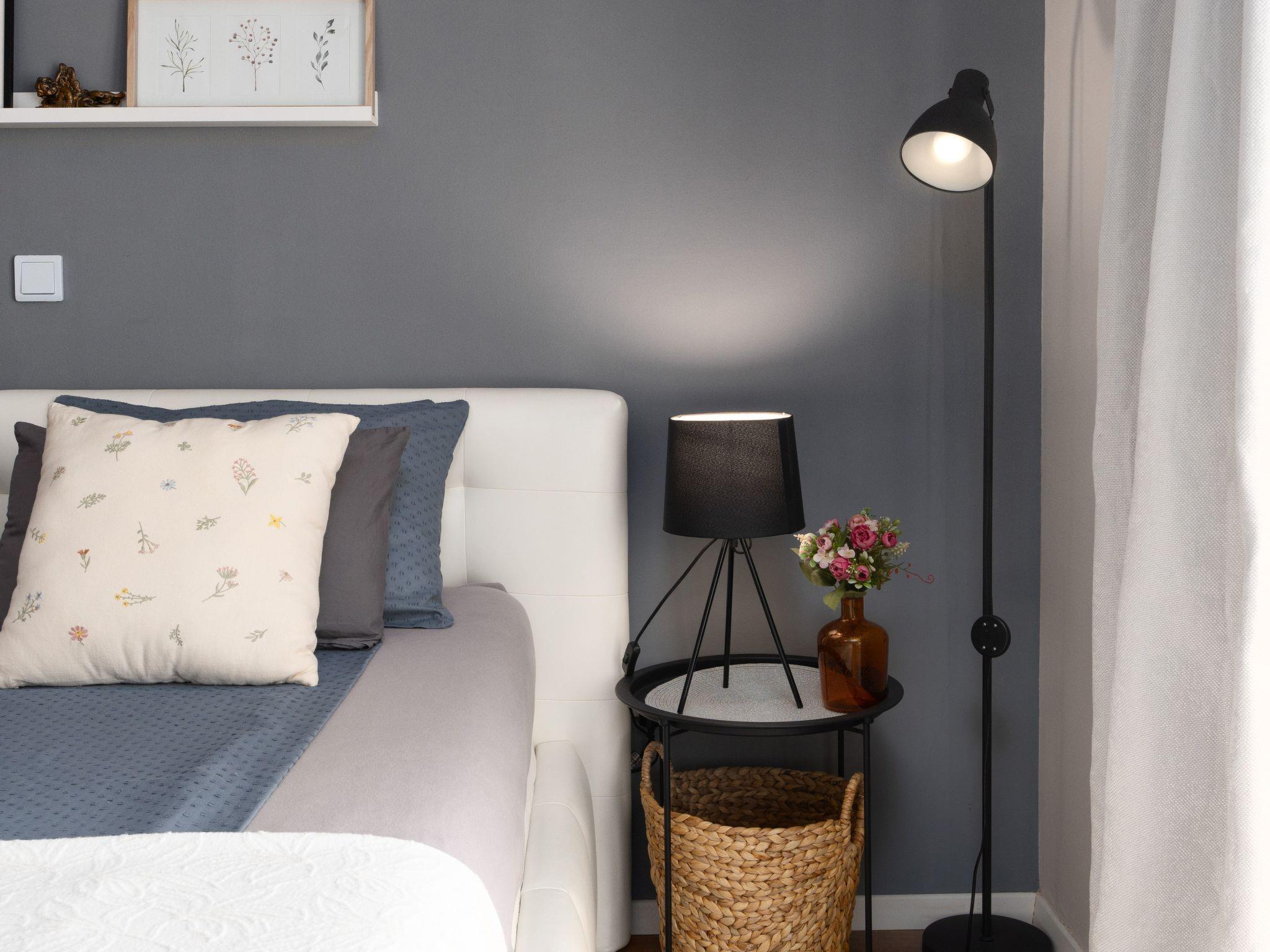 On the first floor there are two bedrooms, one of them air-conditioned with a double bed and access to a balcony with sofa and seating set, and one with a French bed, as well as a bathroom with shower/WC in the hallway.