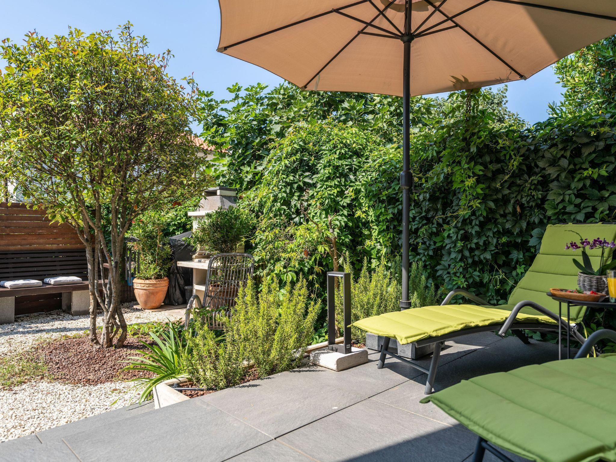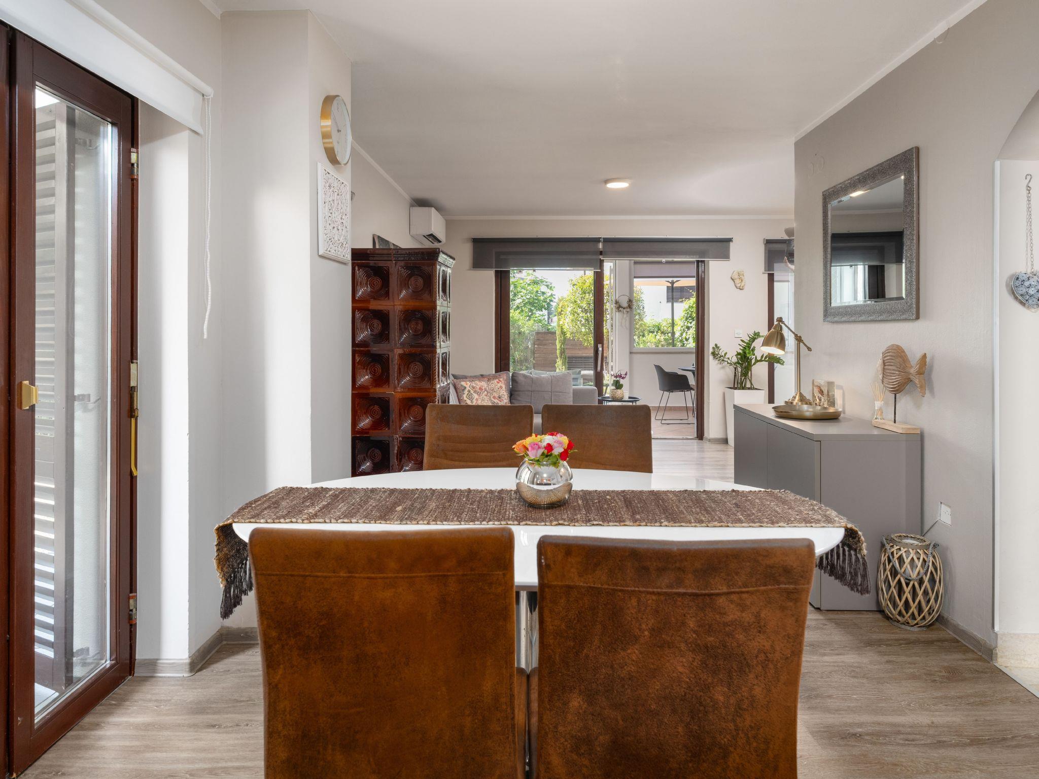 On the ground floor of the house there is a fully equipped kitchen, a dining room and a spacious air-conditioned living room with access to a terrace with seating and a garden, which also has seating, a barbecue, a bench and sun loungers, as well as a bathroom with a shower/WC.