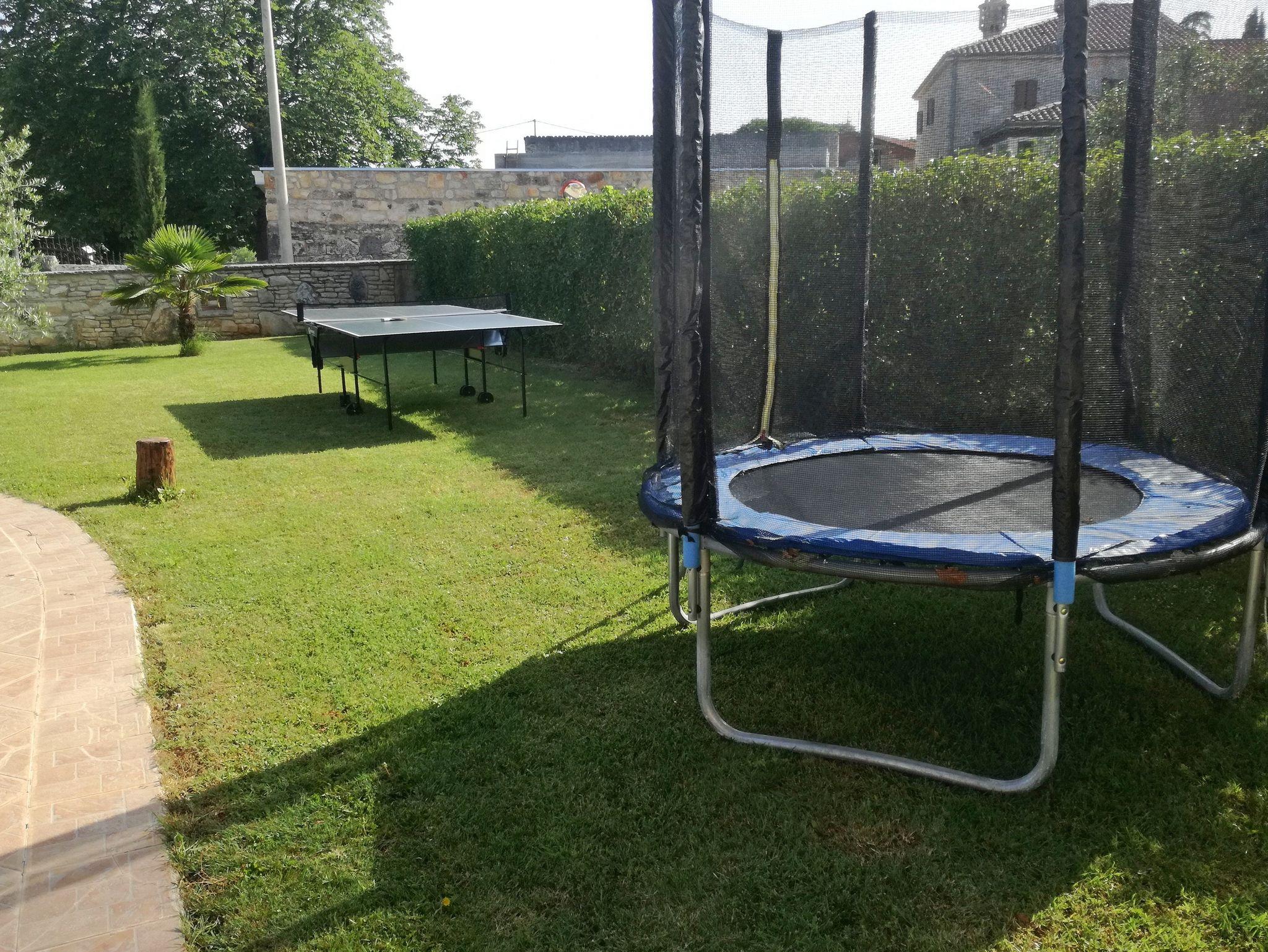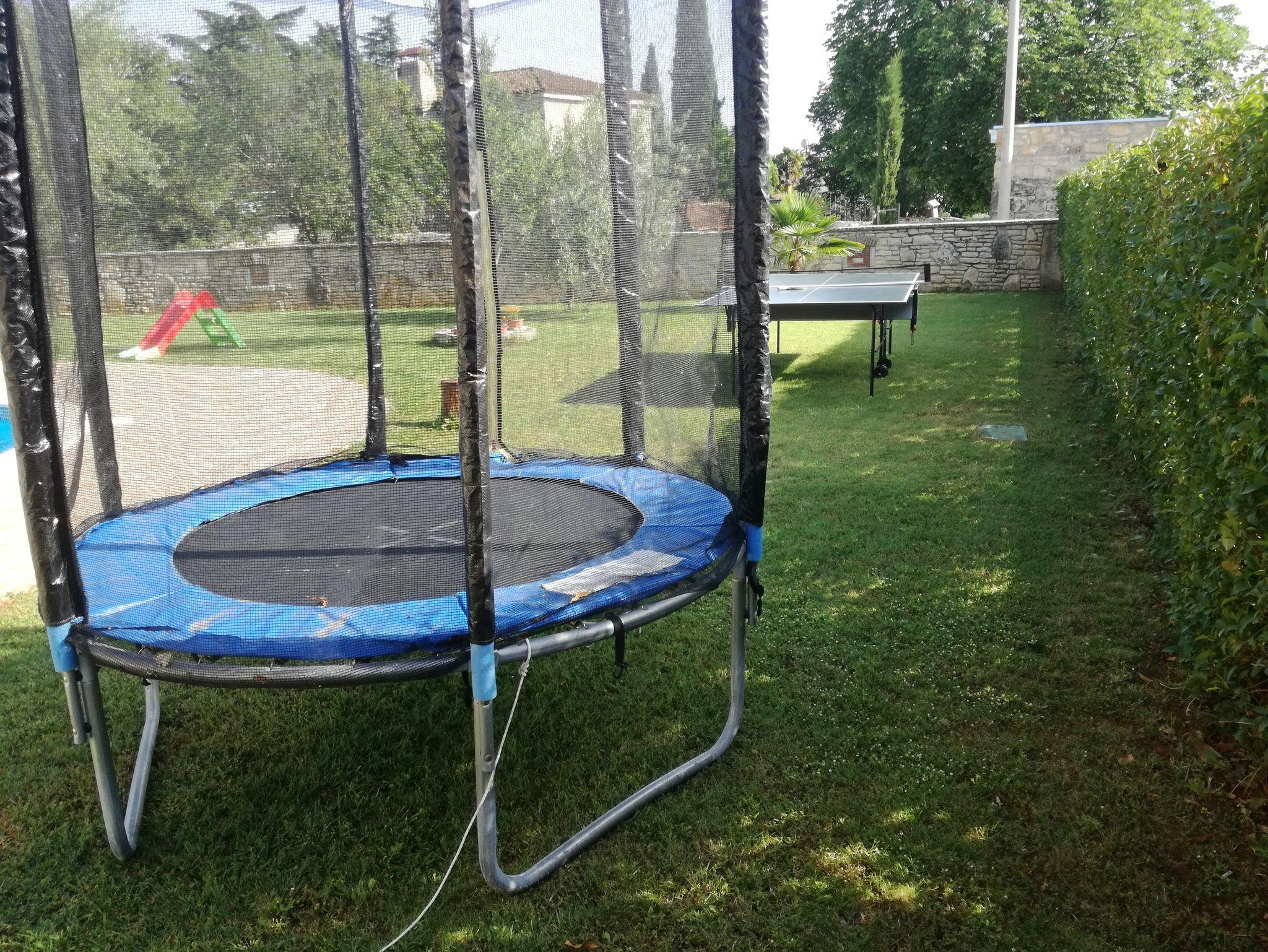 Umgebung des Objekts (Eingerichtet), Hof (500m2, Kinderbereich, Sitzbereich), Parkplatz (Anzahl der Parkplätze: 3, Entfernung vom Objekt: im Hof), Pool: privat, Dimensionen: 9m x 5m x 1.5m, Wassertyp: Süßwasser, WiFi Internet, Föhn, Bügeleisen, Bügelbrett, Sonnenschirm, Kinderbett