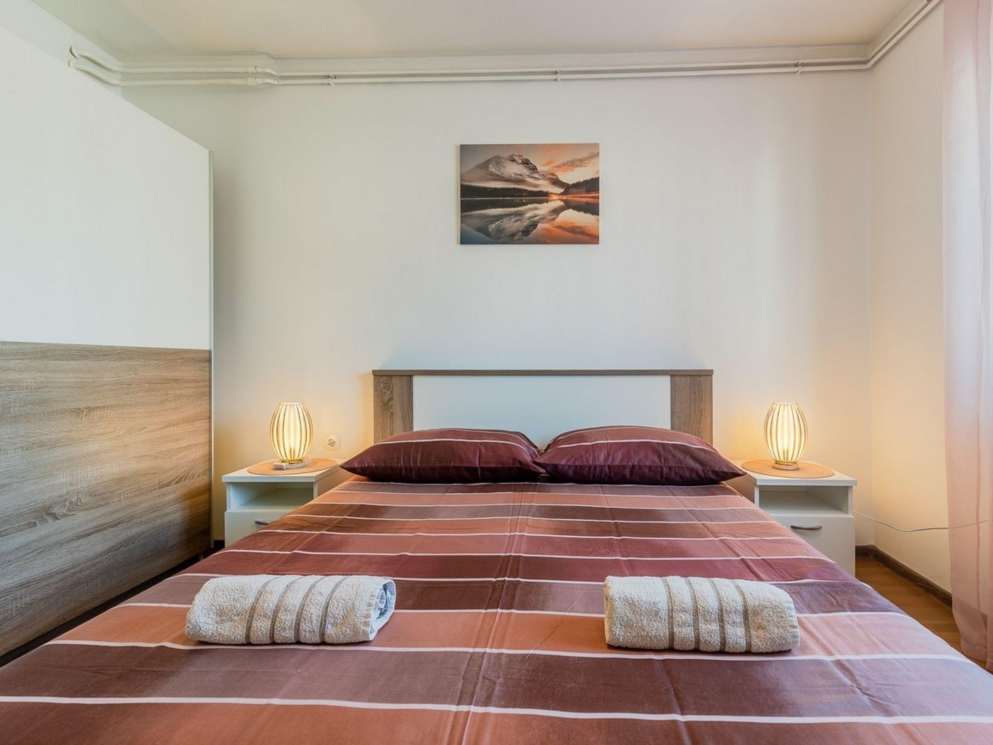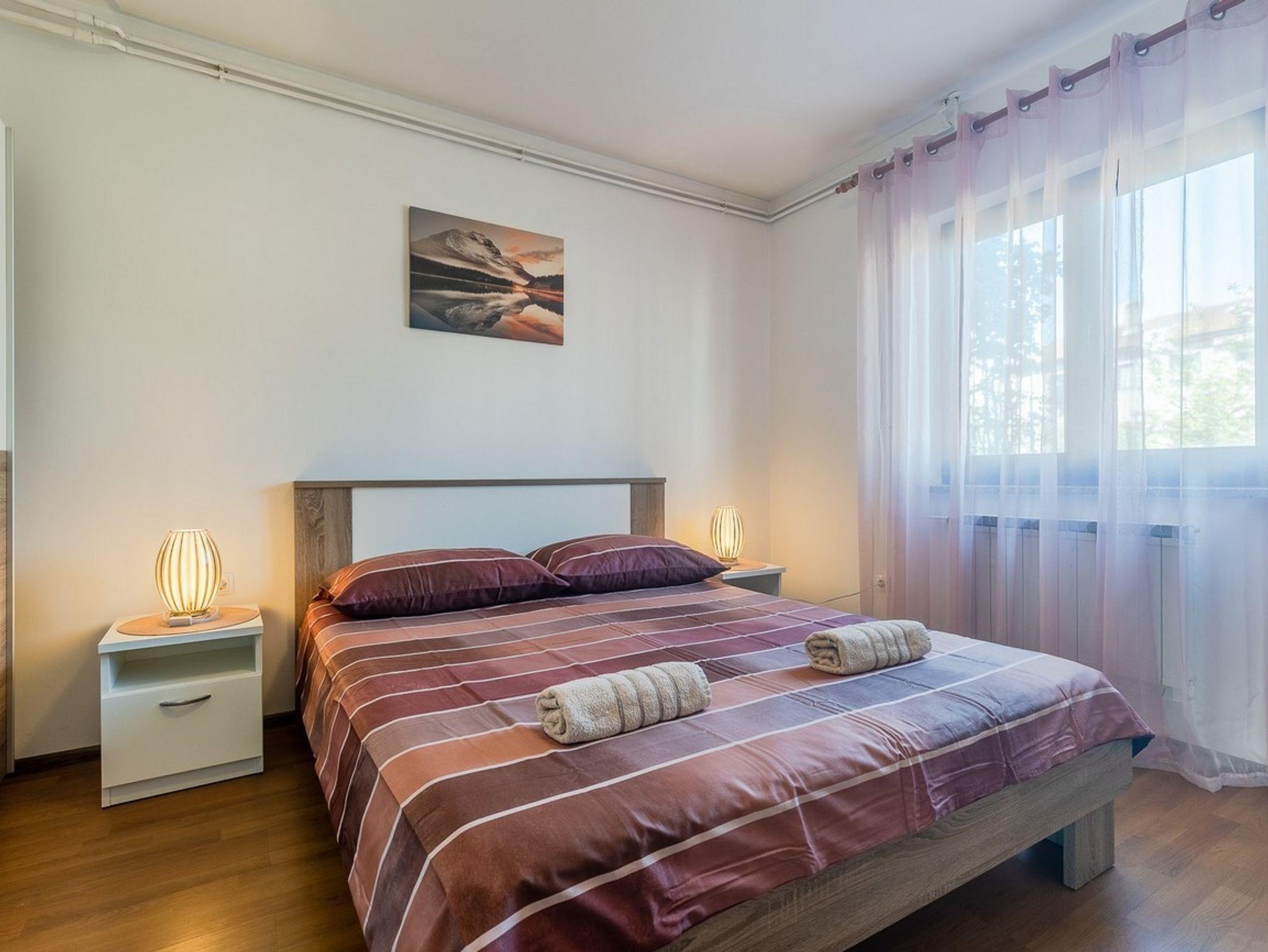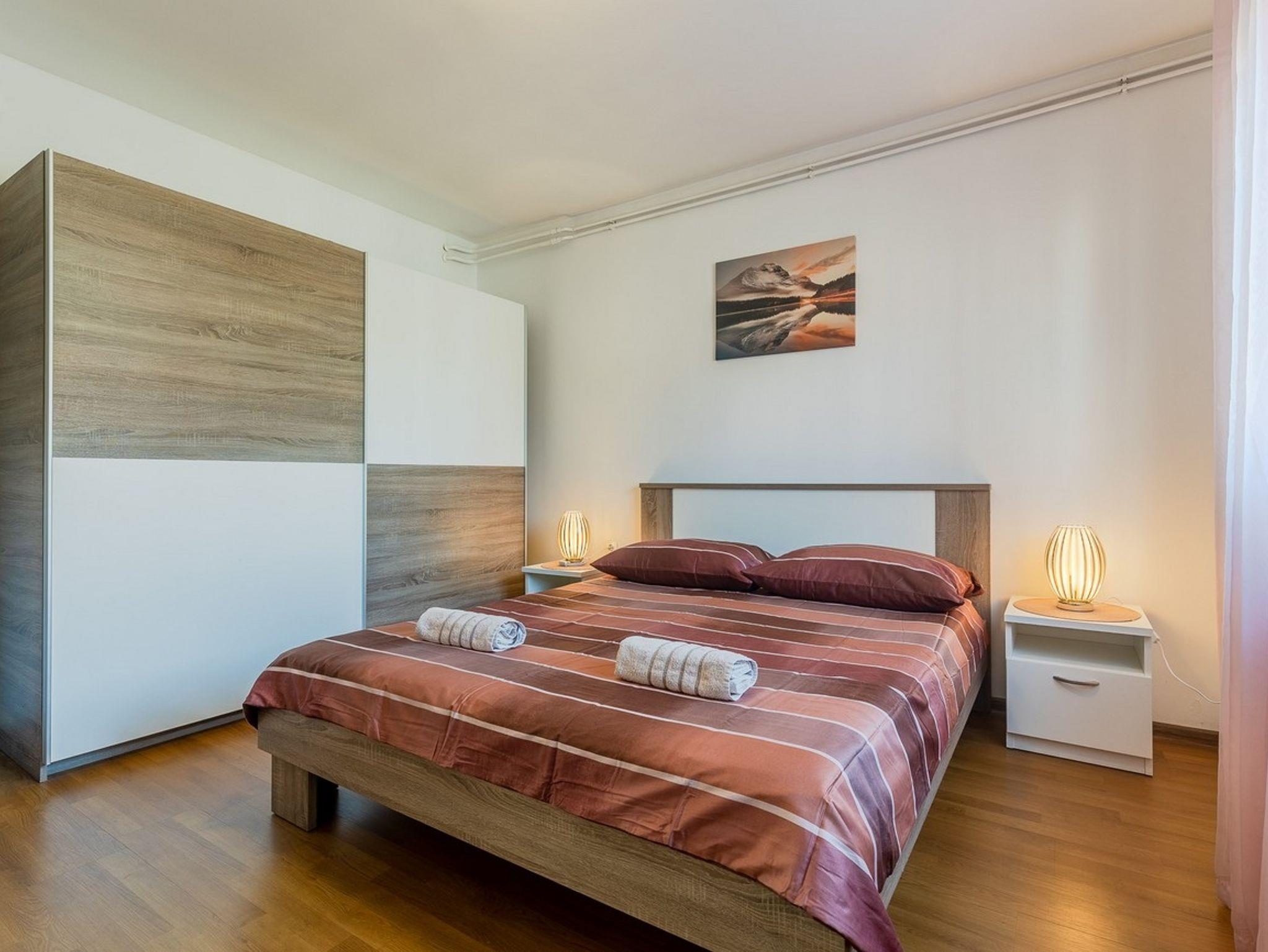 Ferienwohnung bietet Platz für 4 Gäste. Die Betten sind in Schlafzimmern, die es 2 gibt, innerhalb einer Gesamtfläche von 57m2, angeordnet. Die Gäste haben eine eigene Terrasse zur Verfügung, auf der sie in warmen Sommernächten genießen können. Für vollen Genuss und Entspannung gibt es einen privaten Grill für Gäste dieser Unterkunft. IM PREIS INBEGRIFFEN: Kurtaxe, Endreinigung, Klimatisierung, Zentralheizung, Parkplatz, Internet, Wäschewaschen, Kinderbett, Bügeleisen, Bügelbrett, Föhn, tragbarer Grill. Die Verfügbarkeit zusätzlicher Dienstleistungen in Ihrem reservierten Termin und die Preise derselben (falls nicht aufgeführt) müssen im Voraus überprüft werden. Zusätzliche Dienstleistungen die in der Zahlungsaufforderung nicht aufgeführt sind werden direkt beim Vermieter bezahlt, angenommen der Gast nutzt auch diese. Ermäßigung auf den Grundpreis: Gratistag 14=13 (bei einem Aufenthalt von 14 Tagen oder mehr erhalten Sie einen Gratistag für den Aufenthalt bis 31.12.26).