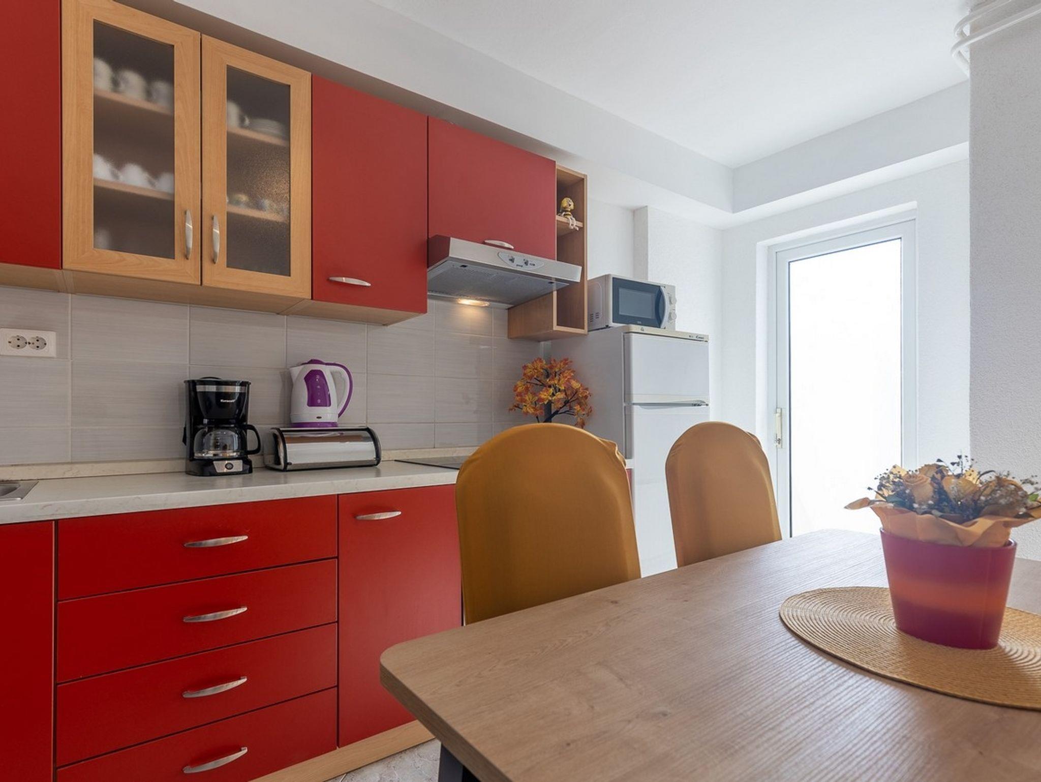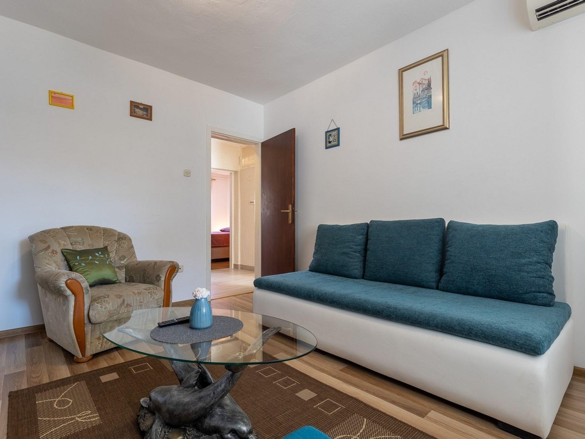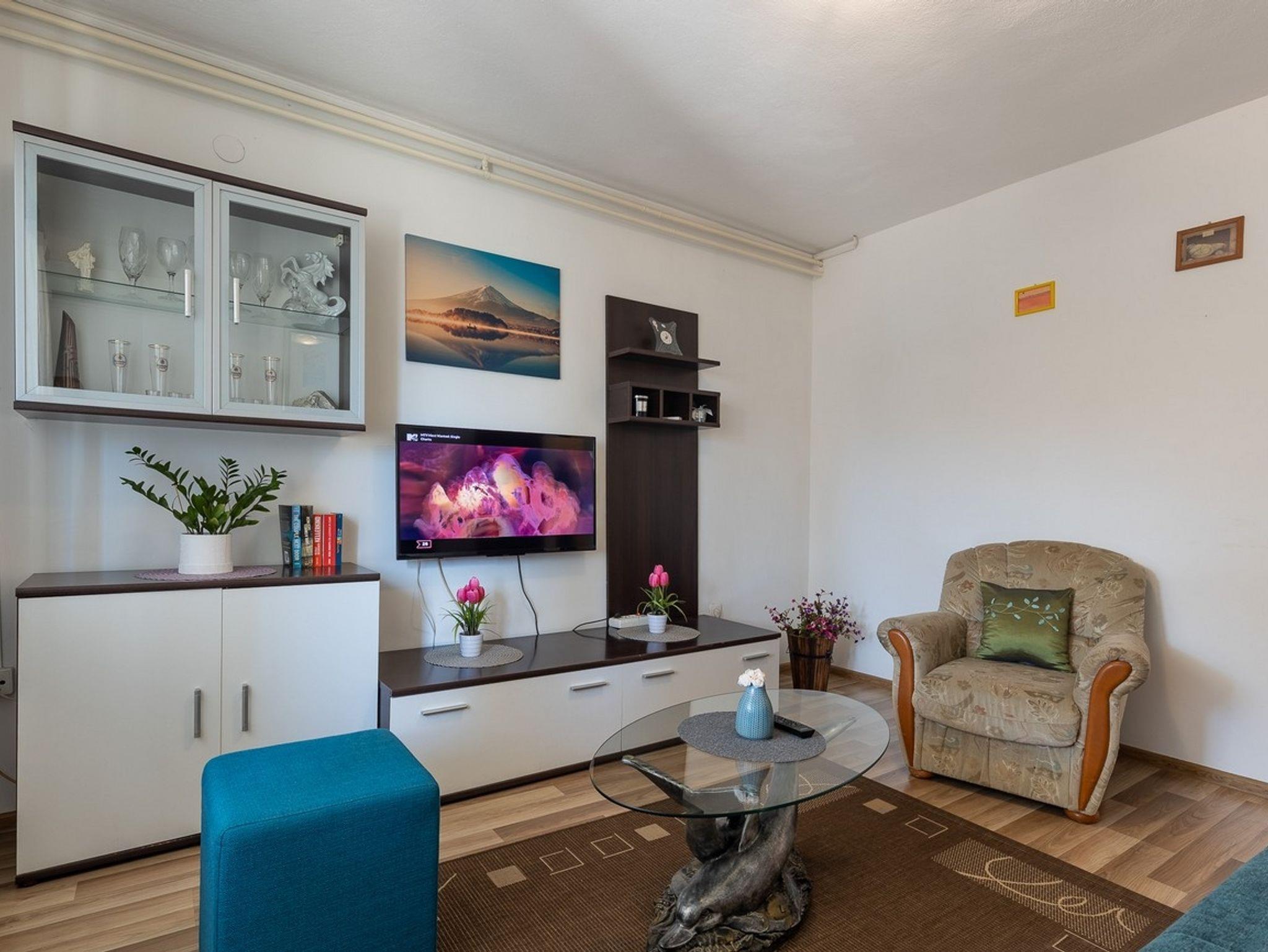 Ferienwohnung bietet Platz für 4 Gäste. Die Betten sind in Schlafzimmern, die es 2 gibt, innerhalb einer Gesamtfläche von 57m2, angeordnet. Die Gäste haben eine eigene Terrasse zur Verfügung, auf der sie in warmen Sommernächten genießen können. Für vollen Genuss und Entspannung gibt es einen privaten Grill für Gäste dieser Unterkunft. IM PREIS INBEGRIFFEN: Kurtaxe, Endreinigung, Klimatisierung, Zentralheizung, Parkplatz, Internet, Wäschewaschen, Kinderbett, Bügeleisen, Bügelbrett, Föhn, tragbarer Grill. Die Verfügbarkeit zusätzlicher Dienstleistungen in Ihrem reservierten Termin und die Preise derselben (falls nicht aufgeführt) müssen im Voraus überprüft werden. Zusätzliche Dienstleistungen die in der Zahlungsaufforderung nicht aufgeführt sind werden direkt beim Vermieter bezahlt, angenommen der Gast nutzt auch diese. Ermäßigung auf den Grundpreis: Gratistag 14=13 (bei einem Aufenthalt von 14 Tagen oder mehr erhalten Sie einen Gratistag für den Aufenthalt bis 31.12.26).