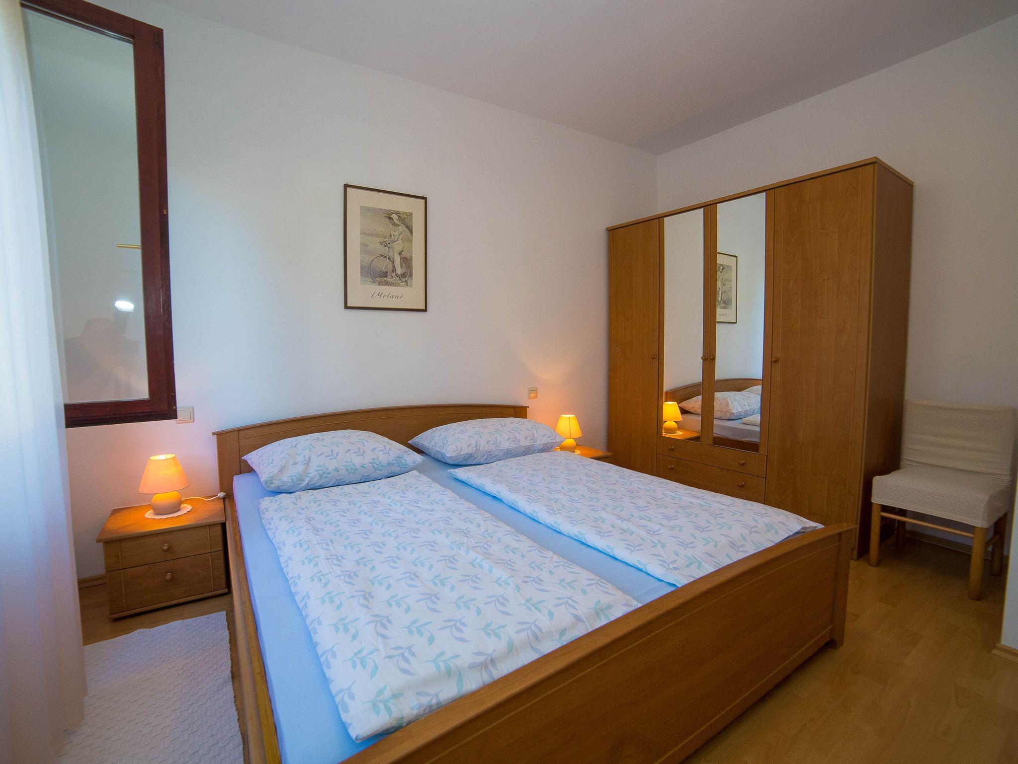 Ferienwohnung bietet Platz für 4 Gäste. Die Betten sind in Schlafzimmern, die es 2 gibt, innerhalb einer Gesamtfläche von 46m2, angeordnet. Die Gäste haben eine eigene Terrasse zur Verfügung, auf der sie in warmen Sommernächten genießen können. Es ist erlaubt, Speisen auf dem Gemeinschafts-Grill vorzubereiten. IM PREIS INBEGRIFFEN: Kurtaxe, Endreinigung, Klimatisierung, Zentralheizung, Parkplatz, Internet, Wäschewaschen, Kinderbett, Bügeleisen, Bügelbrett, Föhn. VERBINDLICHE ZUSÄTZLICHE KOSTEN: Aufzahlung für Kurzaufenthalte (prozentualer Zuschlag pro Nächtigungsanzahl: 30% - 1, 20% - 2, 10% - 3). Die Verfügbarkeit zusätzlicher Dienstleistungen in Ihrem reservierten Termin und die Preise derselben (falls nicht aufgeführt) müssen im Voraus überprüft werden. Zusätzliche Dienstleistungen die in der Zahlungsaufforderung nicht aufgeführt sind werden direkt beim Vermieter bezahlt, angenommen der Gast nutzt auch diese.