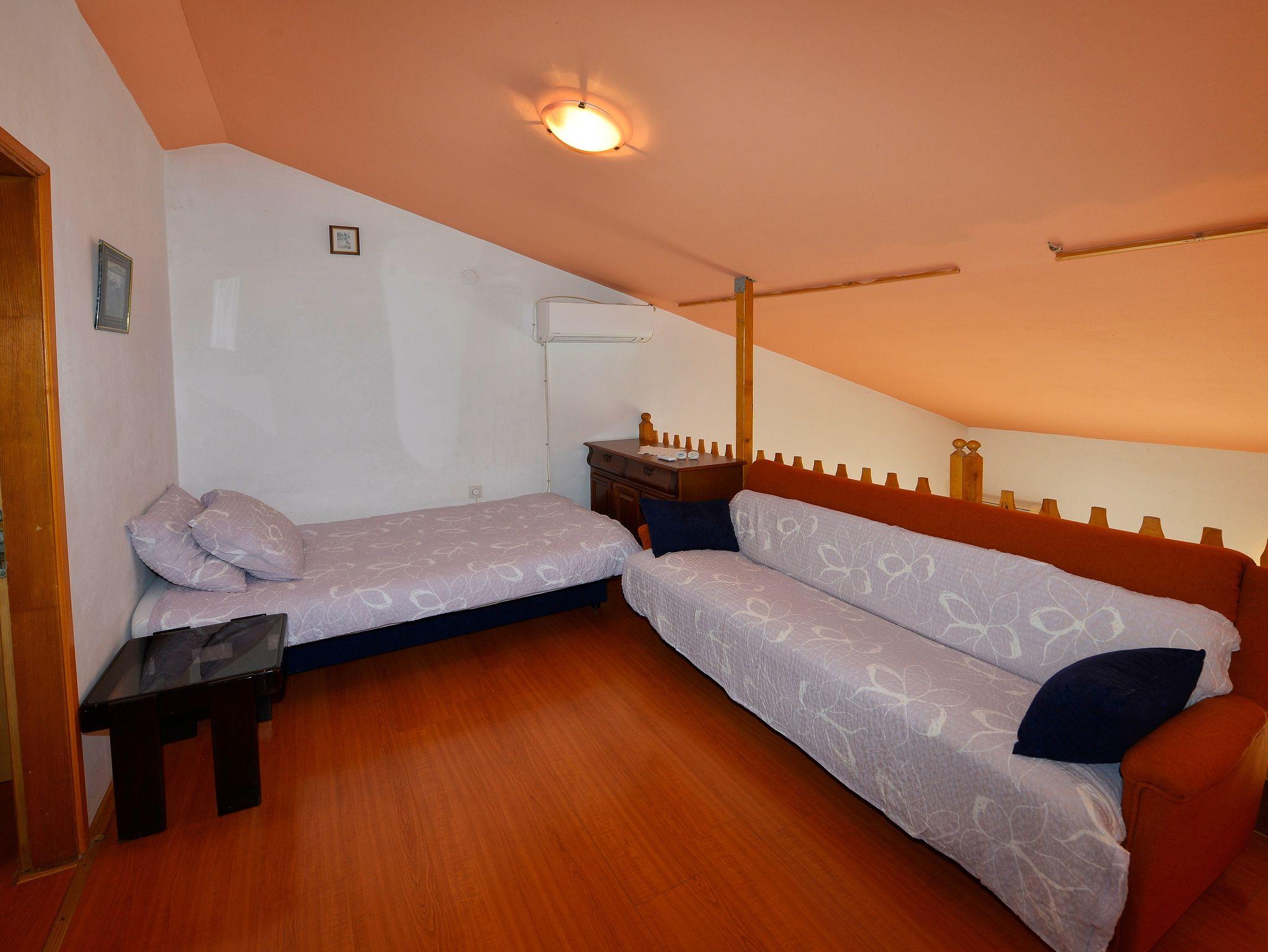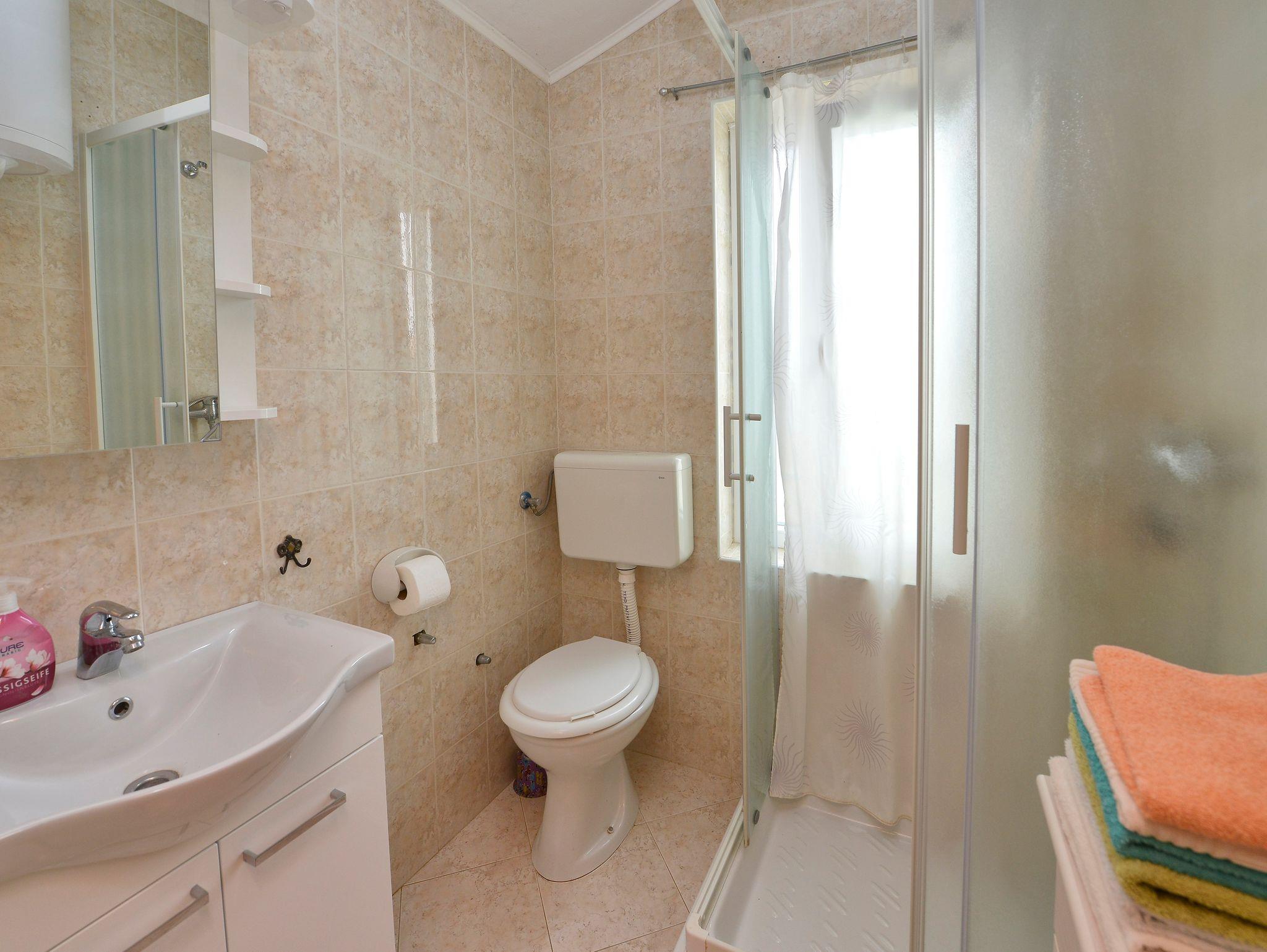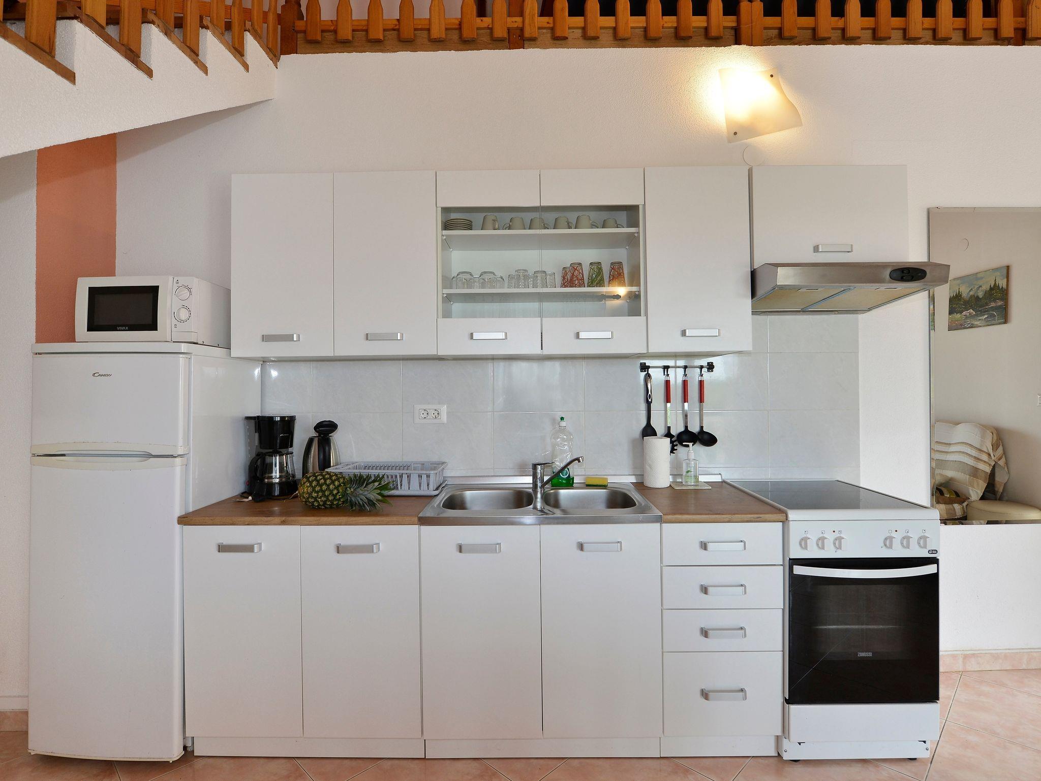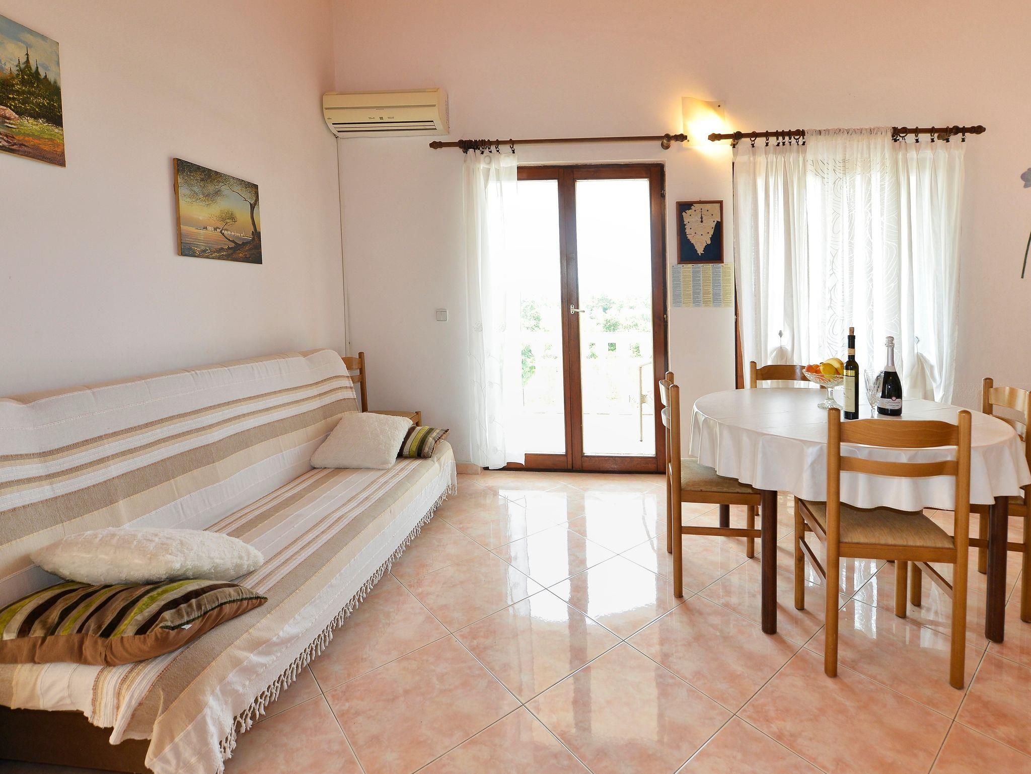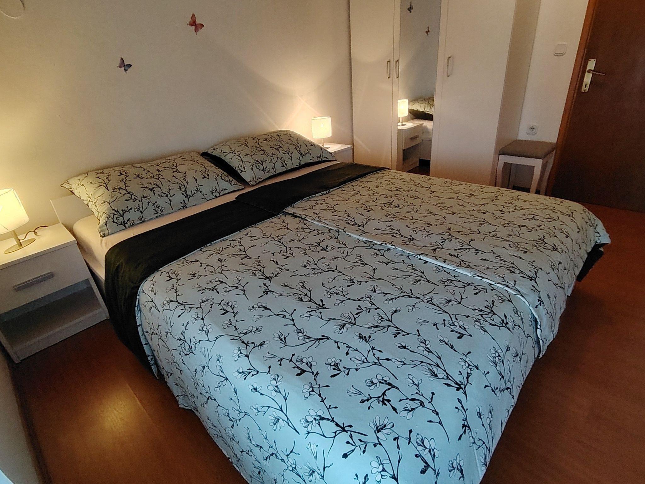 Ferienwohnung bietet Platz für 6 Gäste. Die Betten sind in Schlafzimmern, die es 2 gibt, und in Wohnzimmer, innerhalb einer Gesamtfläche von 65m2, angeordnet. Die Gäste haben eine eigene Terrasse zur Verfügung, auf der sie in warmen Sommernächten genießen können. Es ist erlaubt, Speisen auf dem Gemeinschafts-Grill vorzubereiten. Während ihres Aufenthalts können Gäste das gemeinsam zur Nutzung stehende Schwimmbad benutzen. In der Unterkunftseinheit besteht die Möglichkeit des Mitbringens von Haustieren gegen Aufpreis. In der gebuchten Unterkunftseinheit zahlt man am Ort ein Depositum ( der Preis ist an der Internetseite angeführt ). IM PREIS INBEGRIFFEN: Kurtaxe, Endreinigung, Klimatisierung, Pool, Parkplatz, Internet, Kinderbett, Bügeleisen, Bügelbrett, Föhn, tragbarer Grill, Sonnenschirm, Liegestühle. VERBINDLICHE ZUSÄTZLICHE KOSTEN: Kaution (100,00 € Einmalzahlung). UNVERBINDLICHE ZUSÄTZLICHE KOSTEN: Wäschewaschen (5,00 € Waschen), Haustiere (10,00 € pro Nacht). Die Verfügbarkeit zusätzlicher Dienstleistungen in Ihrem reservierten Termin und die Preise derselben (falls nicht aufgeführt) müssen im Voraus überprüft werden. Zusätzliche Dienstleistungen die in der Zahlungsaufforderung nicht aufgeführt sind werden direkt beim Vermieter bezahlt, angenommen der Gast nutzt auch diese. Ermäßigung auf den Grundpreis: Gratistag 14=13 (bei einem Aufenthalt von 14 Tagen oder mehr erhalten Sie einen Gratistag für den Aufenthalt bis 31.12.26).