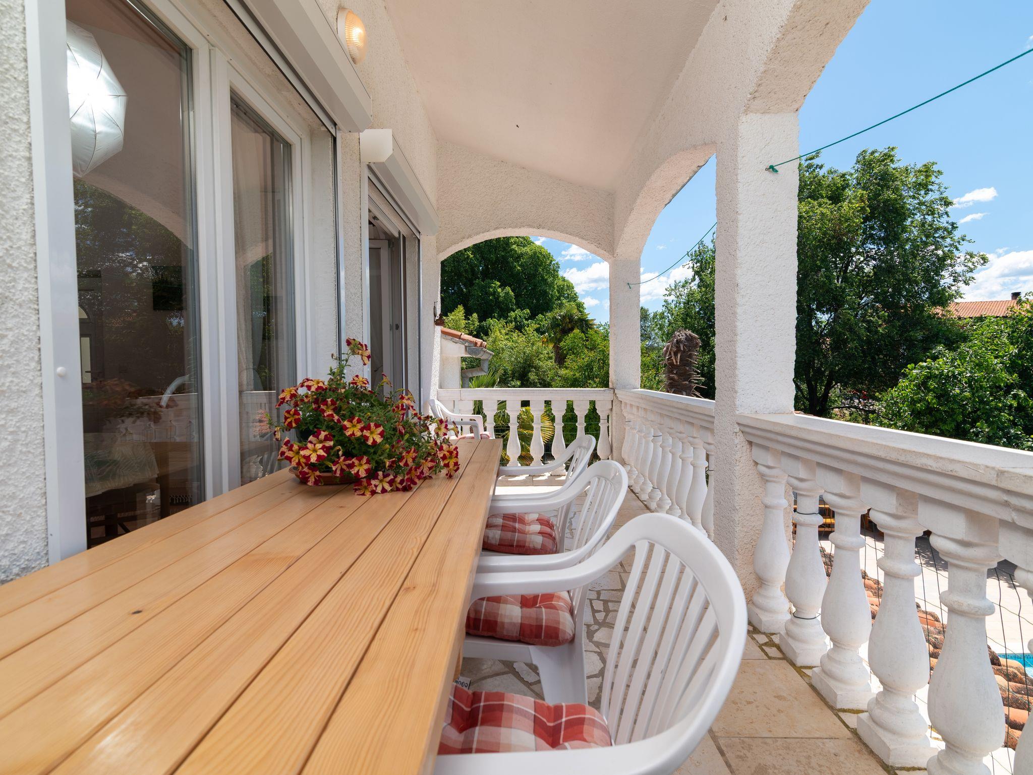 Umgebung des Objekts (Eingerichtet), Hof (300m2, Kinderbereich, Sitzbereich), Parkplatz (Anzahl der Parkplätze: 7, Entfernung vom Objekt: im Hof), Pool: gemeinsam, Dimensionen: 8m x 4m x 1.5m, Wassertyp: Süßwasser, Grill: gemeinsam, WiFi Internet, Wäschewaschen, Föhn, Bügeleisen, Bügelbrett, Tragbarer Grill, Sonnenschirm, Liegestühle, Kinderbett