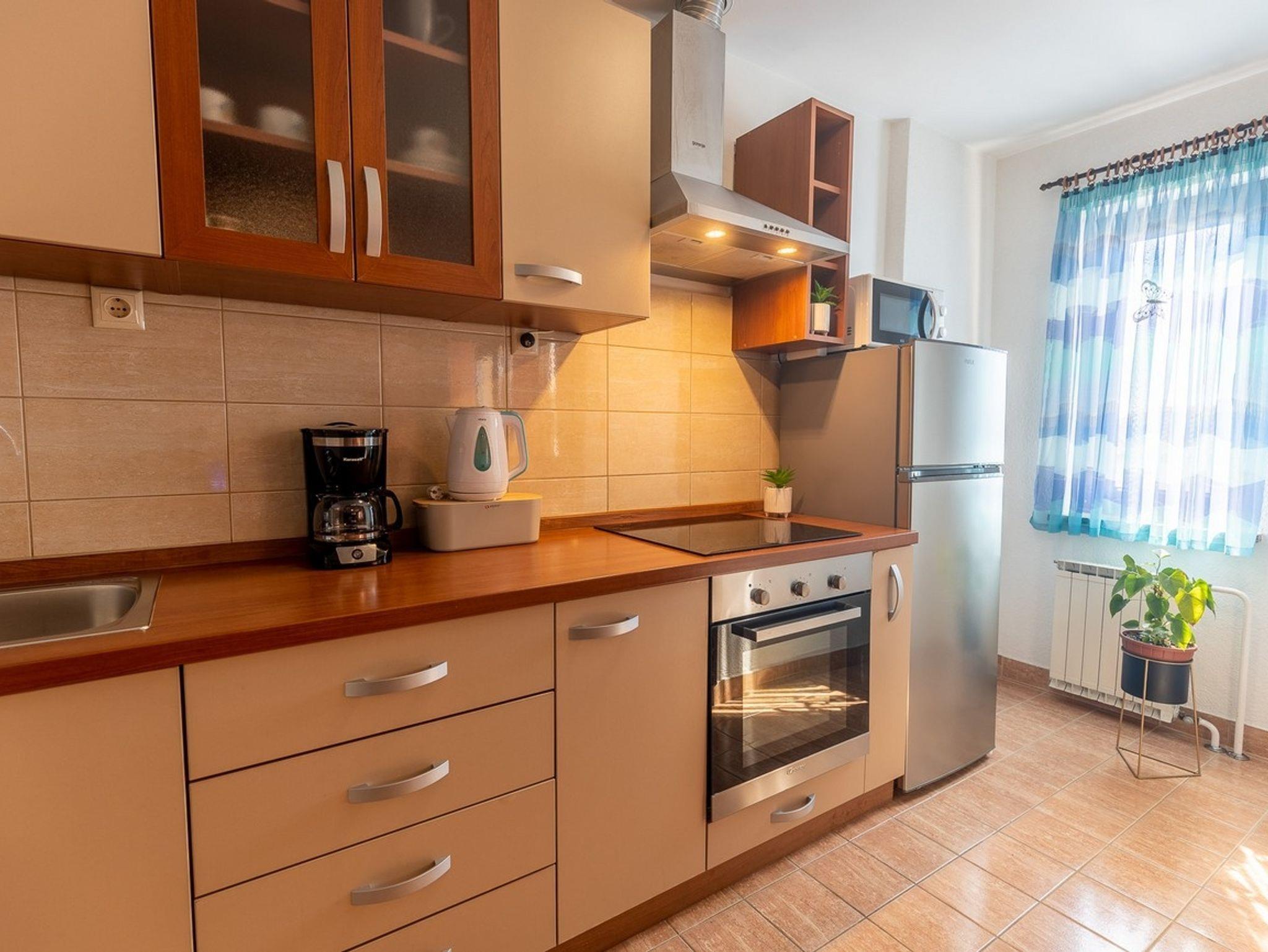 Ferienwohnung bietet Platz für 4 Gäste. Die Betten sind in Schlafzimmern, die es 2 gibt, innerhalb einer Gesamtfläche von 64m2, angeordnet. Die Gäste haben eine eigene Terrasse zur Verfügung, auf der sie in warmen Sommernächten genießen können. Für vollen Genuss und Entspannung gibt es einen privaten Grill für Gäste dieser Unterkunft. Räume der gebuchten Unterkunftseinheit werden nicht in eine Ganze verbunden. IM PREIS INBEGRIFFEN: Kurtaxe, Endreinigung, Klimatisierung, Zentralheizung, Parkplatz, Internet, Wäschewaschen, Kinderbett, Bügeleisen, Bügelbrett, Föhn, tragbarer Grill. Die Verfügbarkeit zusätzlicher Dienstleistungen in Ihrem reservierten Termin und die Preise derselben (falls nicht aufgeführt) müssen im Voraus überprüft werden. Zusätzliche Dienstleistungen die in der Zahlungsaufforderung nicht aufgeführt sind werden direkt beim Vermieter bezahlt, angenommen der Gast nutzt auch diese. Ermäßigung auf den Grundpreis: Gratistag 14=13 (bei einem Aufenthalt von 14 Tagen oder mehr erhalten Sie einen Gratistag für den Aufenthalt bis 31.12.26).