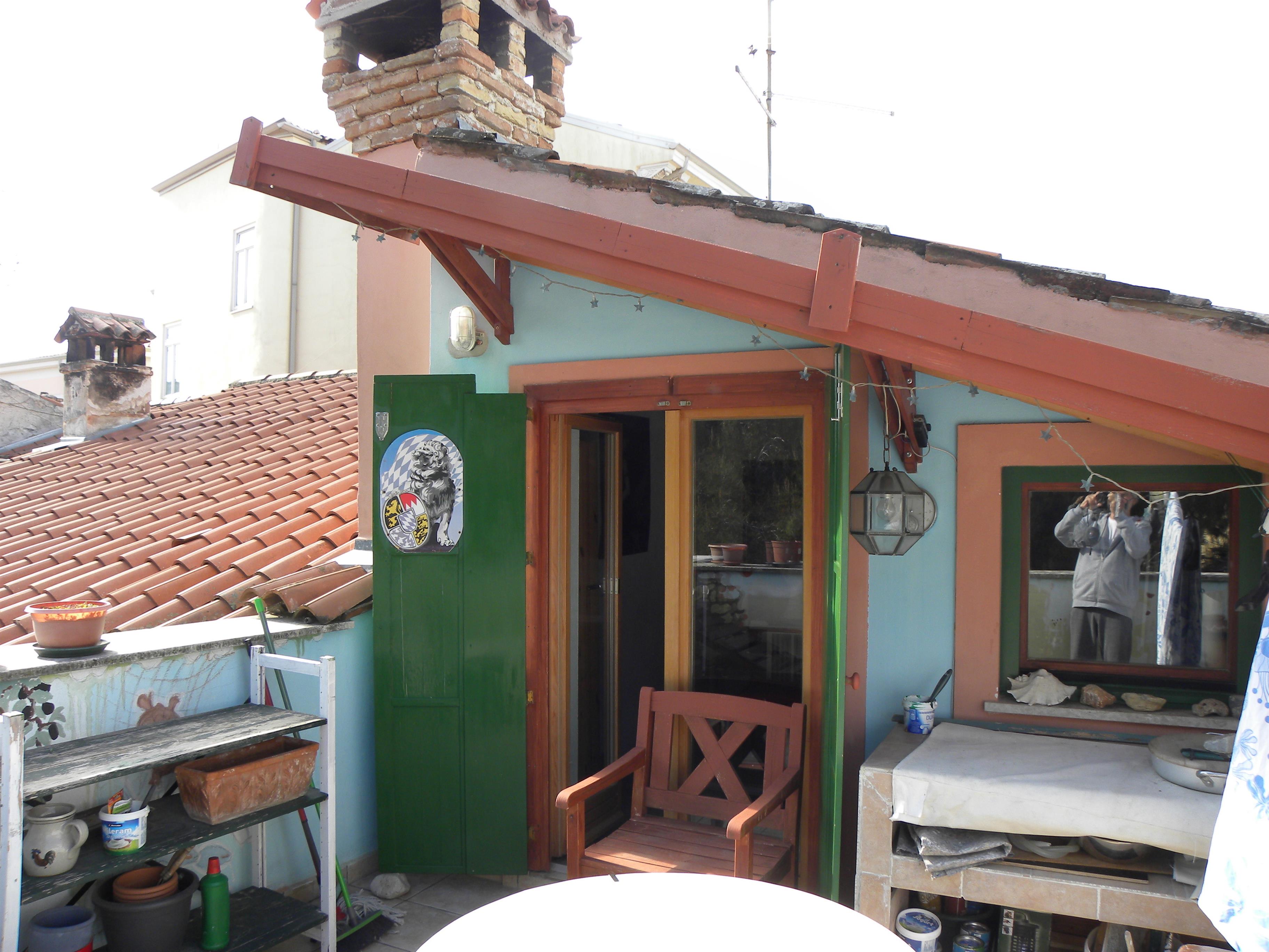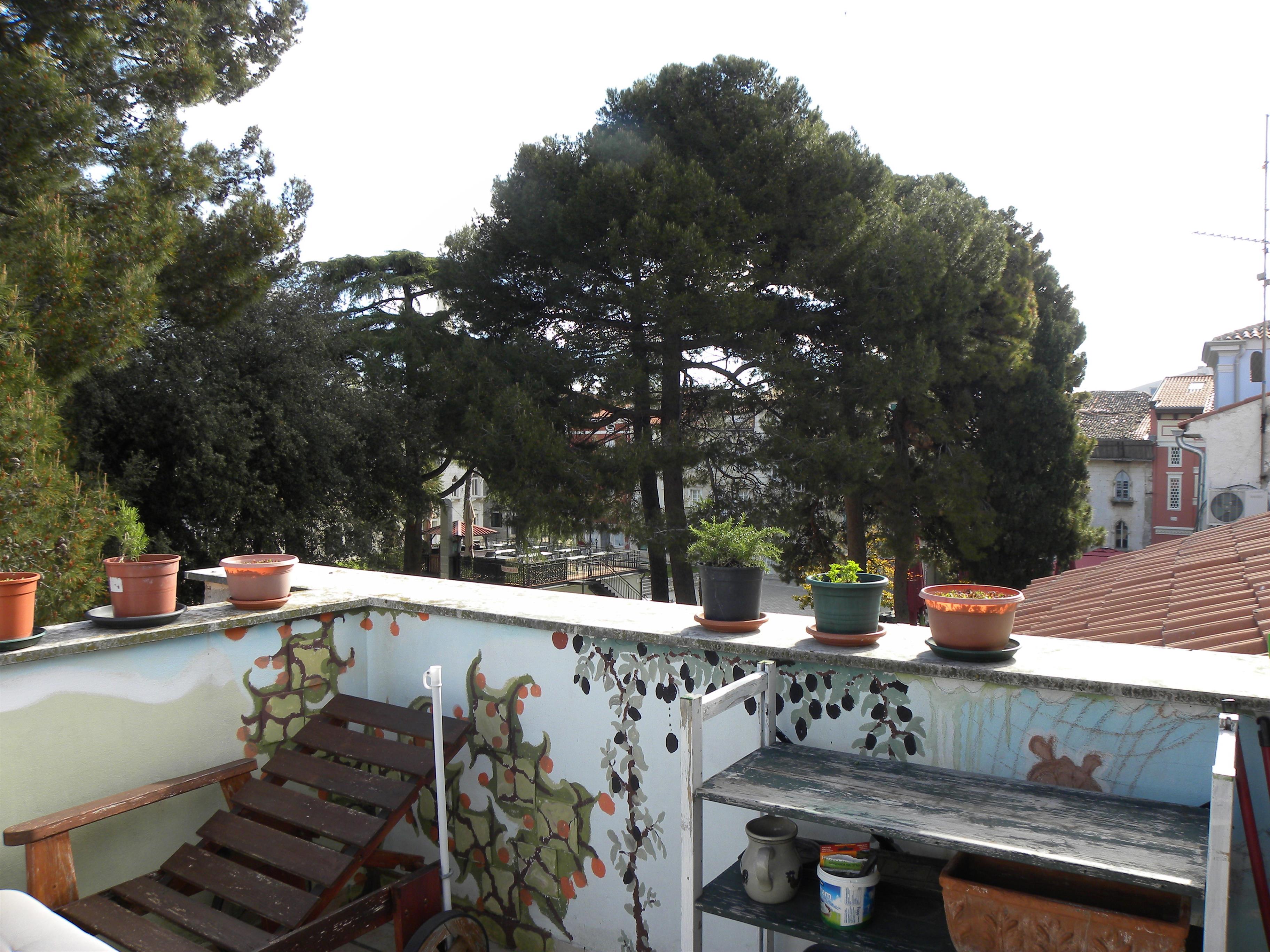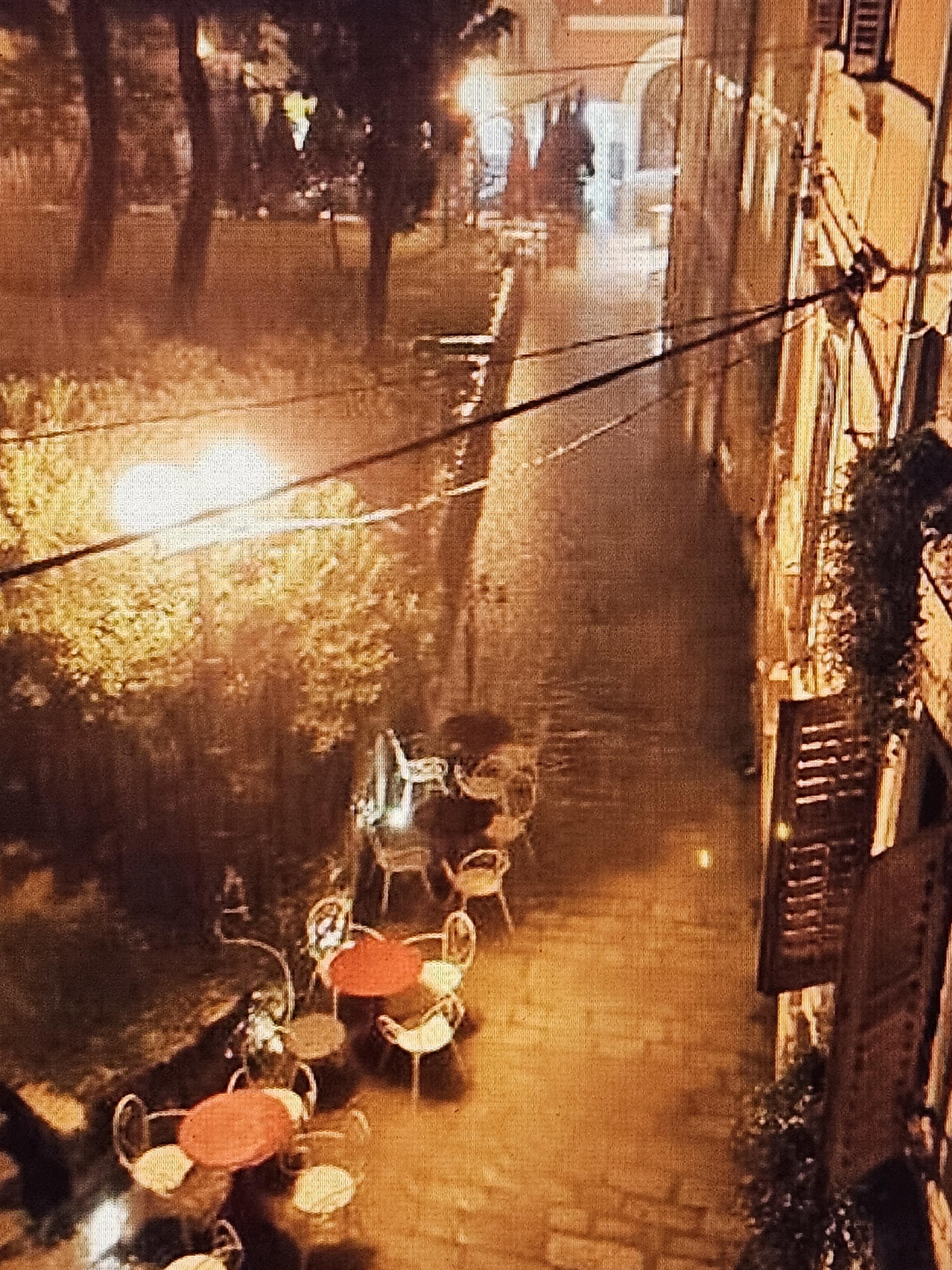 Mein Haus in den 500 Jahre alten- denkmalgeschützten Mauern in der autofreien Altstadt von Porec- schaut auf den baumbestandenen "parco centro storico", der Kreuzung von Cardo und Decumanus .