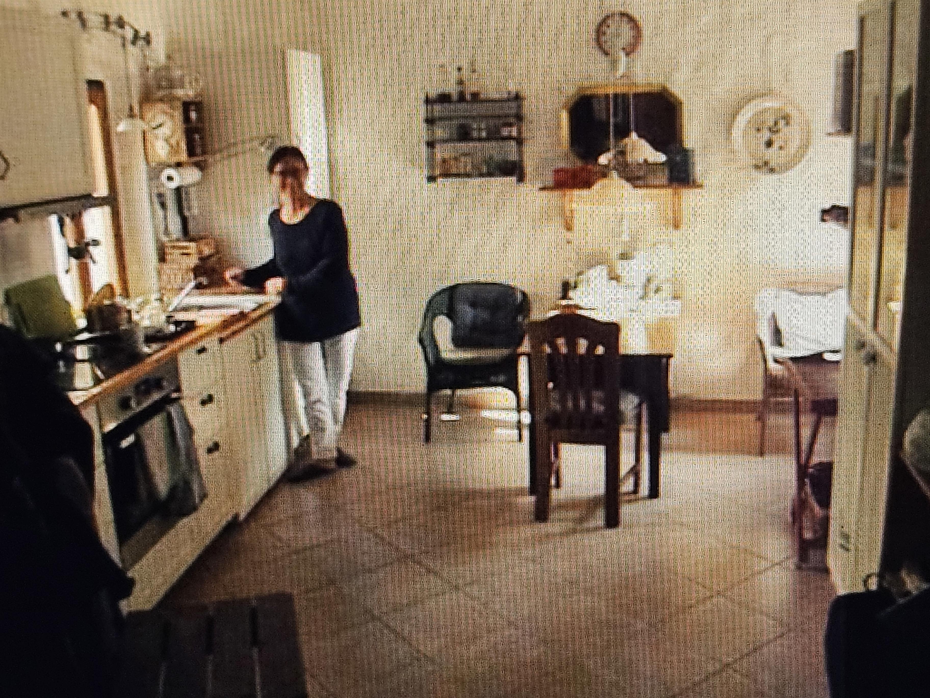 Die Wendeltreppe führt hoch in den Wohnbereich mit einer Küchenzeile , Esstisch für 5 Personen, Multimedia. Im Nebenraum sind Dusche, WC und Waschmaschine. Ein Kanonenofen mit Brennvorrat hilft gegen kühle Nächte.