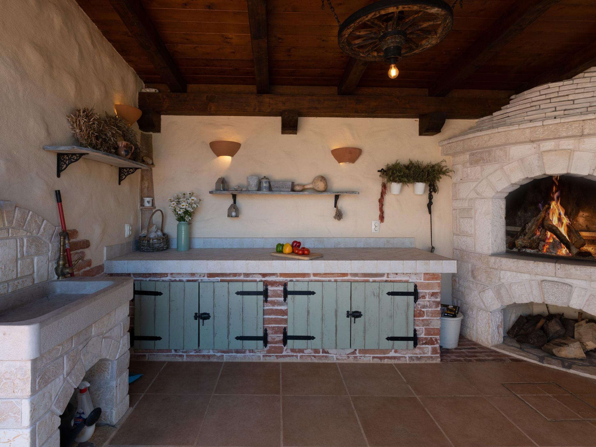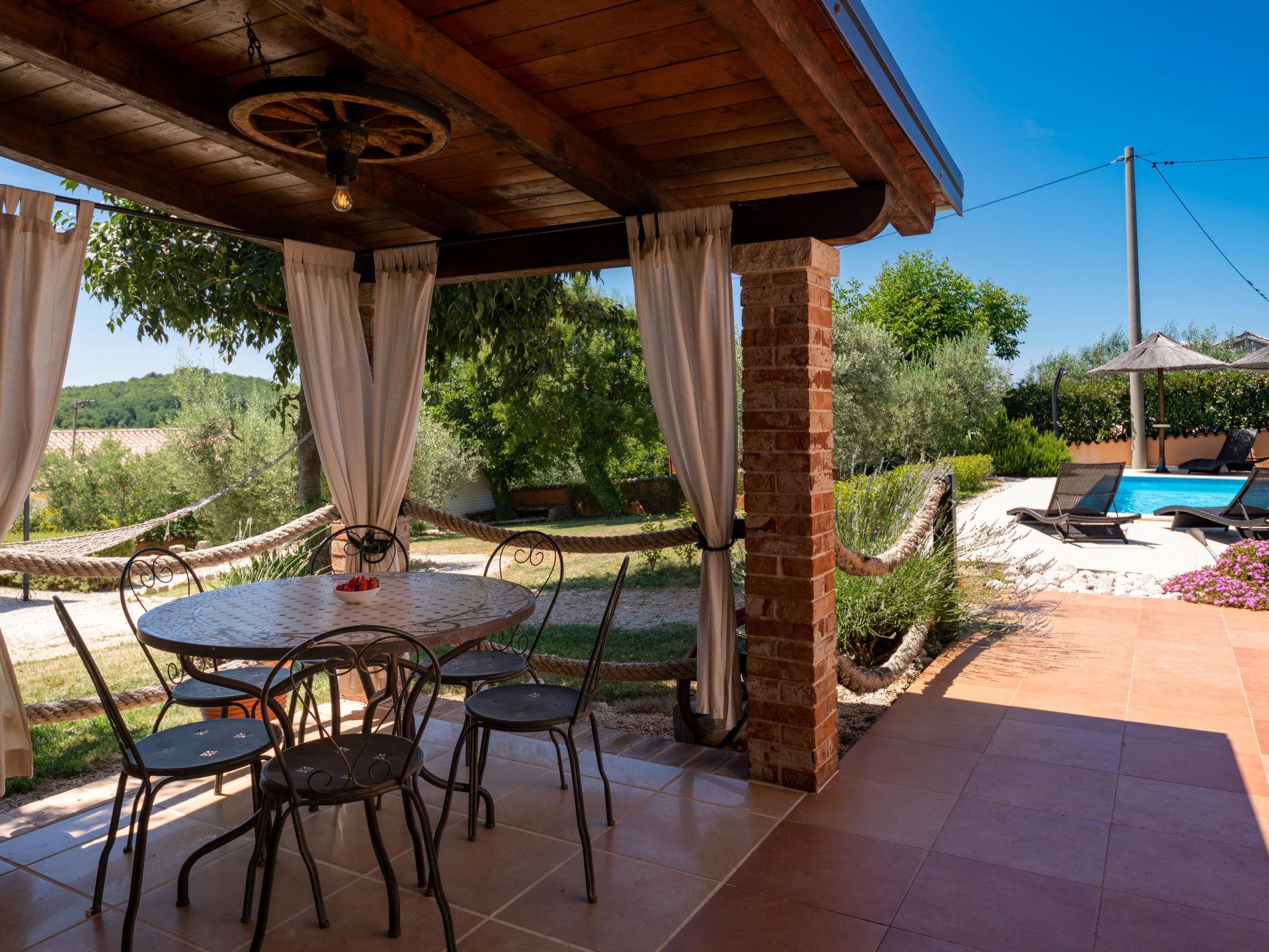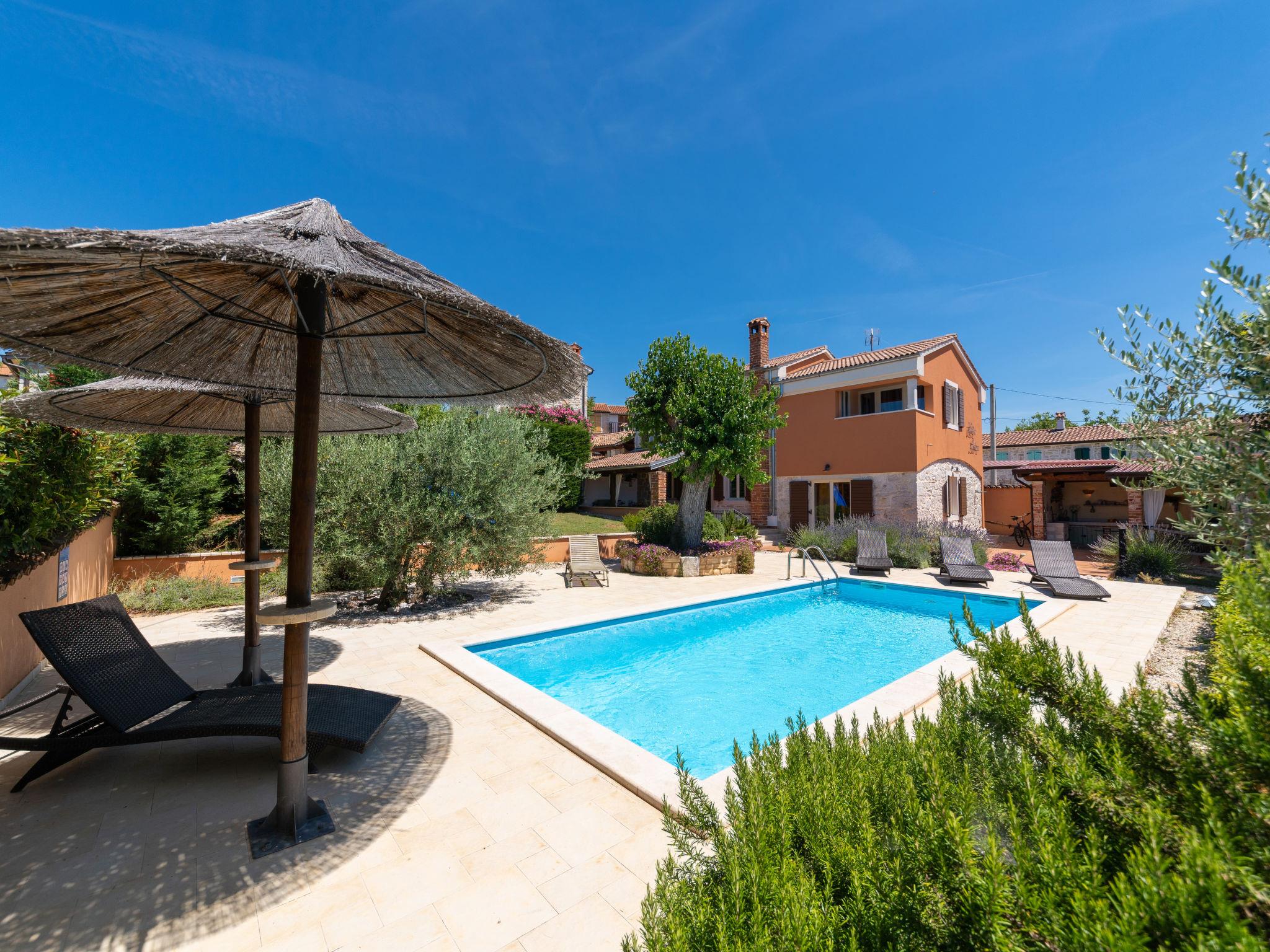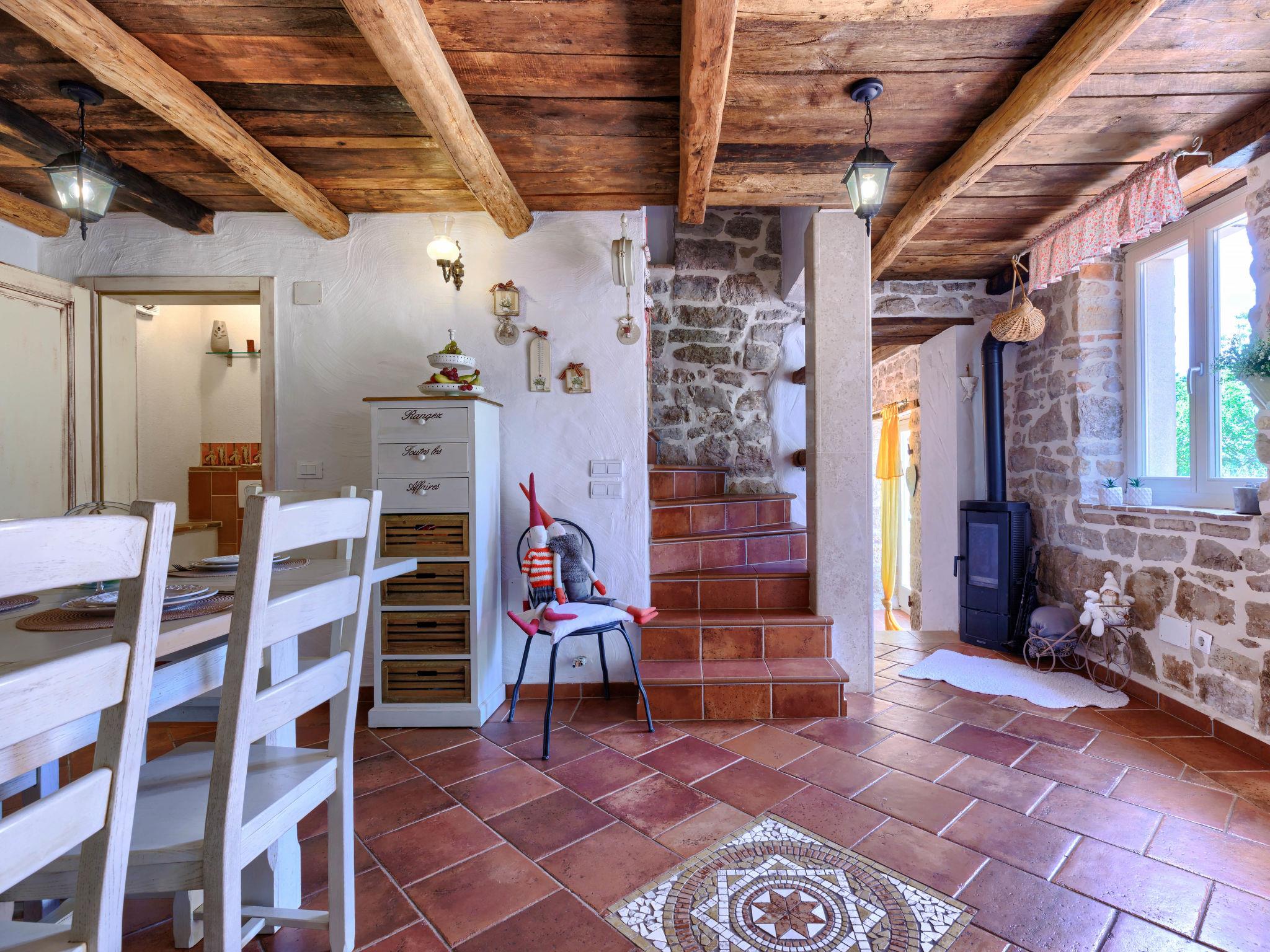 Single-family house "Petra", 2 storeys. In the hamlet Dracevac 3 km from the centre of Žbadanj, 8 km from the centre of Porec, in a quiet, sunny position, 9 km from the sea, in a cul-de-sac. Private: property 930 m2 with lawn 280 m2 wildlife garden, swimming pool angular (6 x 4 m, depth 140 cm, seasonal availability: 01.May. - 31.Oct.). Outdoor shower, terrace (20 m2), garden furniture, barbecue, children's playground (slide, swing), pool maintenance by the owner/gardener. In the house: internet access, washing machine. Roofed, parking (for 2 cars) at the house on the premises. Shop 3 km, supermarket 8 km, restaurant 3 km, bus stop 2.8 km. Private: outdoor kitchen.