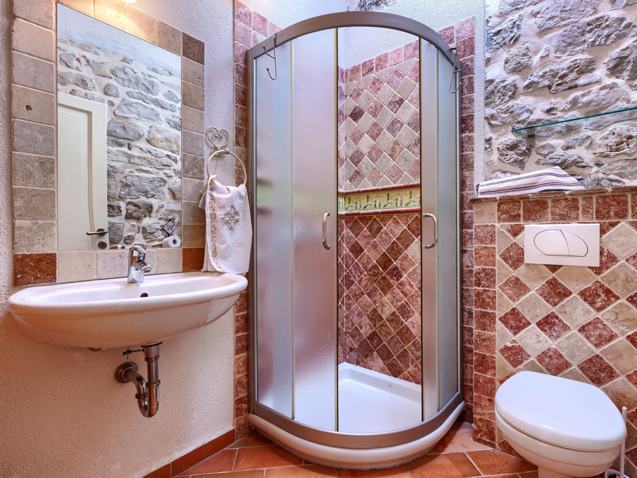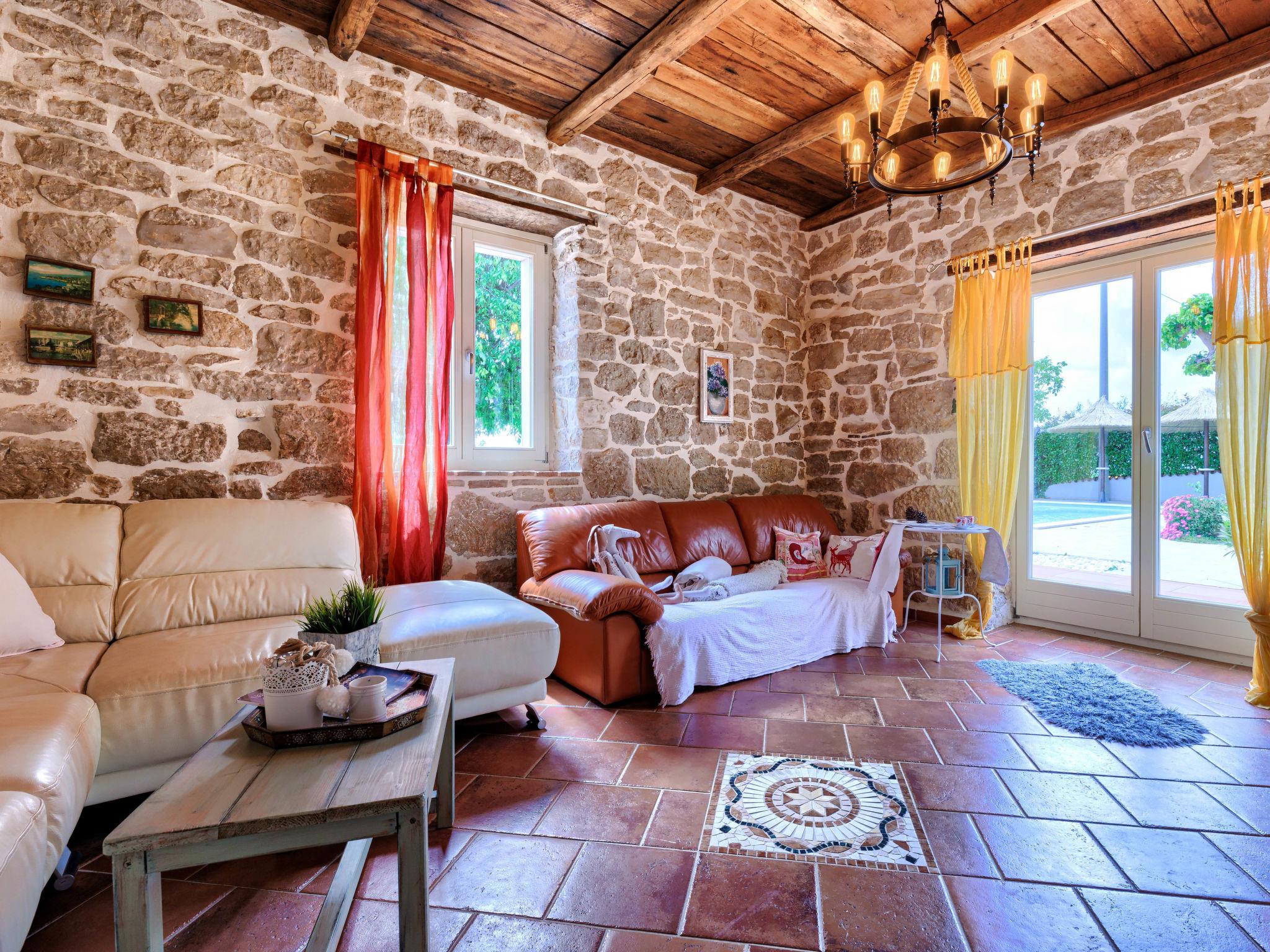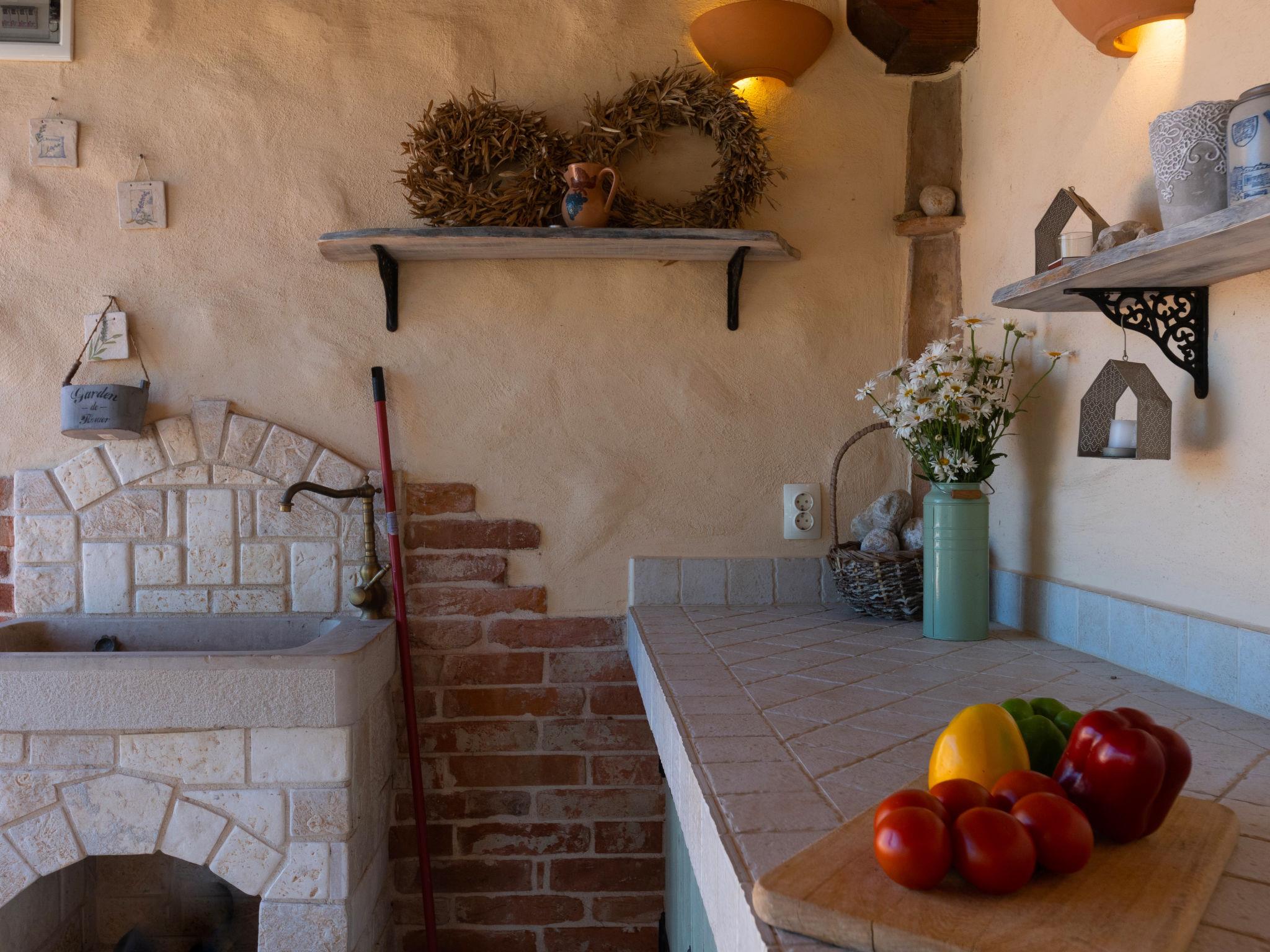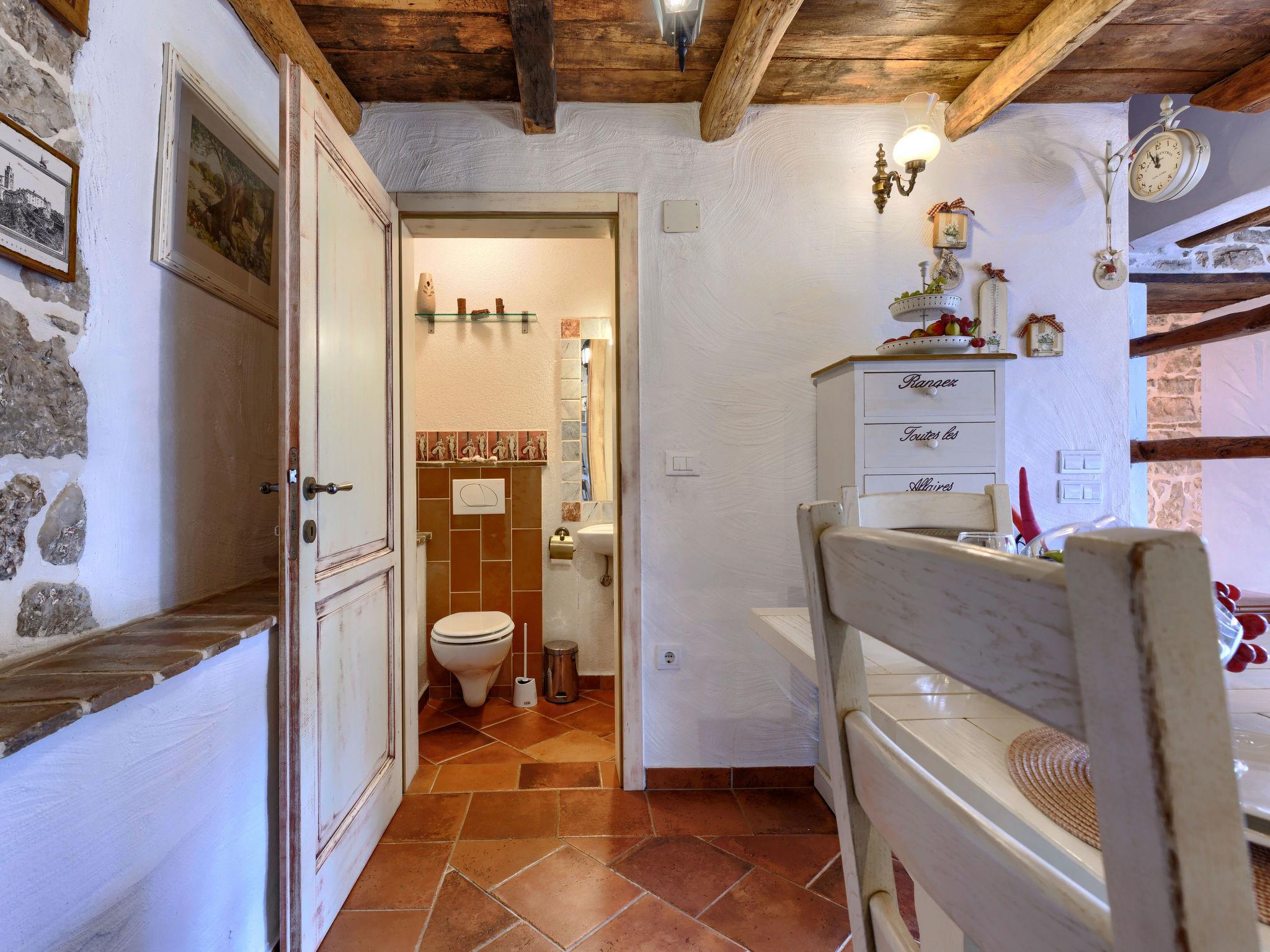 Single-family house "Petra", 2 storeys. In the hamlet Dracevac 3 km from the centre of Žbadanj, 8 km from the centre of Porec, in a quiet, sunny position, 9 km from the sea, in a cul-de-sac. Private: property 930 m2 with lawn 280 m2 wildlife garden, swimming pool angular (6 x 4 m, depth 140 cm, seasonal availability: 01.May. - 31.Oct.). Outdoor shower, terrace (20 m2), garden furniture, barbecue, children's playground (slide, swing), pool maintenance by the owner/gardener. In the house: internet access, washing machine. Roofed, parking (for 2 cars) at the house on the premises. Shop 3 km, supermarket 8 km, restaurant 3 km, bus stop 2.8 km. Private: outdoor kitchen.
