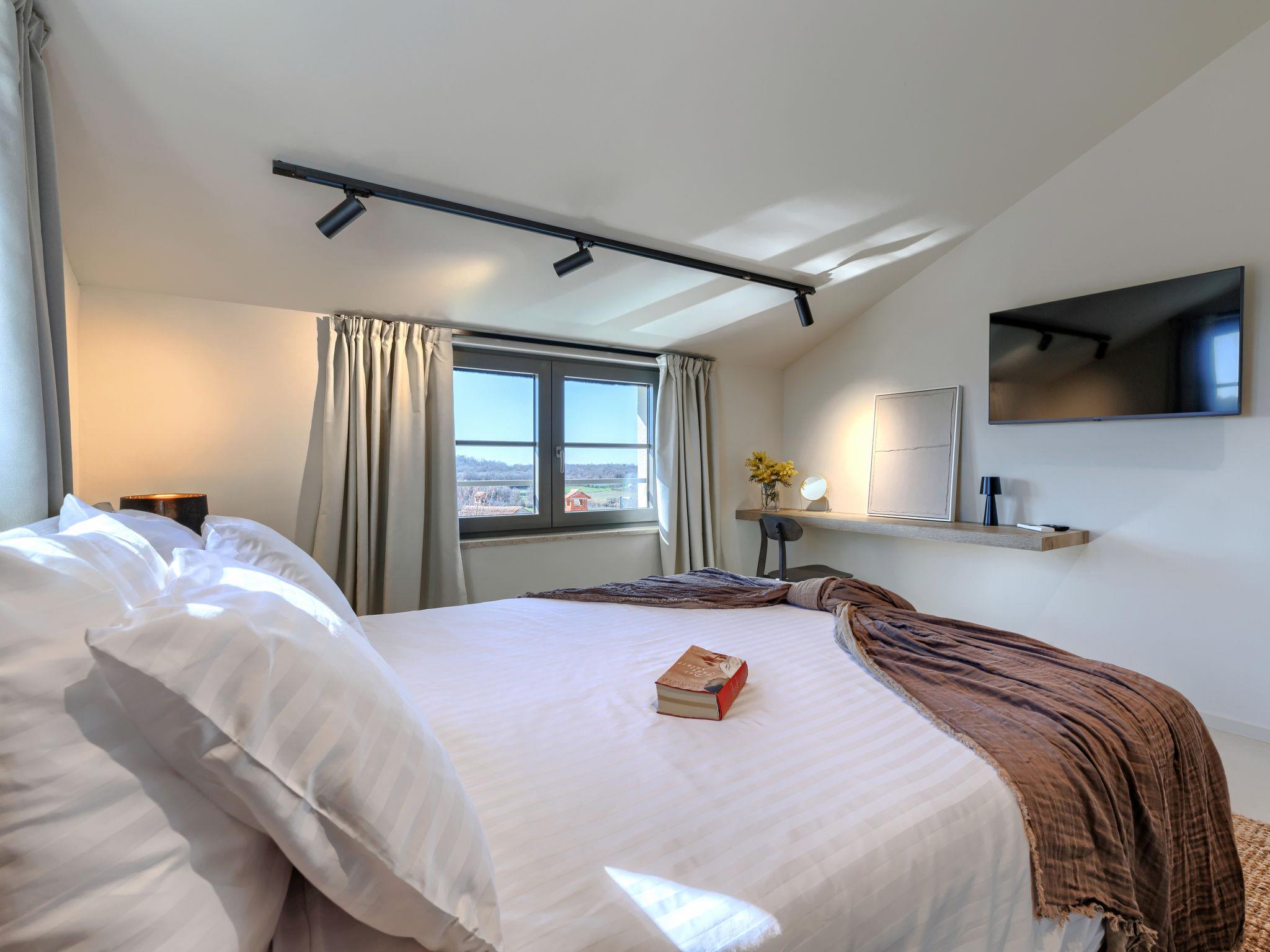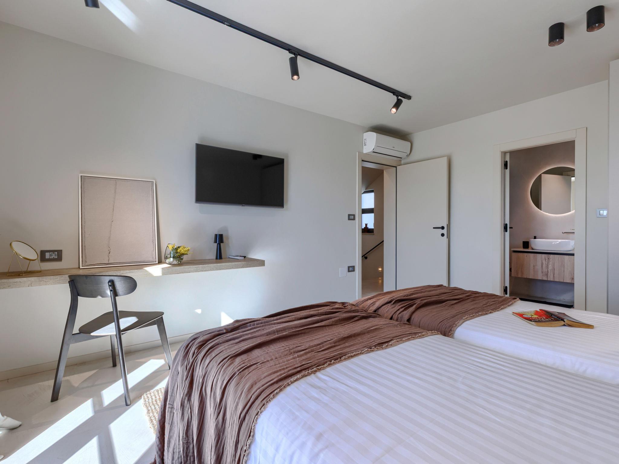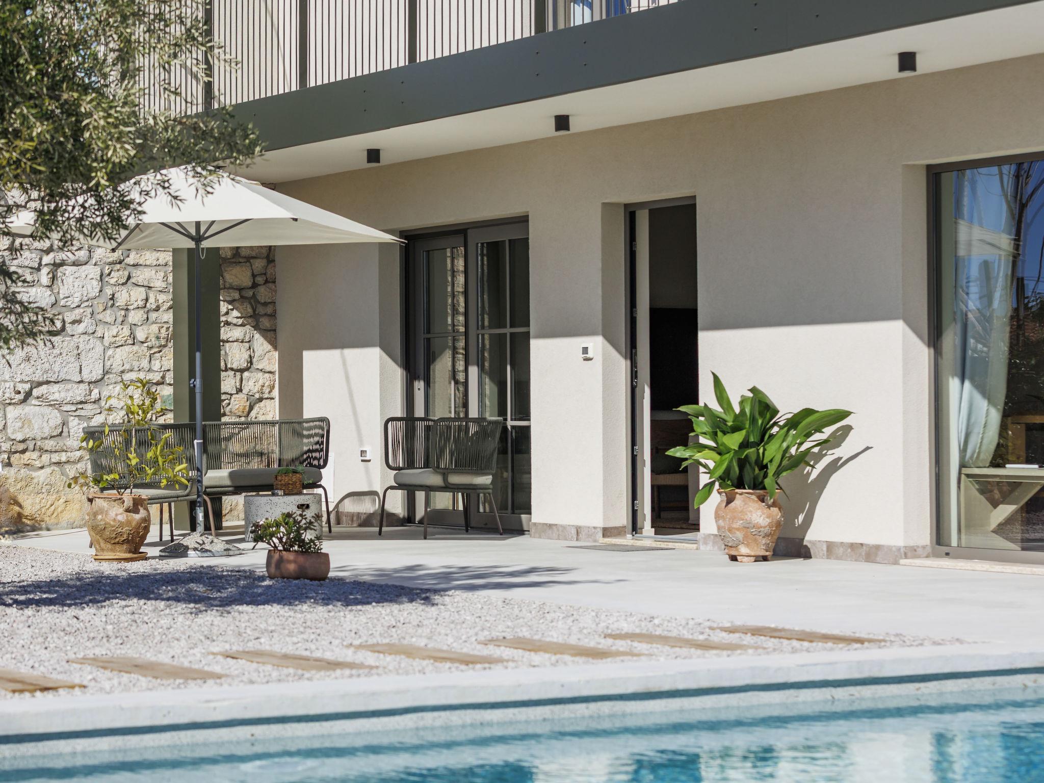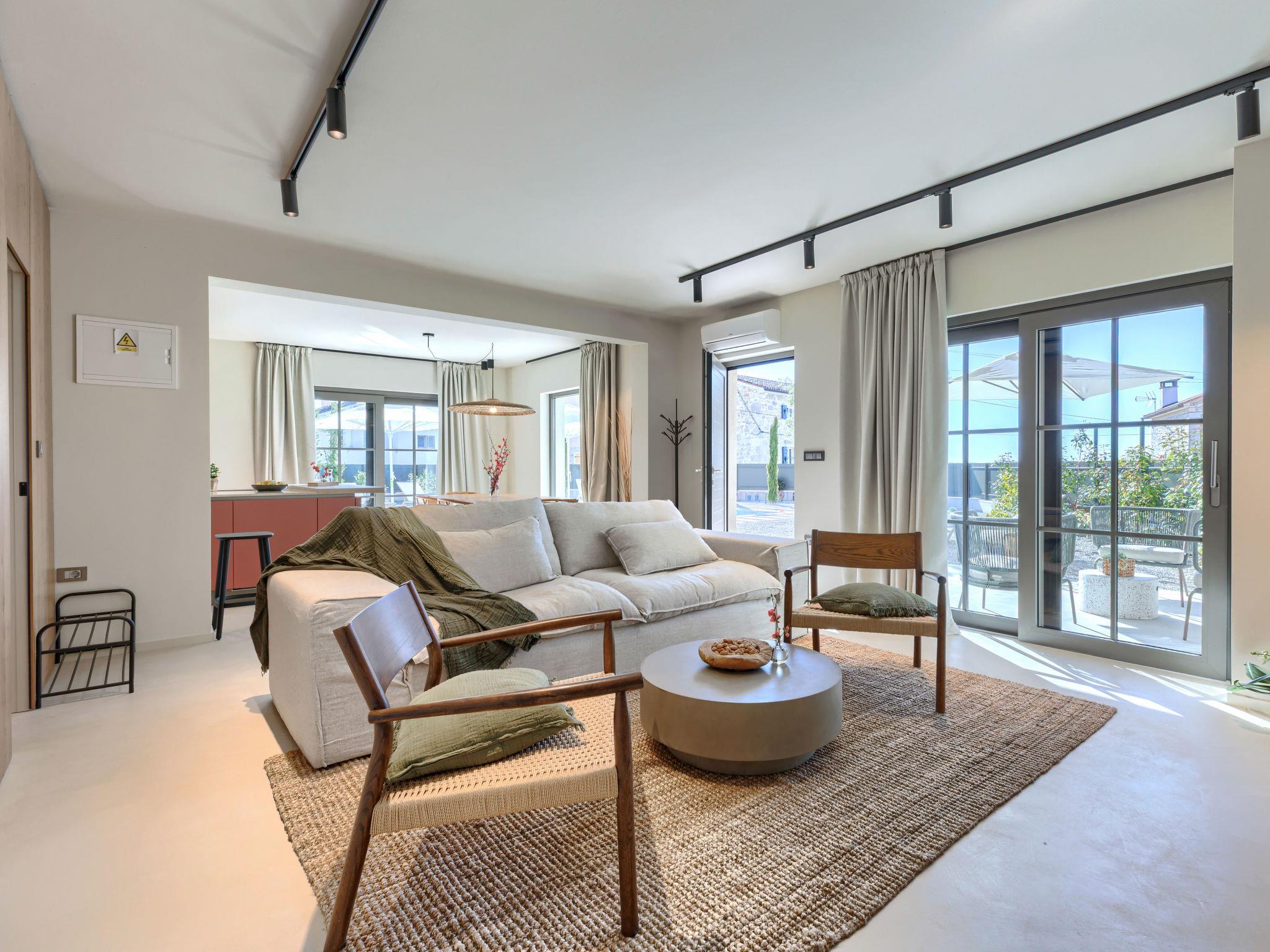 Very beautiful semi-detached house "Minda", 3 storeys, built in 2024. In the hamlet Dracevac, 8 km from the centre of Porec, in a quiet, sunny position, 9 km from the sea. Private: property 580 m2 (fenced), swimming pool angular (8 x 4 m, depth 145 cm, seasonal availability: 01.May. - 31.Oct.). Outdoor shower, terrace (20 m2), garden furniture, barbecue, pool maintenance by the owner/gardener. In the house: internet access, sauna, washing machine. Parking (for 2 cars) at the house on the premises. Shop 3 km, supermarket 8 km, restaurant 3 km, bus stop 2.8 km. Please note: airfield 50 km from the property.