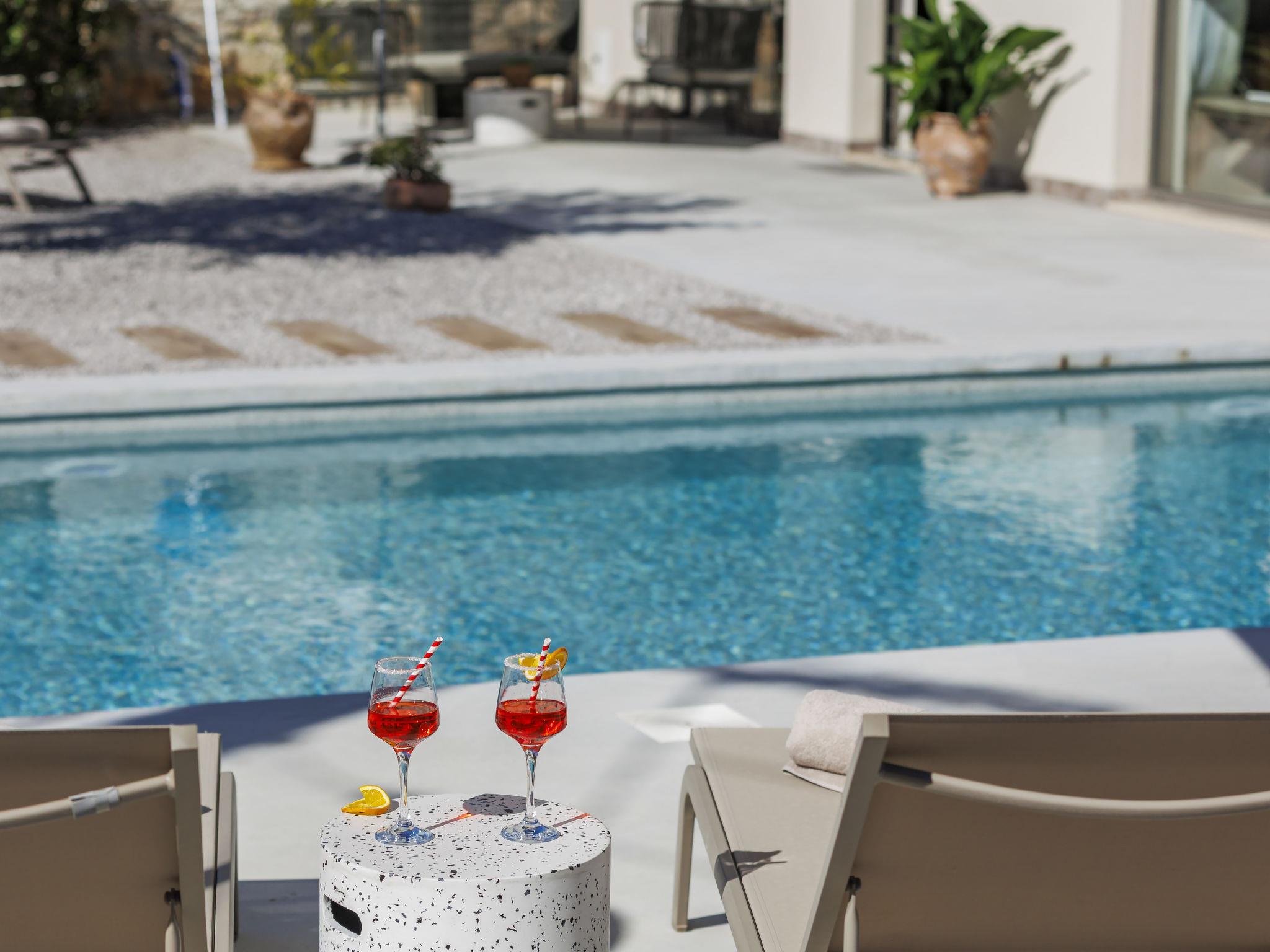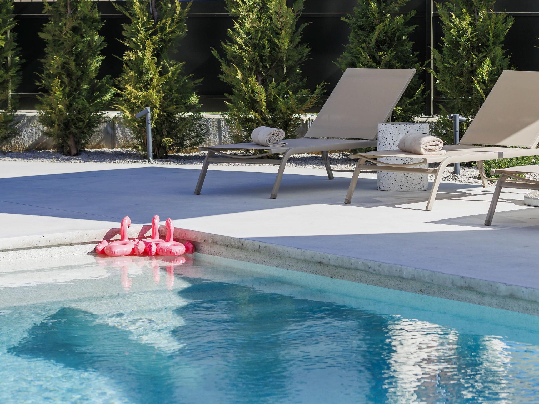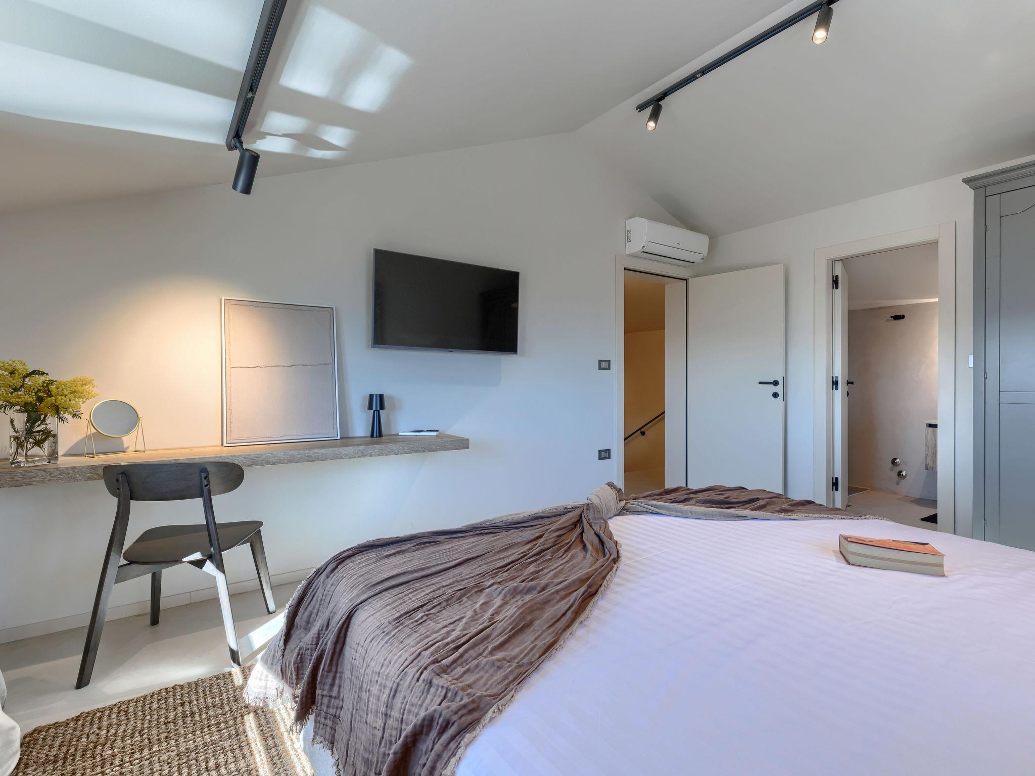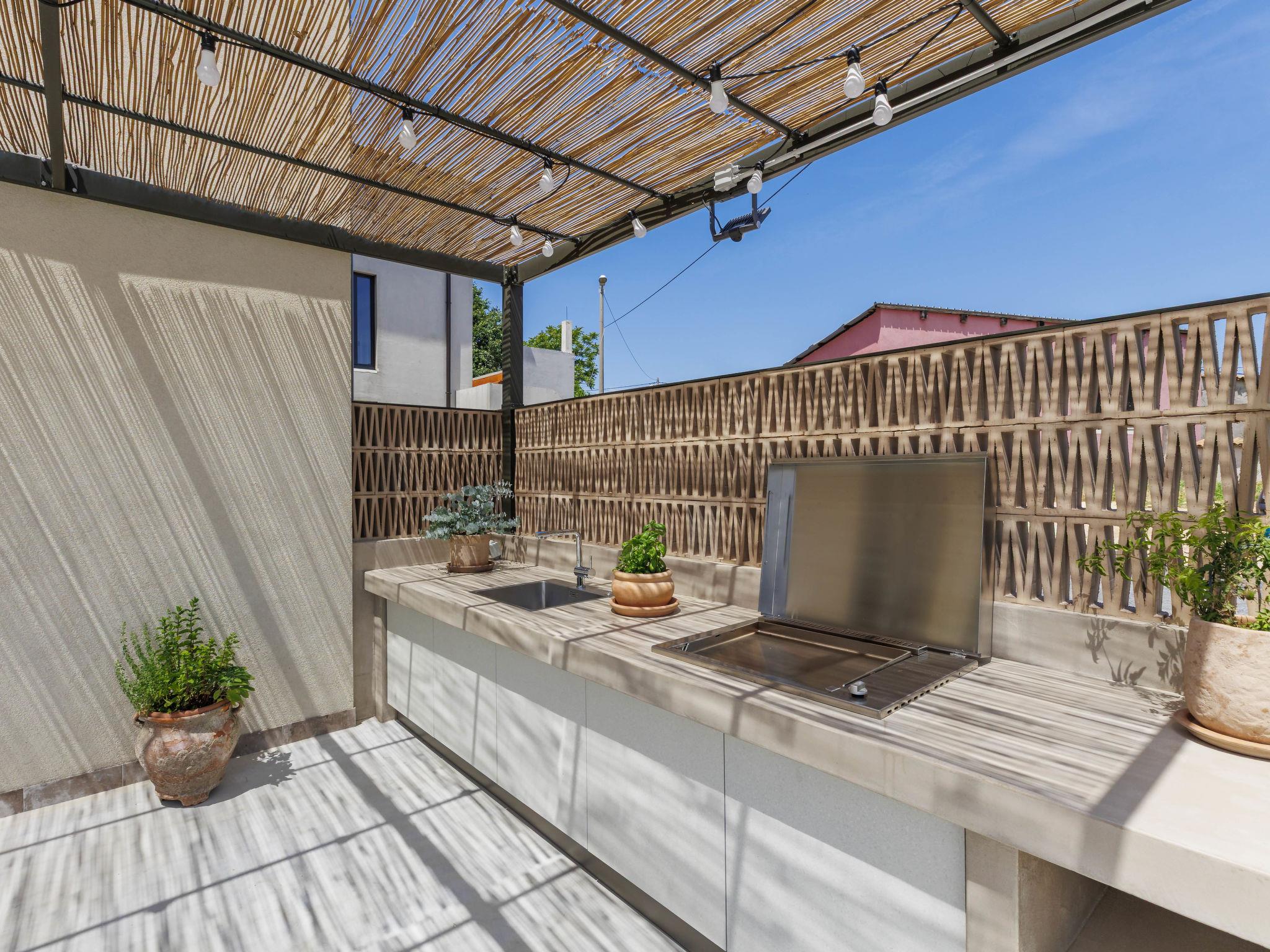 Very beautiful semi-detached house "Minda", 3 storeys, built in 2024. In the hamlet Dracevac, 8 km from the centre of Porec, in a quiet, sunny position, 9 km from the sea. Private: property 580 m2 (fenced), swimming pool angular (8 x 4 m, depth 145 cm, seasonal availability: 01.May. - 31.Oct.). Outdoor shower, terrace (20 m2), garden furniture, barbecue, pool maintenance by the owner/gardener. In the house: internet access, sauna, washing machine. Parking (for 2 cars) at the house on the premises. Shop 3 km, supermarket 8 km, restaurant 3 km, bus stop 2.8 km. Please note: airfield 50 km from the property.