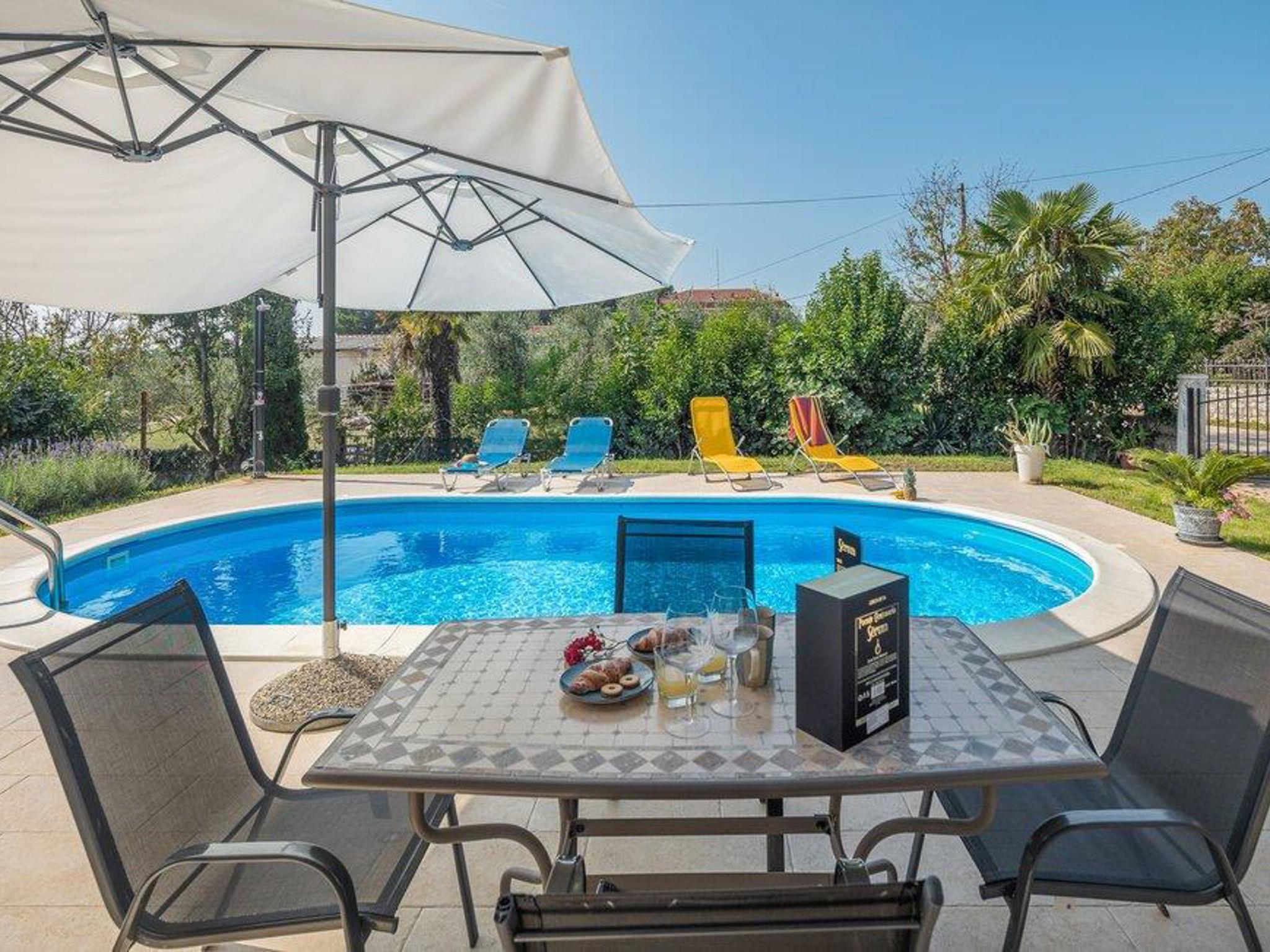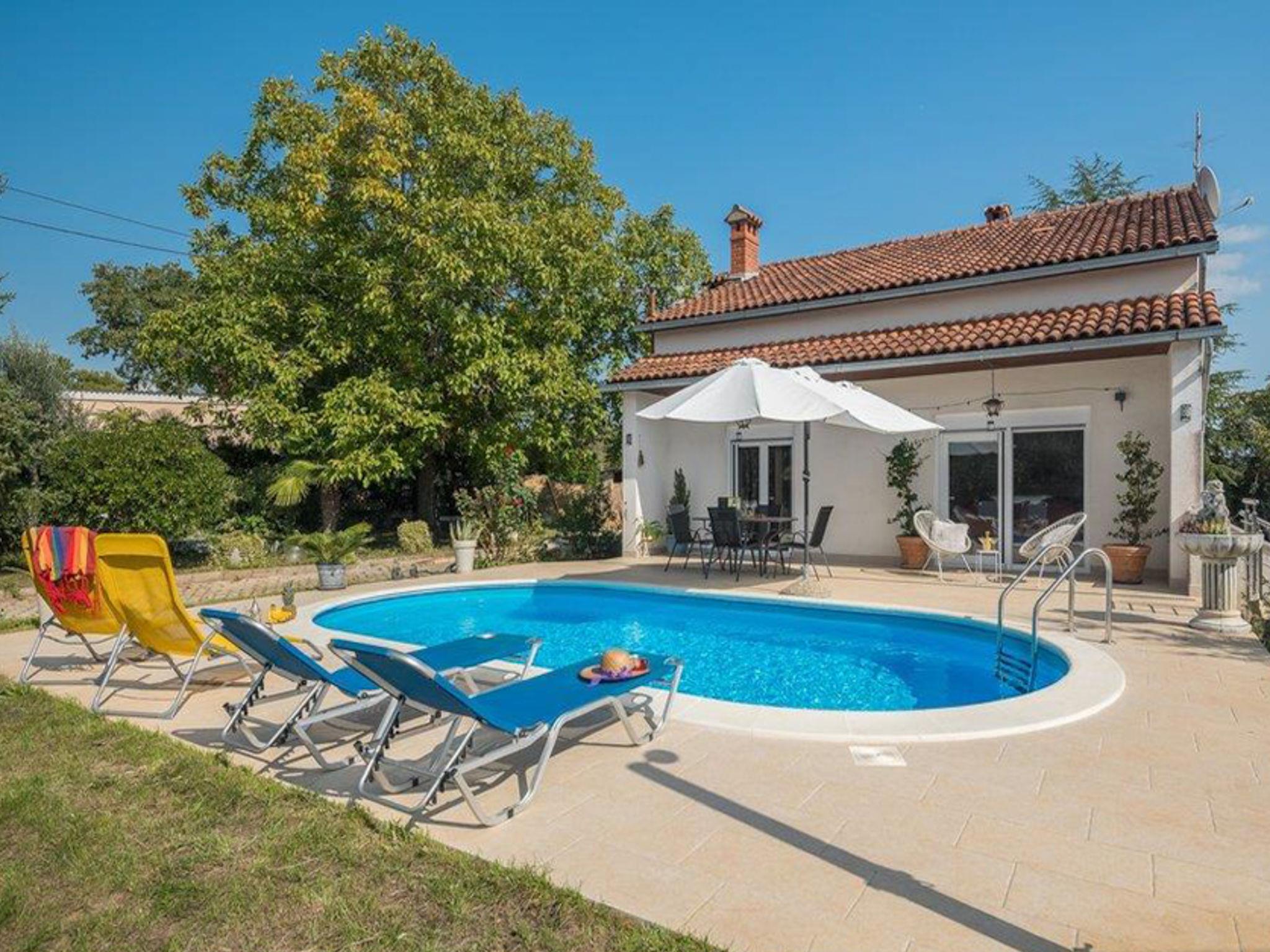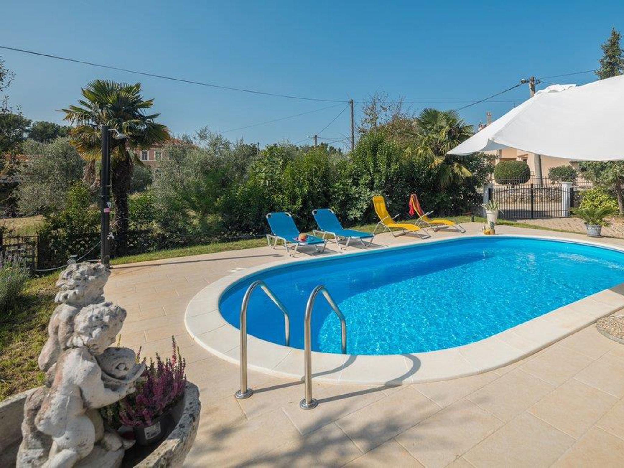 Baderna 13 km from Porec: Single-family house "Nati". In the hamlet Cvitani 4.8 km from the centre of Baderna, in a quiet, sunny position, 18 km from the sea. Private: property 1'000 m2 (fenced) with lawn and wildlife garden, swimming pool (21 m2, depth 135 cm, seasonal availability: 01.May. - 30.Sep.). Outdoor shower, garden furniture, barbecue. In the house: internet access, washing machine. Parking at the house on the premises. Shop 4.8 km, supermarket 11 km, restaurant 5 km, bus stop 5.2 km, pebble beach 18 km, rocky beach 18 km, public bathing area 18 km, concrete beach 18 km. The owner does not accept any youth groups. Please note: 1st floor is closed and not occupied.
